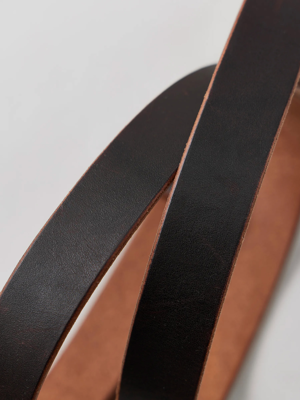 천연 탄닌 용액으로 무두질한 누메 가죽으로 만든 벨트입니다.
