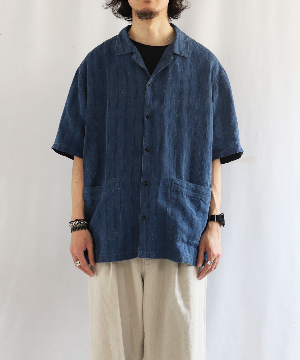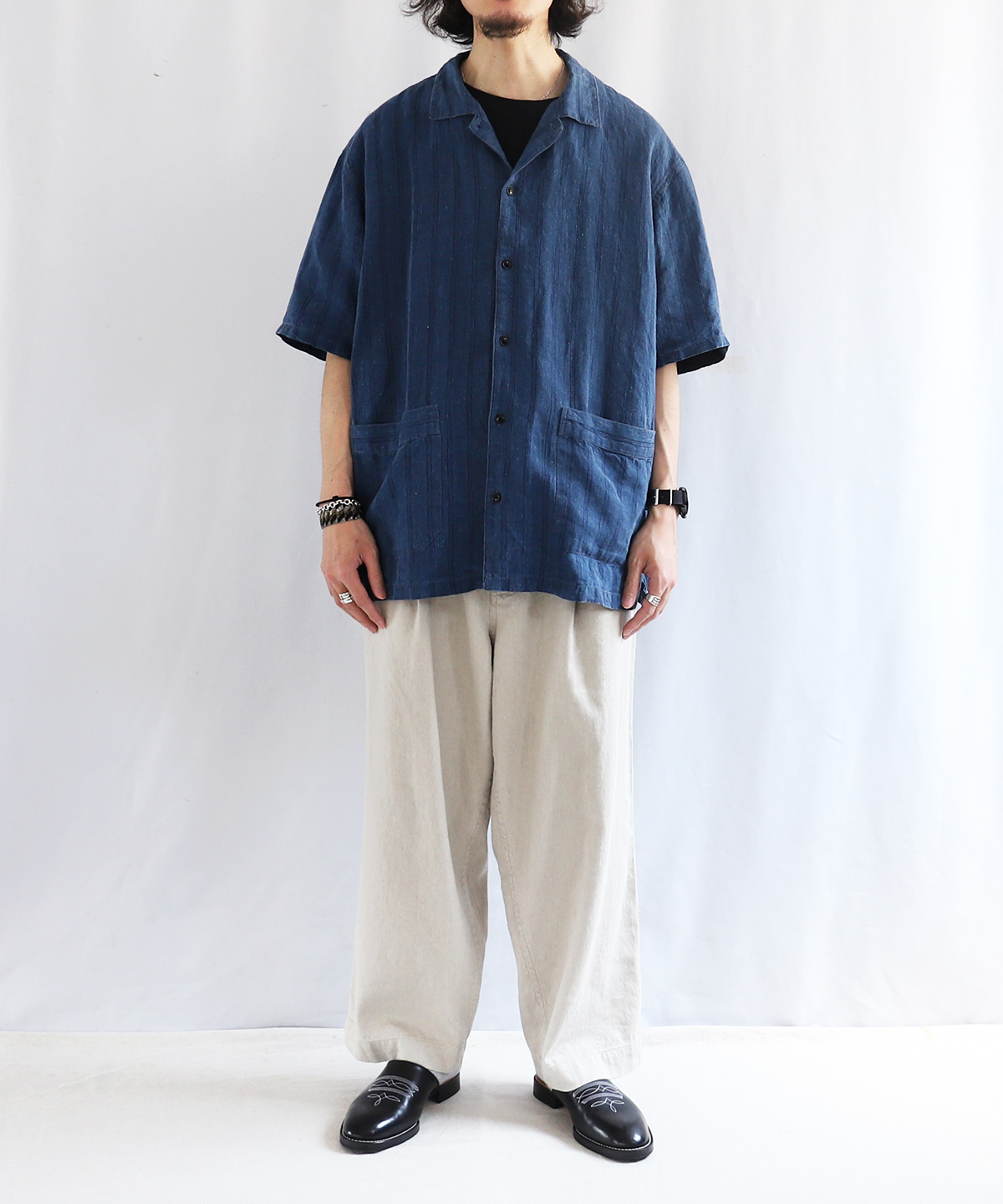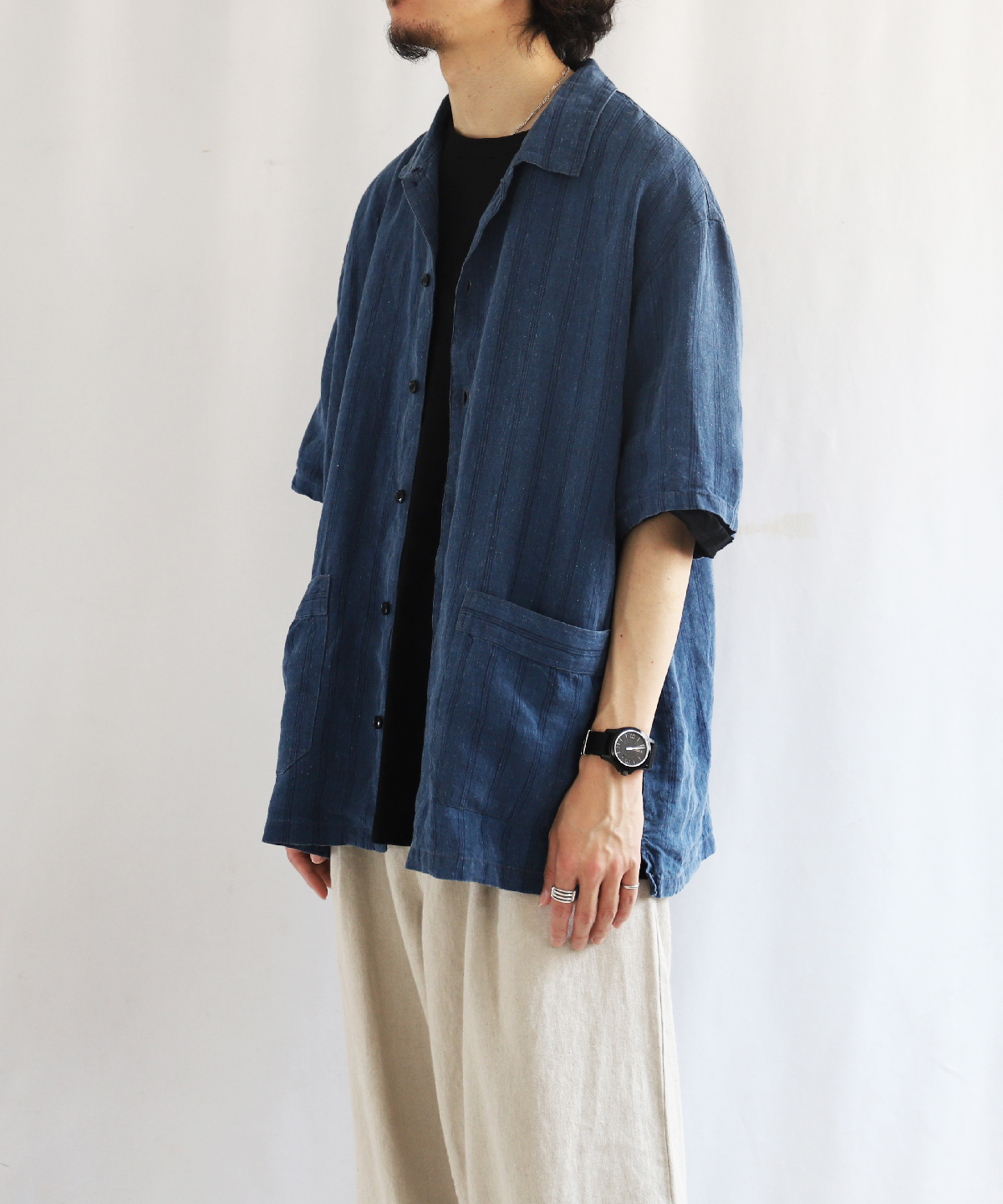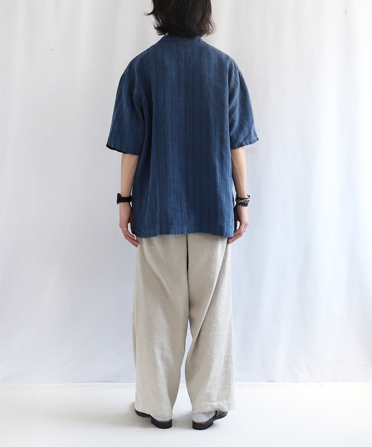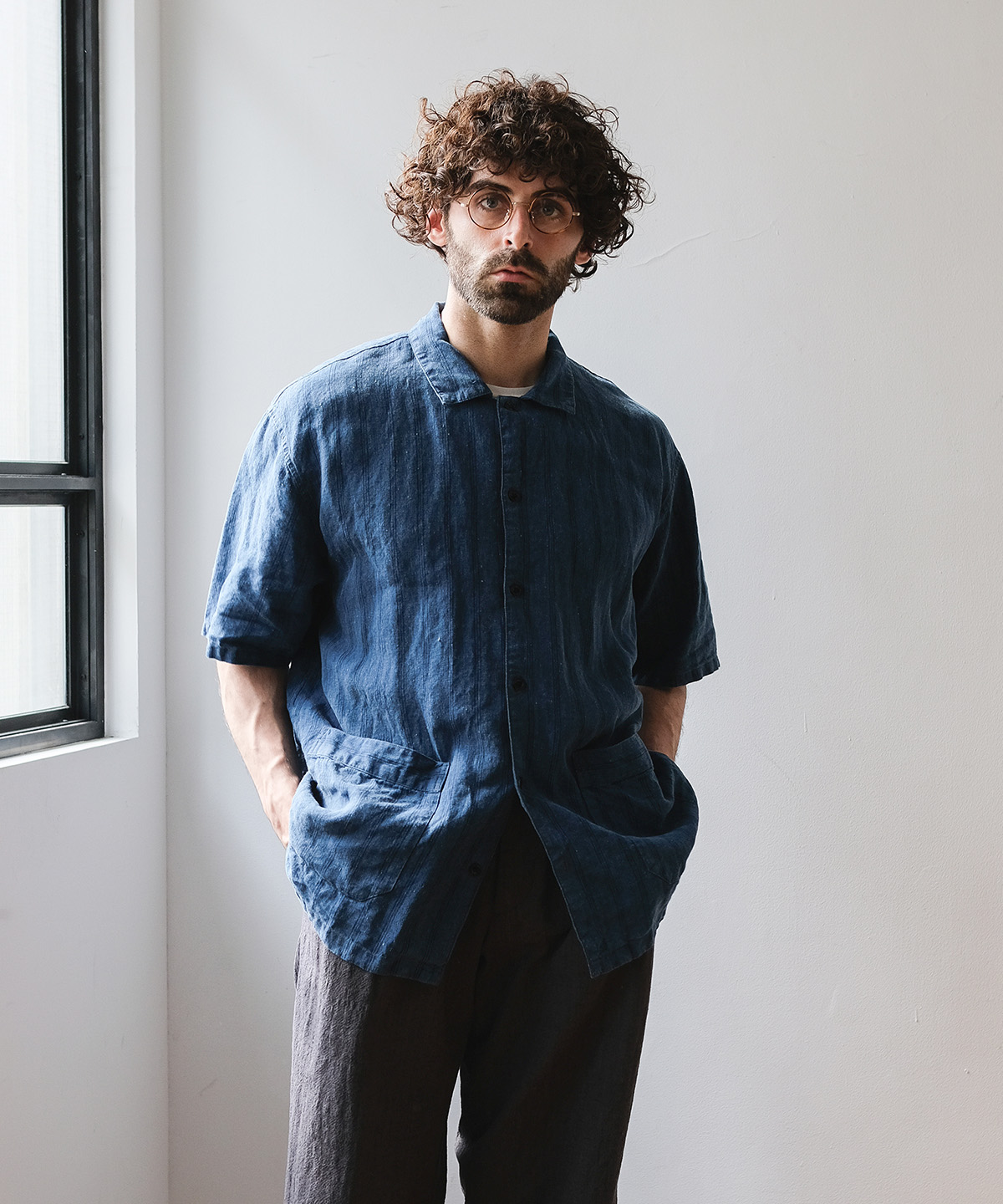 이를 실용적인 단추로 바꾸고 인디고로 선염한 유럽산 고품질 린넨을 사용하였습니다. 그리고 인디고 염색의 농담에 차이를 두어 오리지널 모델의 스트라이프 무늬를 구현했습니다.