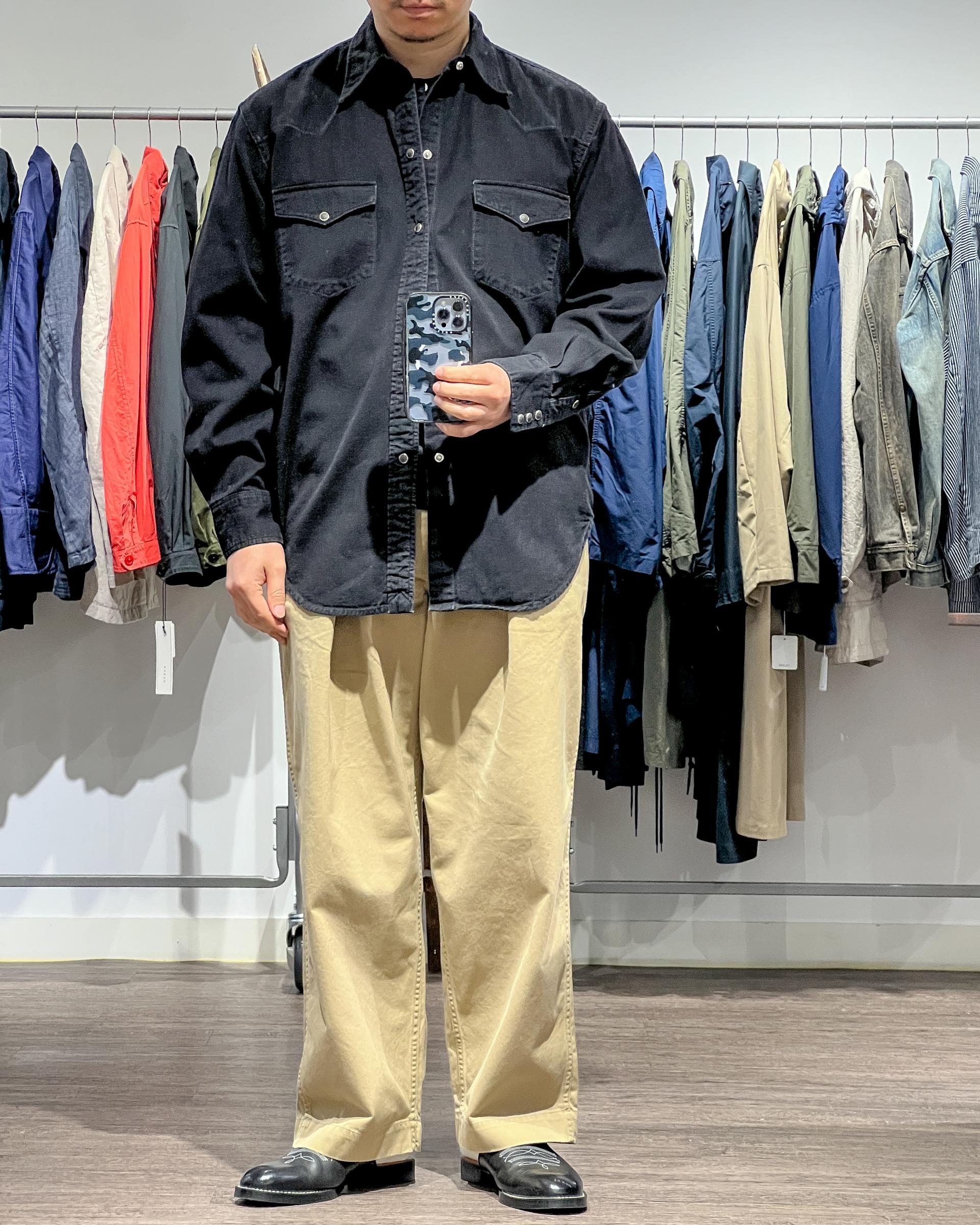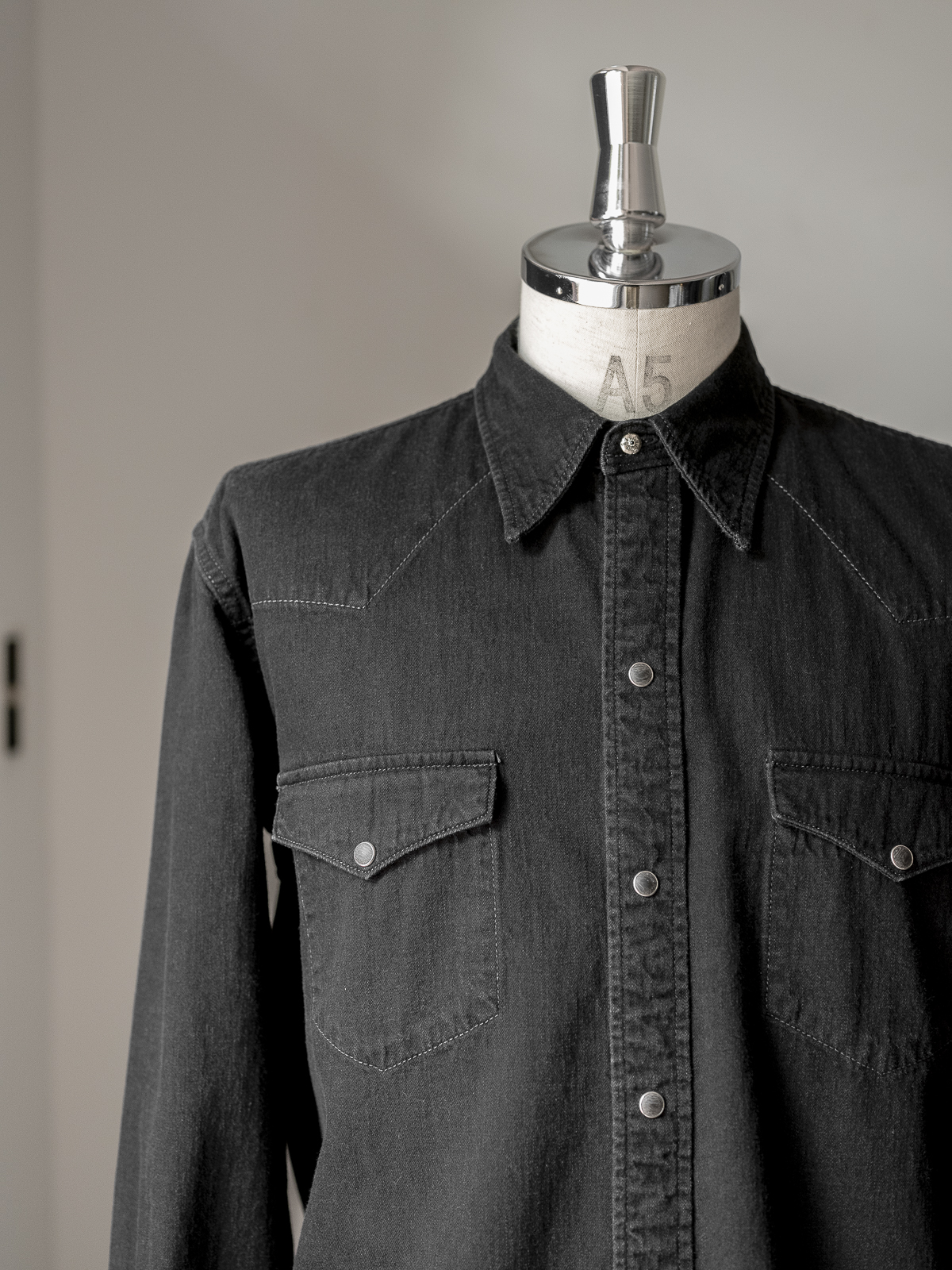 짐바브웨산 초장면을 사용한 불규칙한 요철감이 있는 무라실(ムラ糸)로 짠 데님 원단으로 만든 8.5oz 웨스턴 셔츠입니다.