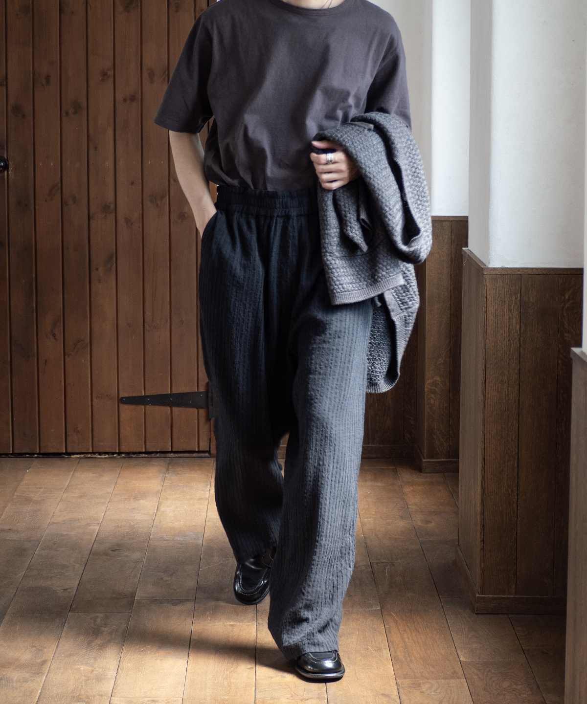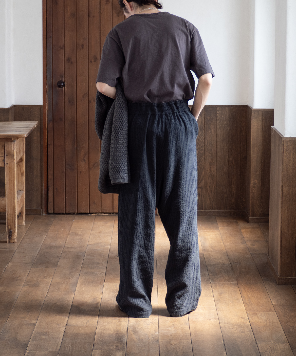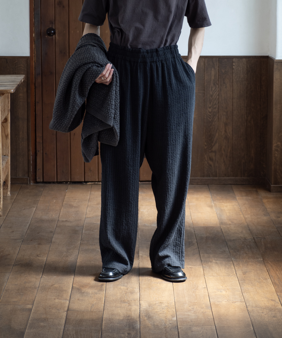 울과 린넨을 혼방한 원사로 짠 특수 원단으로 만든 이지 팬츠입니다.