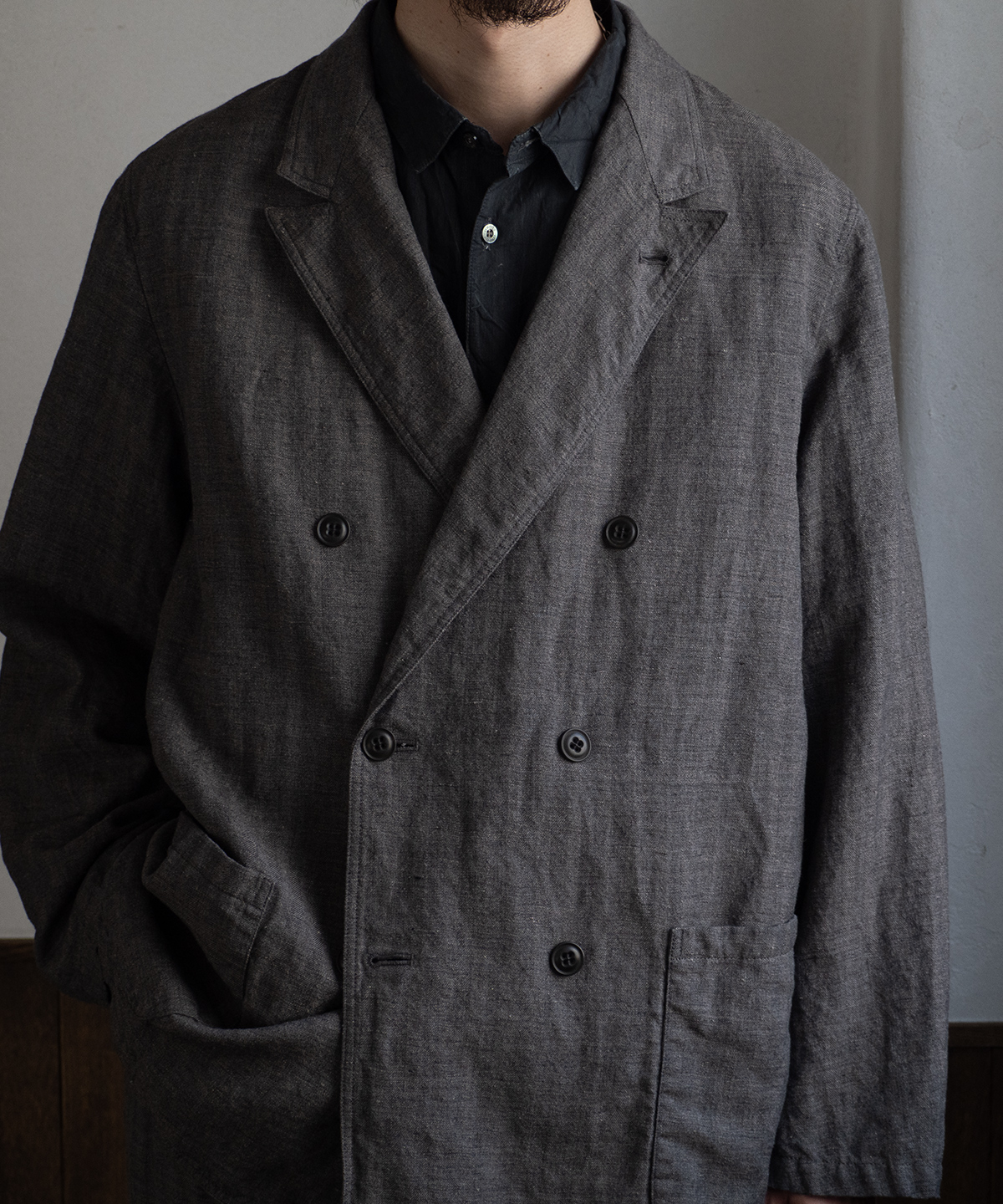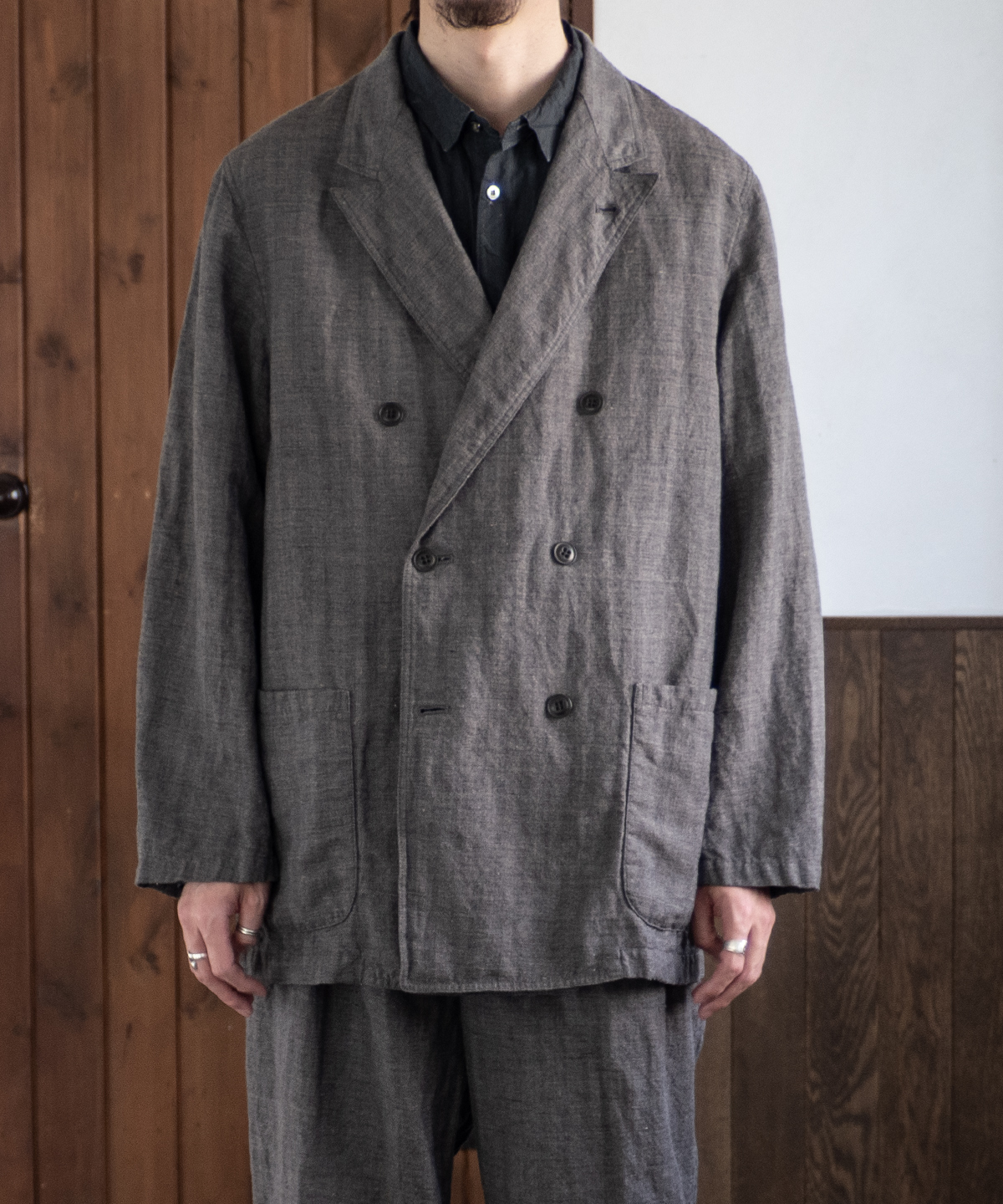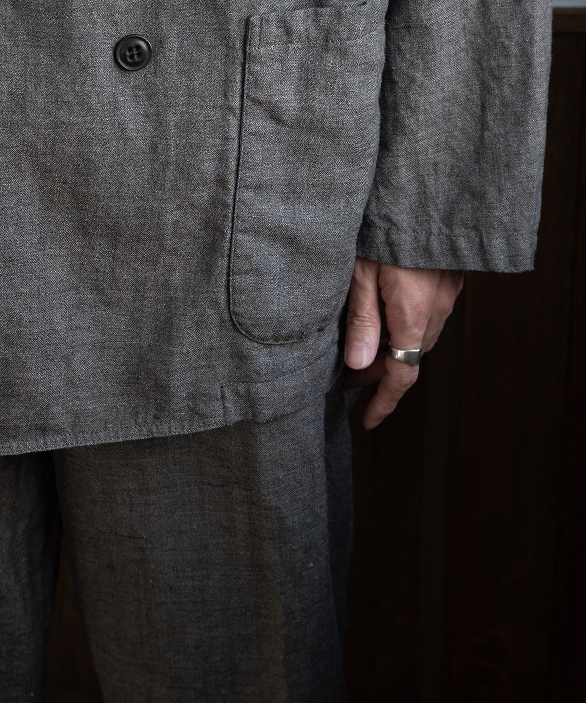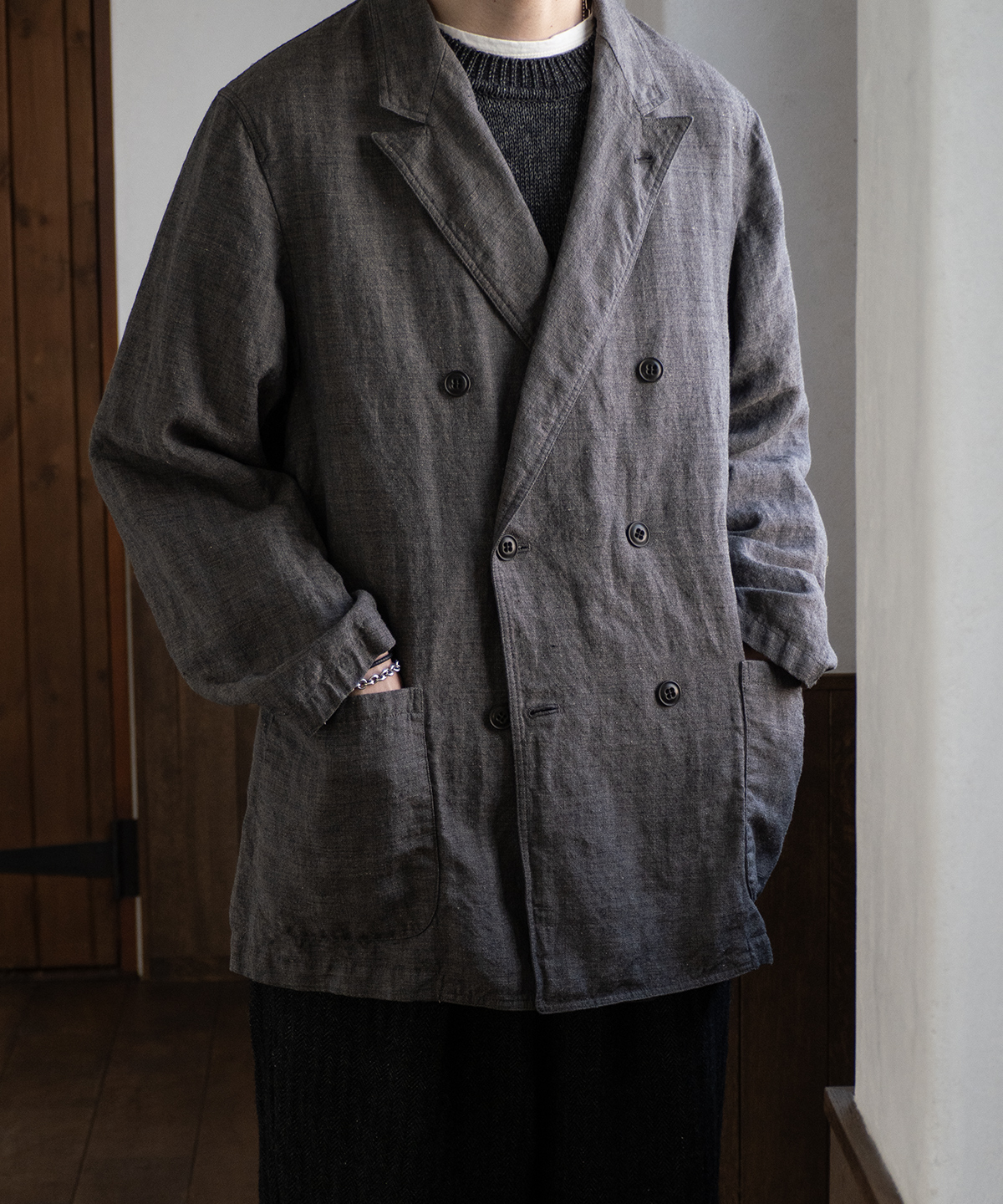 울 린넨 혼방의 헤링본 원단으로 만든 더블 브레스티드 자켓입니다.