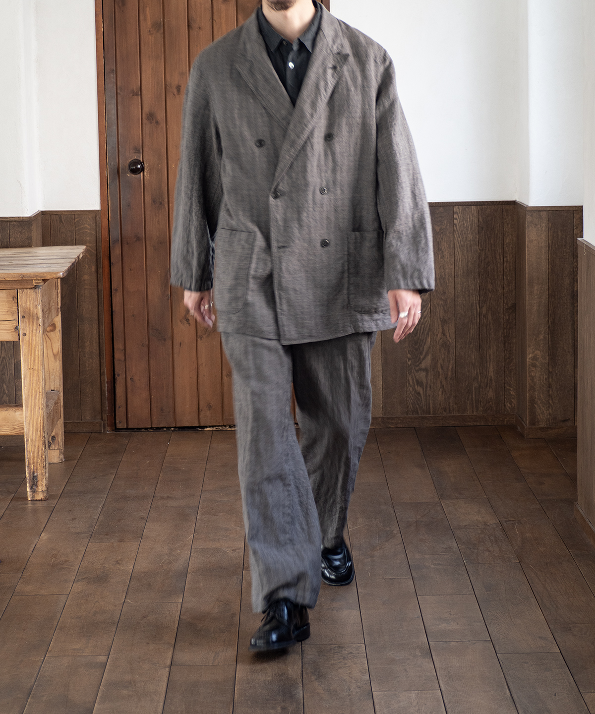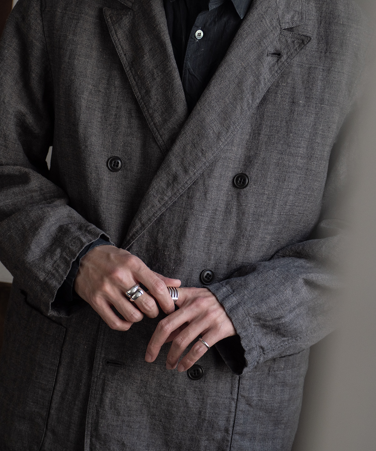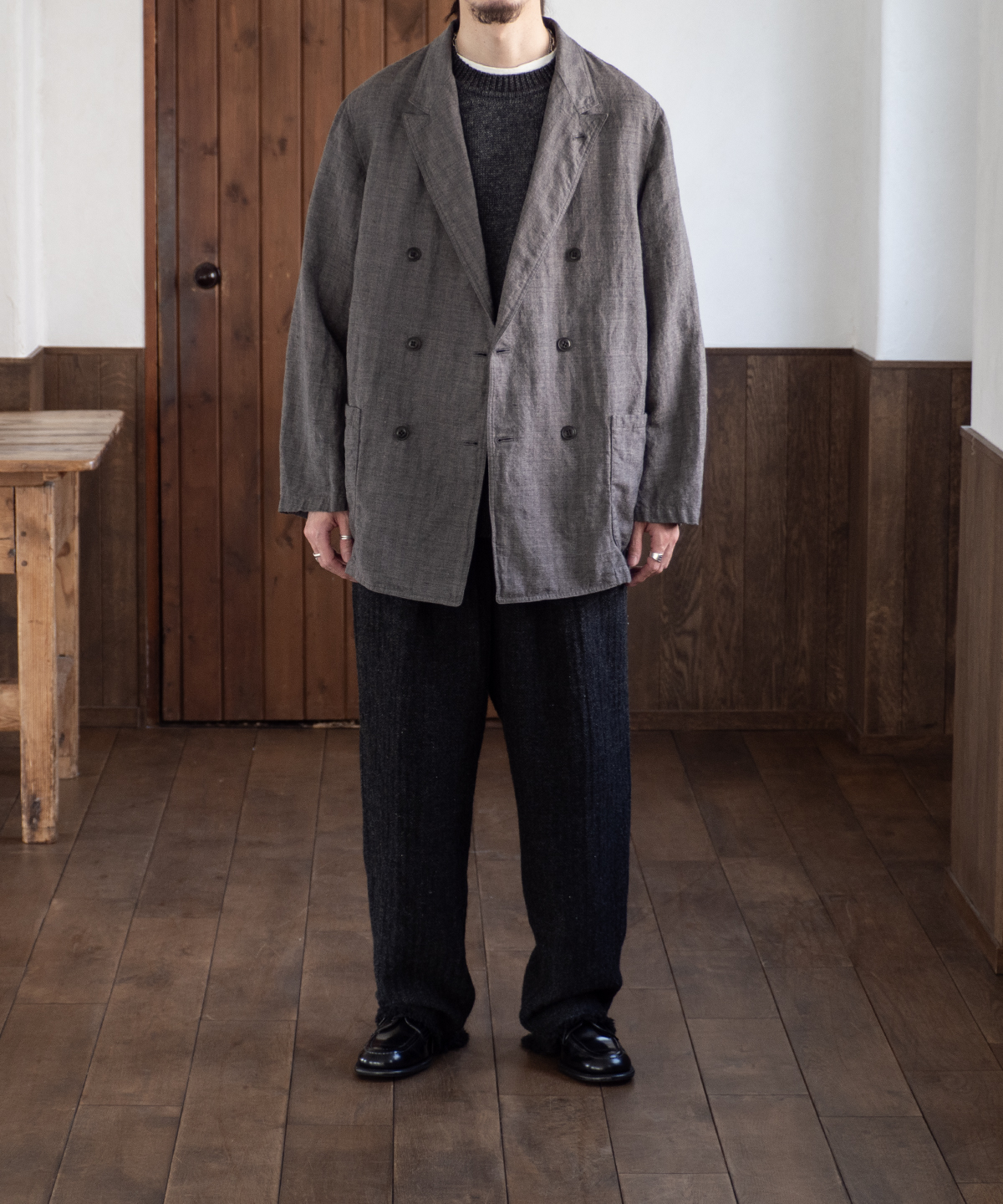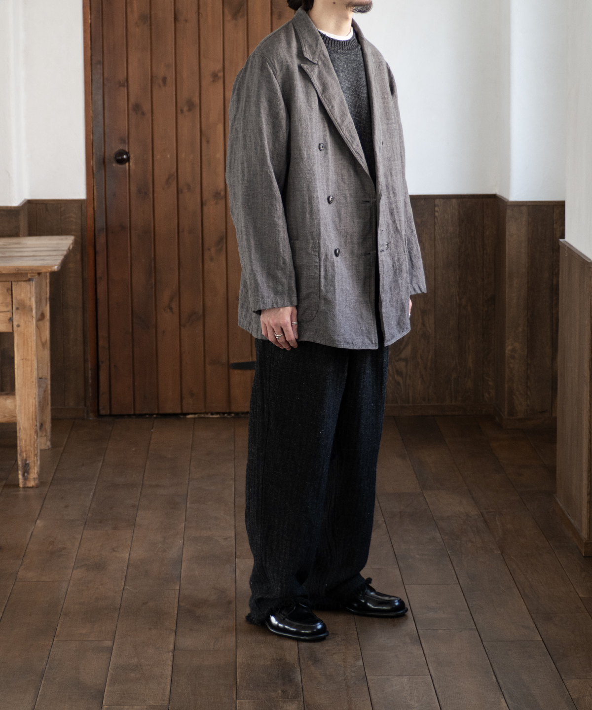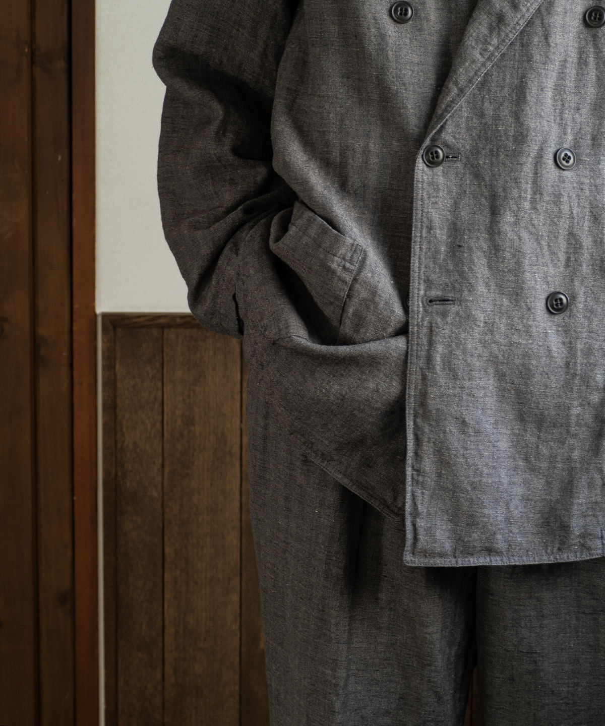 울 린넨 혼방의 헤링본 원단으로 만든 더블 브레스티드 자켓입니다.