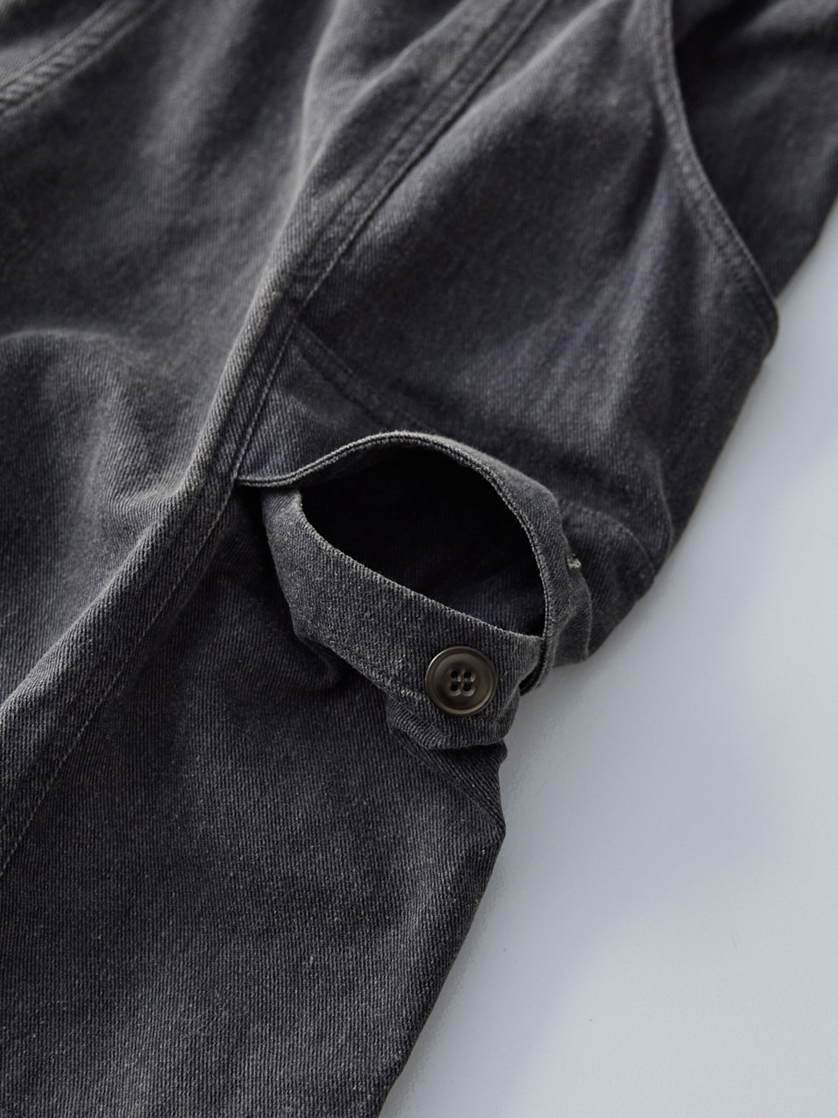 교토에서 베이지 색상으로 염색을 한 후에 후쿠이현에서 안료 코팅을 실시하였기 때문에, 제품의 착용과 세탁이 반복됨에 따라 탈색이 발생하여 독특한 경년 변화를 즐기실 수 있습니다.