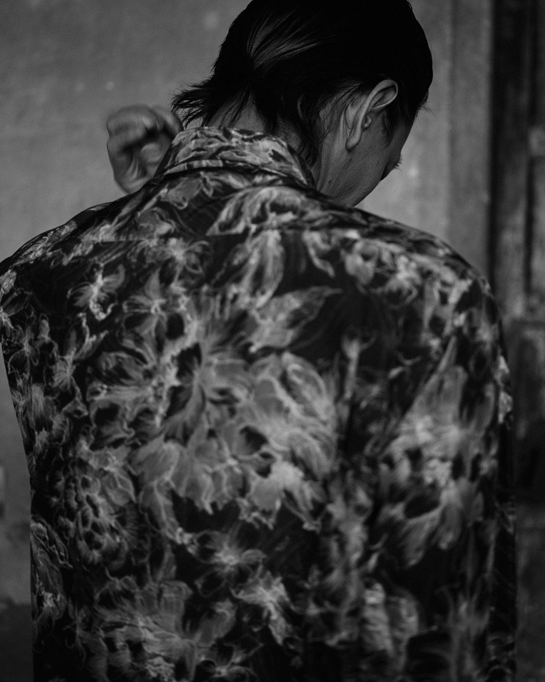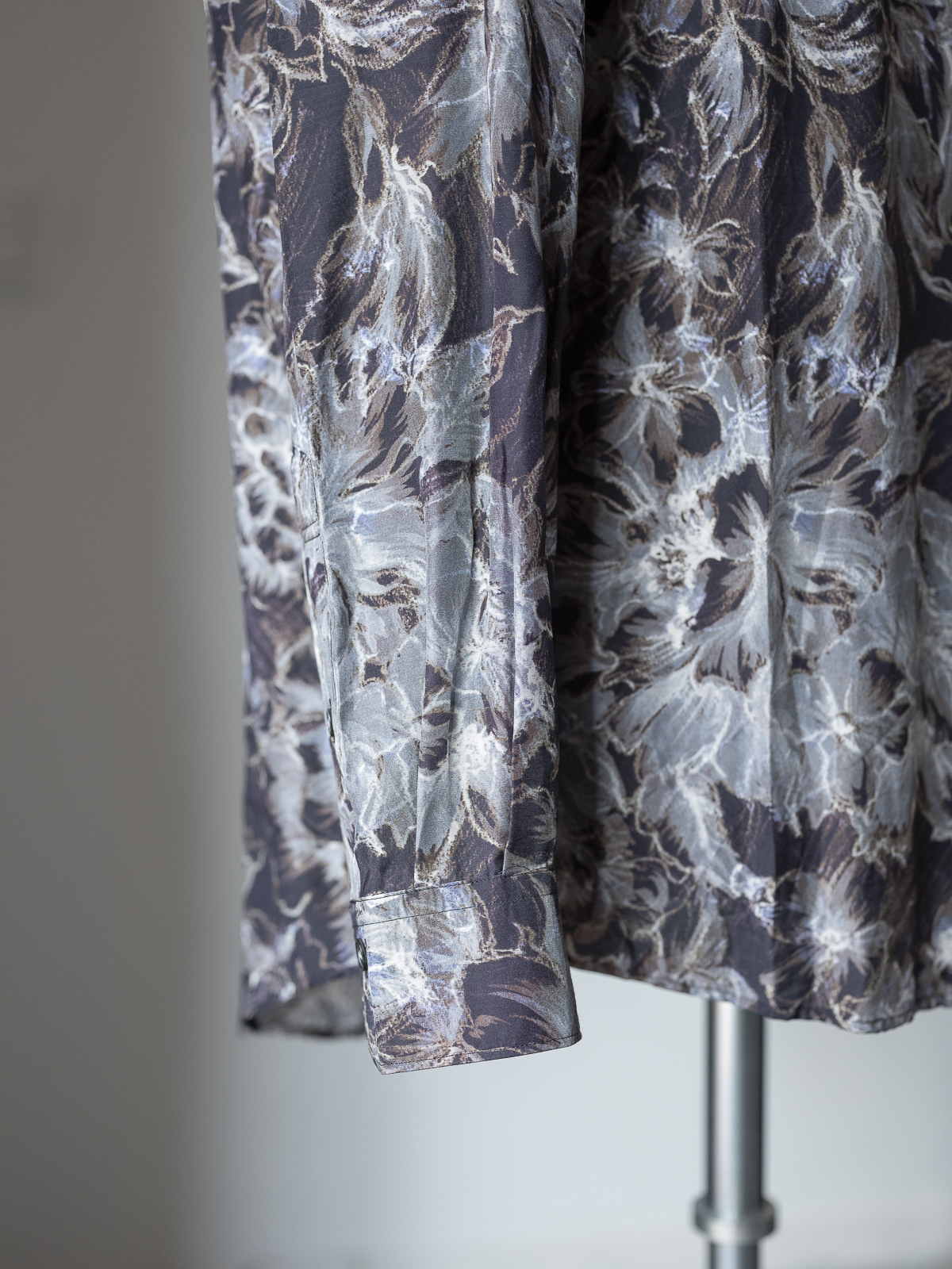 이 원단 위에 세 가지 플로럴 패턴을 그라데이션 효과로 잉크젯 프린트하여, 섬세하면서도 깊이 있는 디자인을 완성했습니다.
