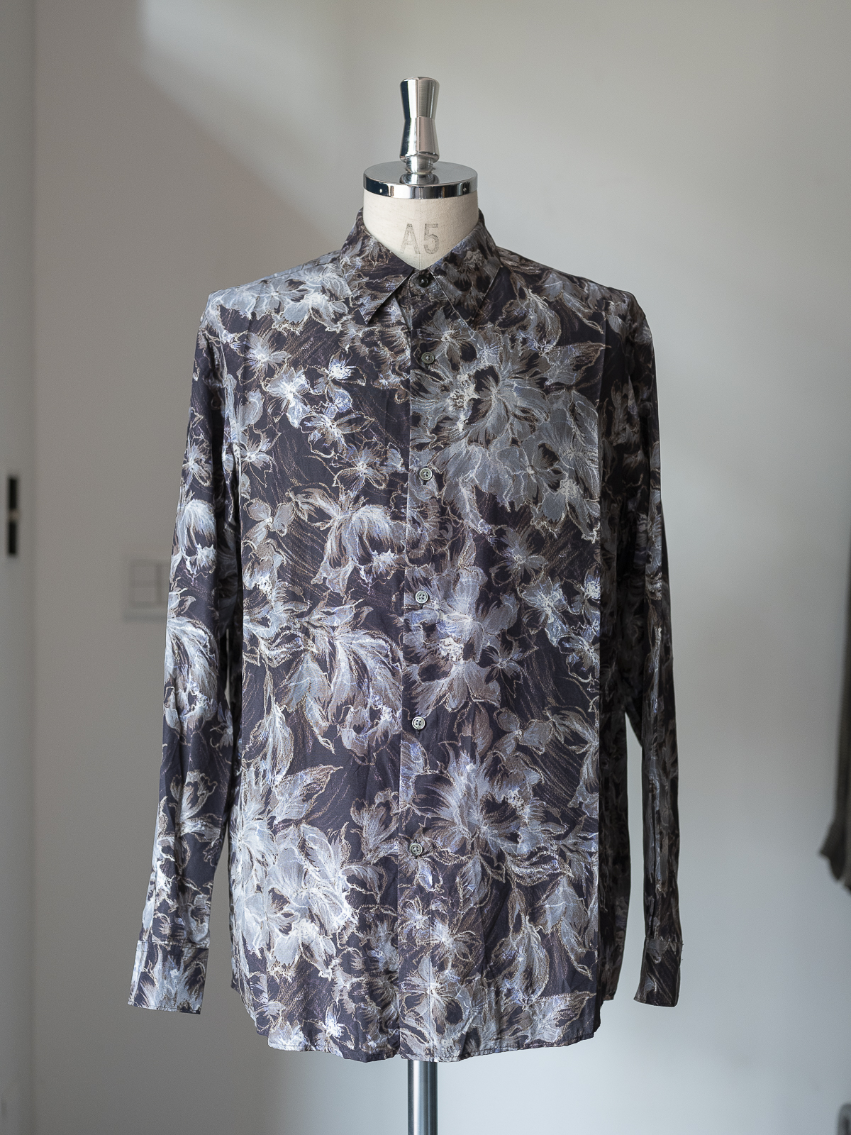 calmlence [캄렌스] - FLOWER PRINT REGULAR COLLAR SHIRT - Black Print