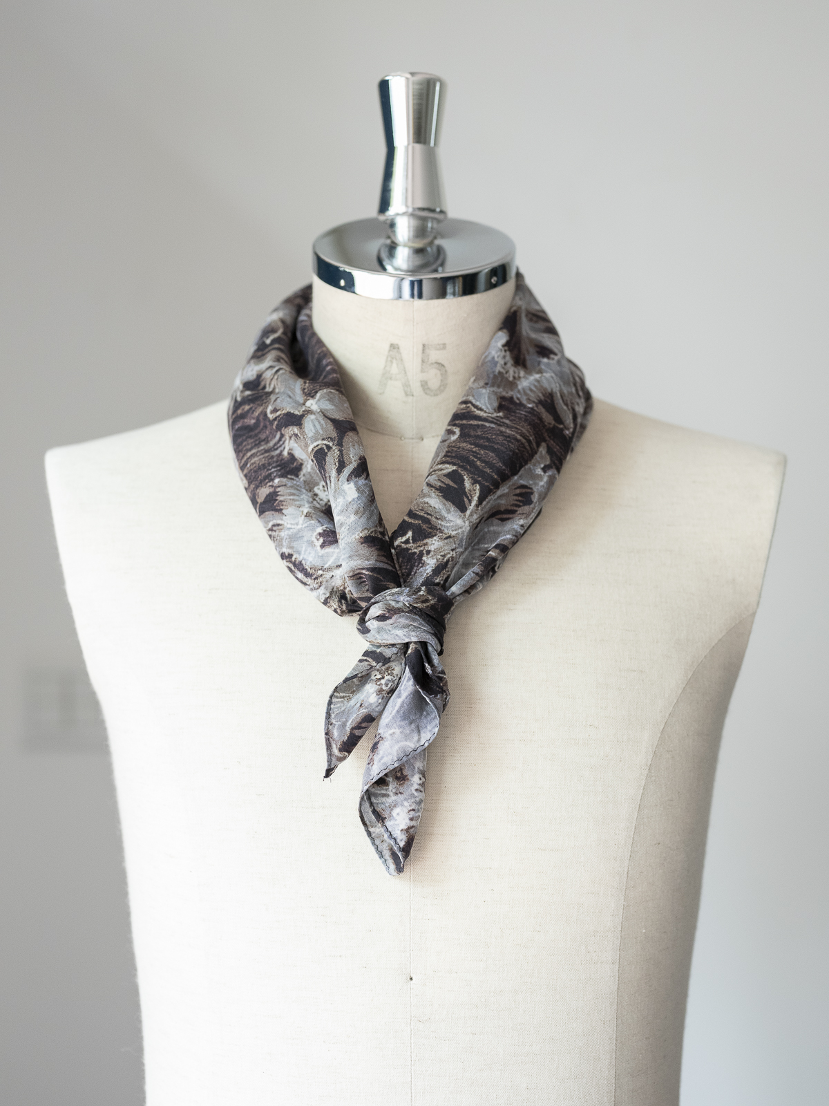 경사에는 실크사, 위사에는 큐프라 방사사를 사용한 평직 원단(산지 : 직조는 호쿠리쿠 → 정련은 야마가타 → 프린트는 교토)으로 만든 스카프입니다. 은은한 광택과 매끄러운 터치가 특징입니다.