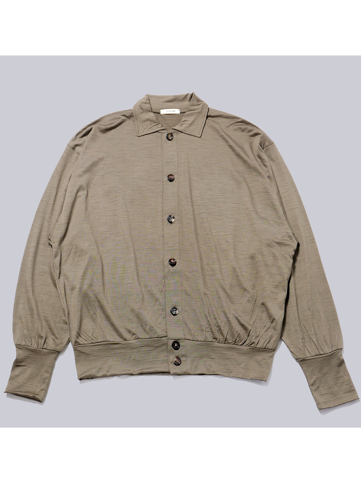 원단은 엑스트라 파인 메리노울 48수 단사로 짜낸 오리지널 울 저지입니다. 생지 단계에서부터 자연스러운 윤기를 지니며, 마무리 과정에서 특수 가공을 더해 한층 매끄럽고 은은한 광택, 그리고 아름다운 드레이프감을 구현했습니다.