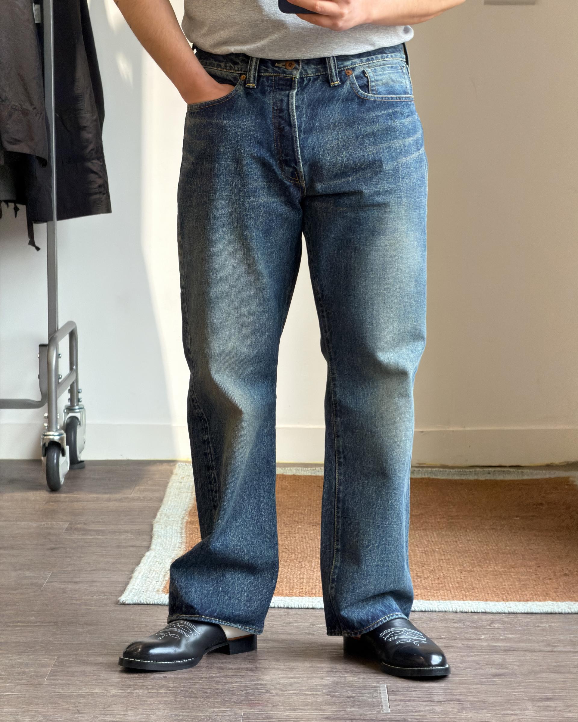 세계 제 2차 대전 시기에 생산된 "대전 모델" 빈티지 데님 팬츠를 모티브로 제작된 셀비지 데님 팬츠입니다.