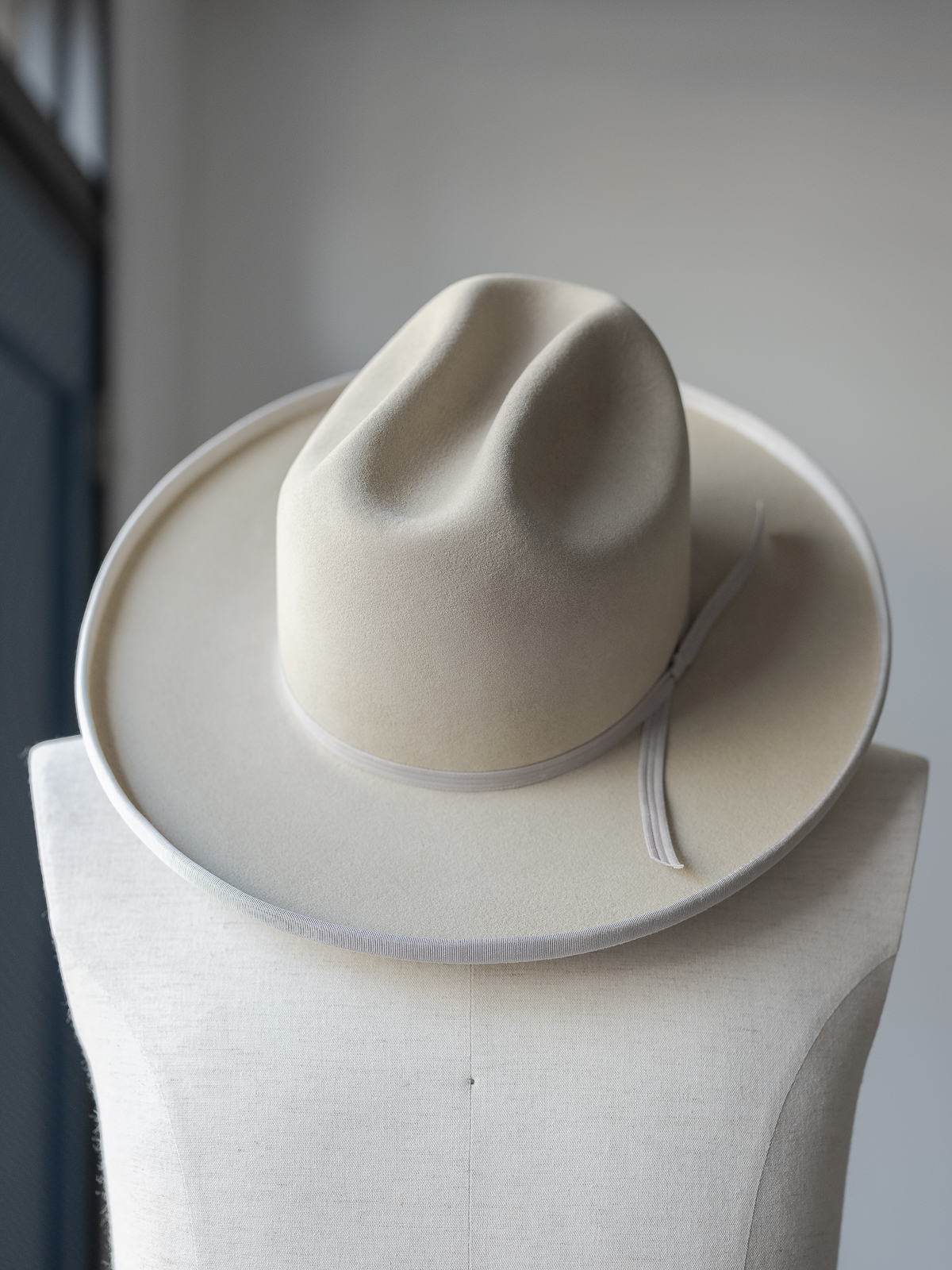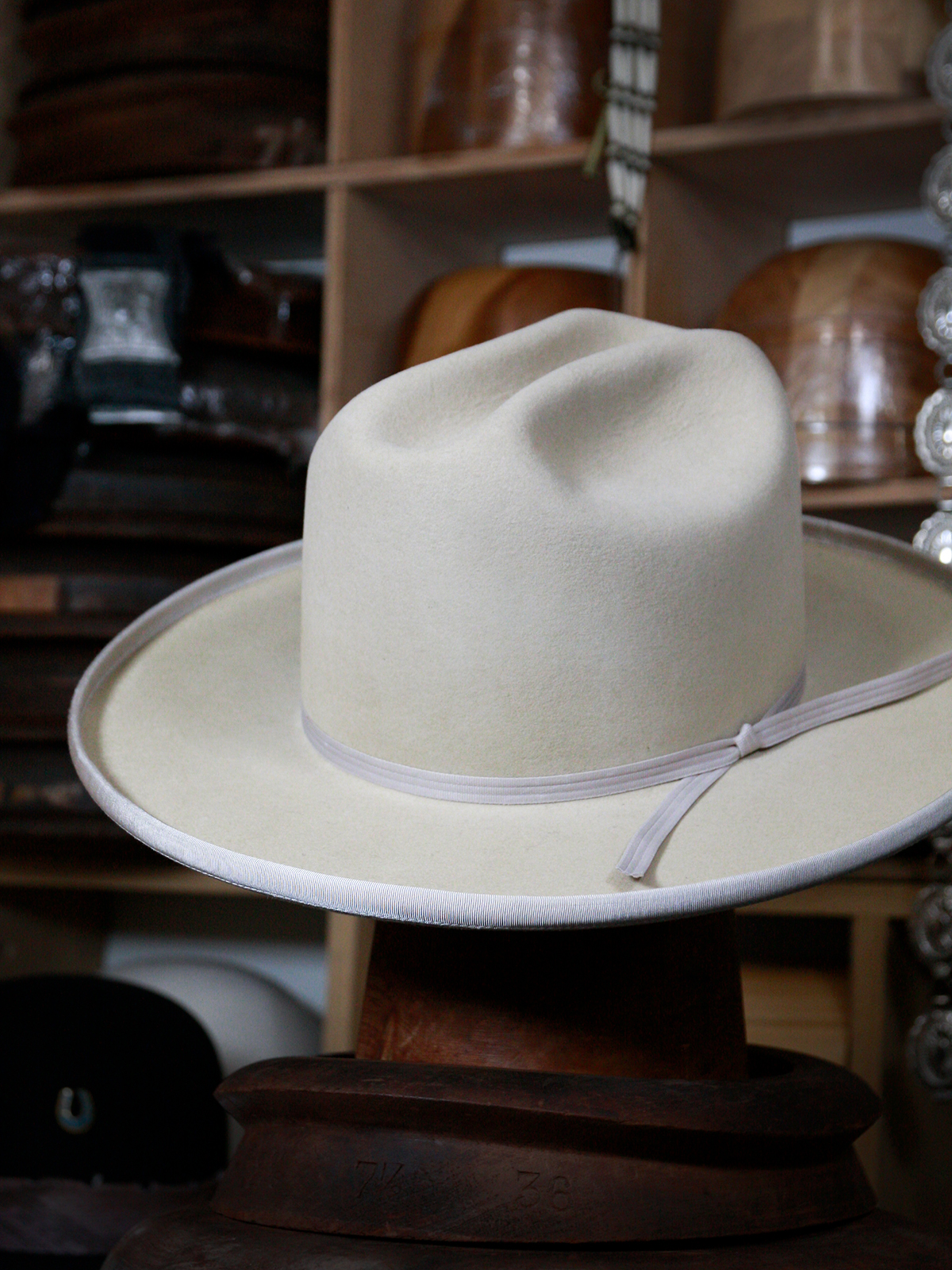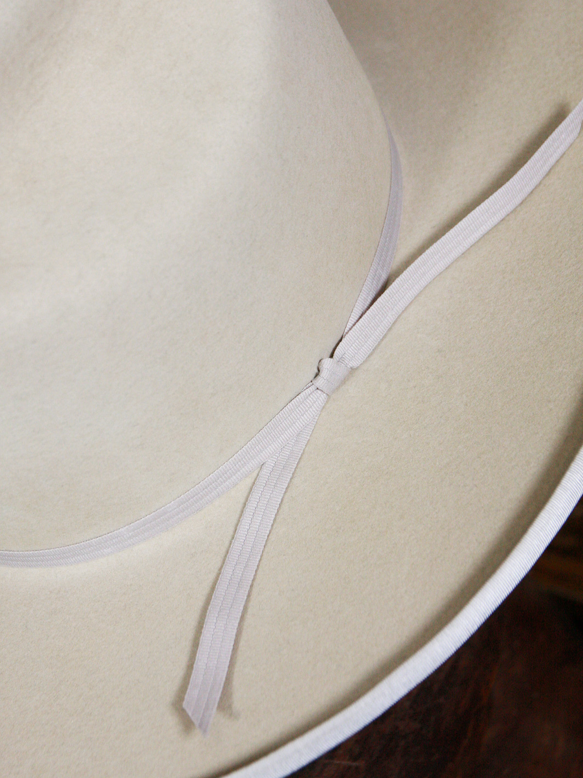 리본에는 과거 웨스턴 햇에 사용되던 빈티지 데드스탁 플라이 밴드(ply band)를 적용했습니다. 이제는 더 이상 생산되지 않는 이 전통적인 소재는, 시간의 흐름 속에서 희소한 존재가 되었고, 모자에 조용하지만 분명한 깊이를 더합니다.