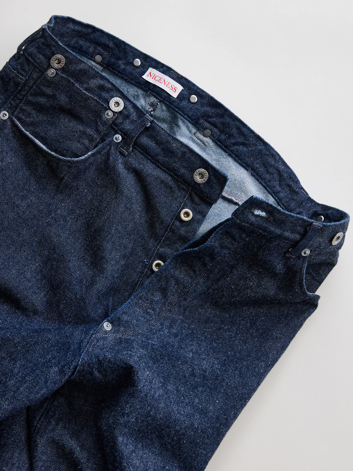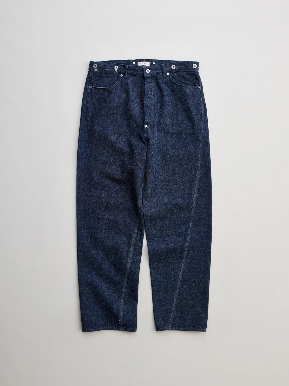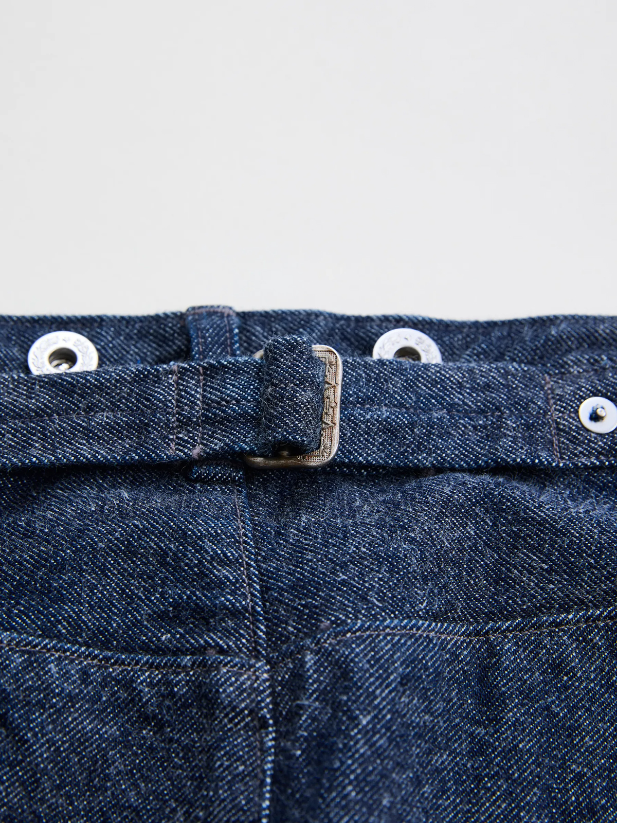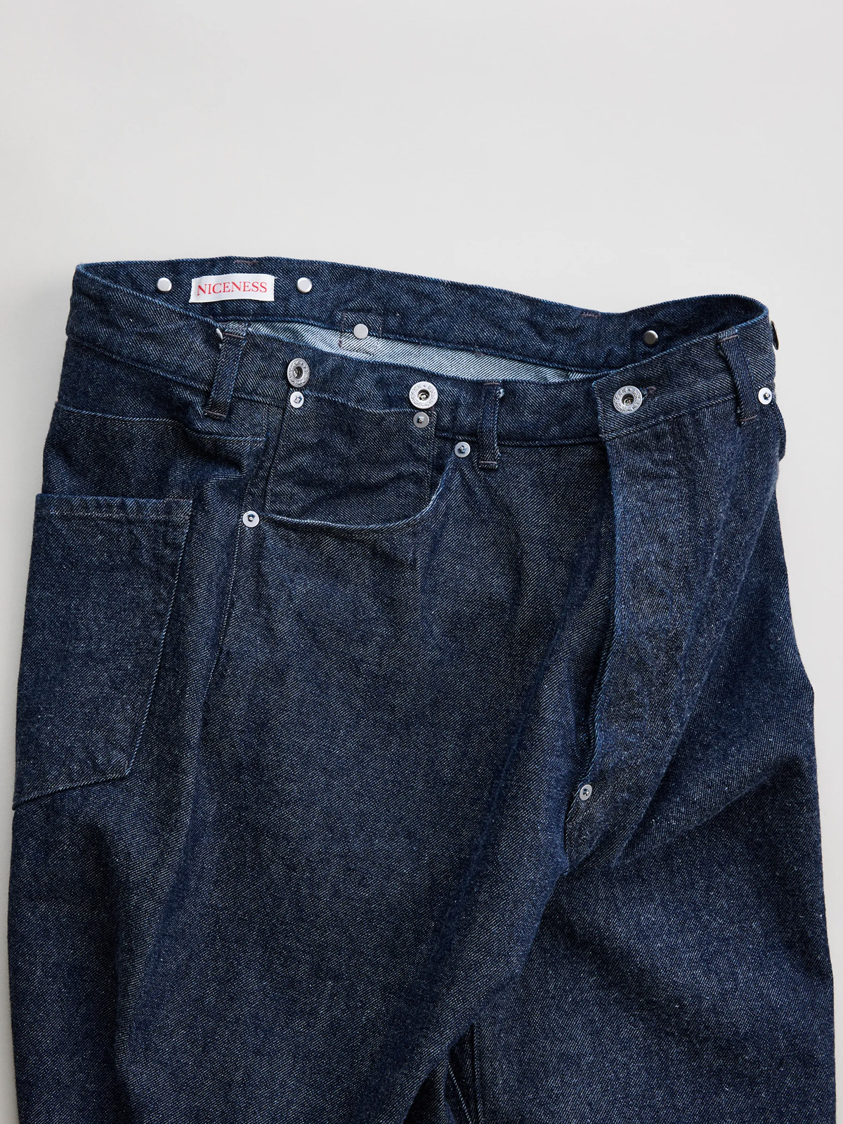 원단은 로프 염색으로 퓨어 인디고를 입힌 심백(芯白) 실을 사용했으며, 미국산 면을 중심으로 중남미의 고급 코튼을 블렌딩한 슬럽사로 직조했습니다. 균일하지 않은 실의 결이 만들어내는 깊이 있는 표정과 질감이 특징입니다. 또한 별도의 가공을 거치지 않은 생지 특유의 자연스러운 터치와 은은한 기모감이 살아 있어, 착용을 거듭할수록 뚜렷한 색감 변화와 입체적인 페이딩을 경험할 수 있습니다.