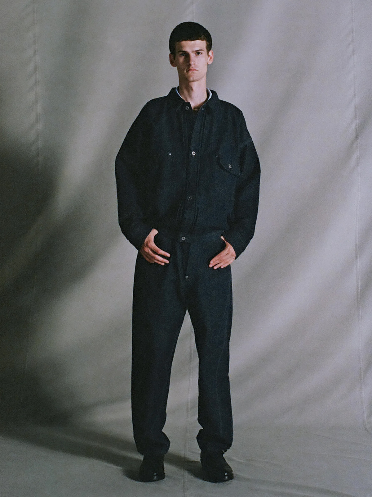 워크웨어의 전통적인 문법을 바탕으로 하면서도, 현대적인 해석을 더해 독창적인 형태를 제안하는 한 벌입니다. 시간이 흐를수록 착용자만의 흔적이 더해지며 완성되는 데님입니다.