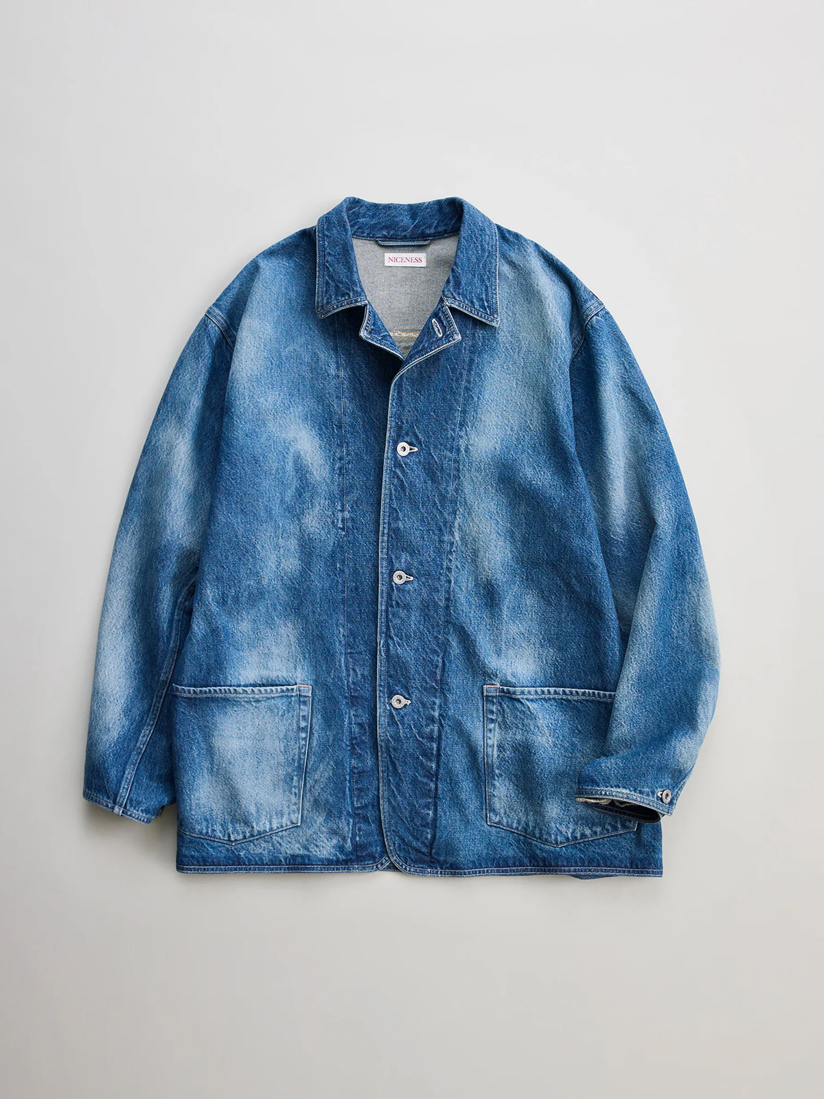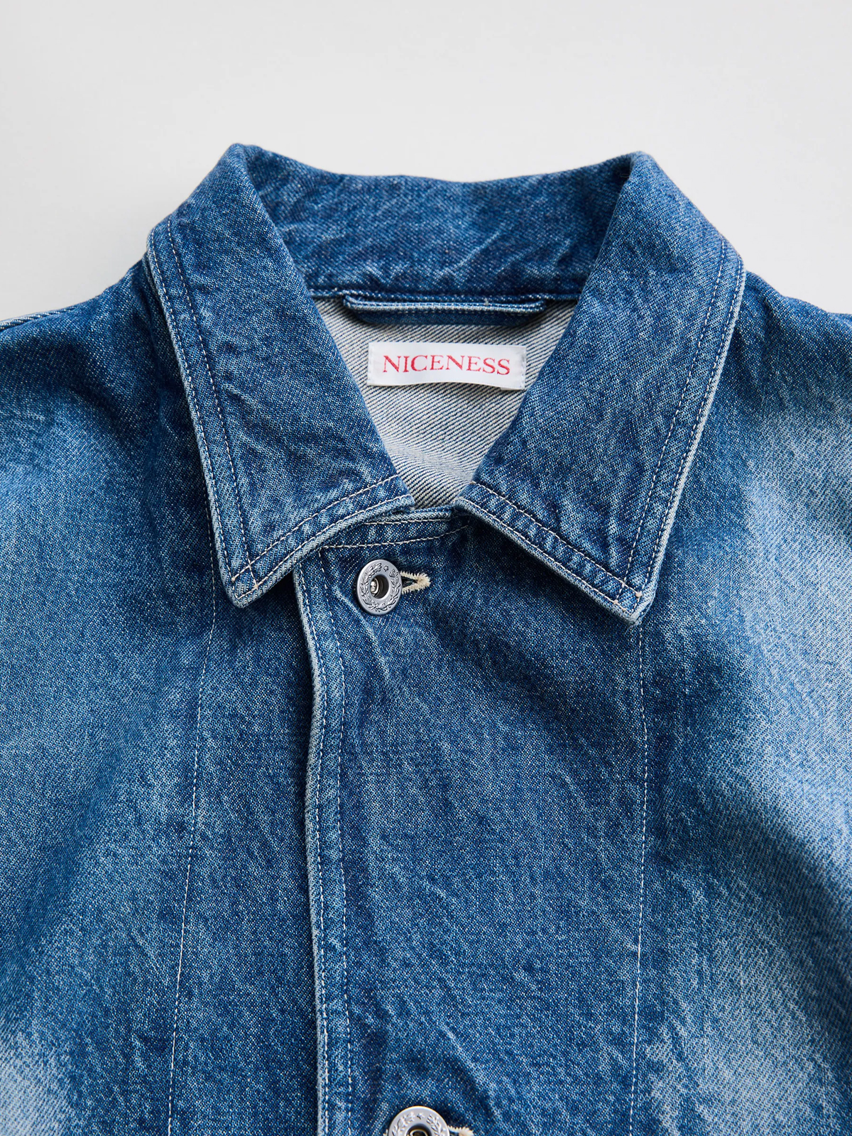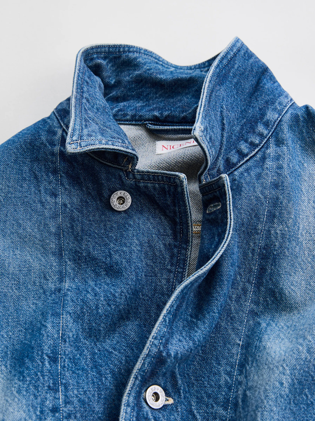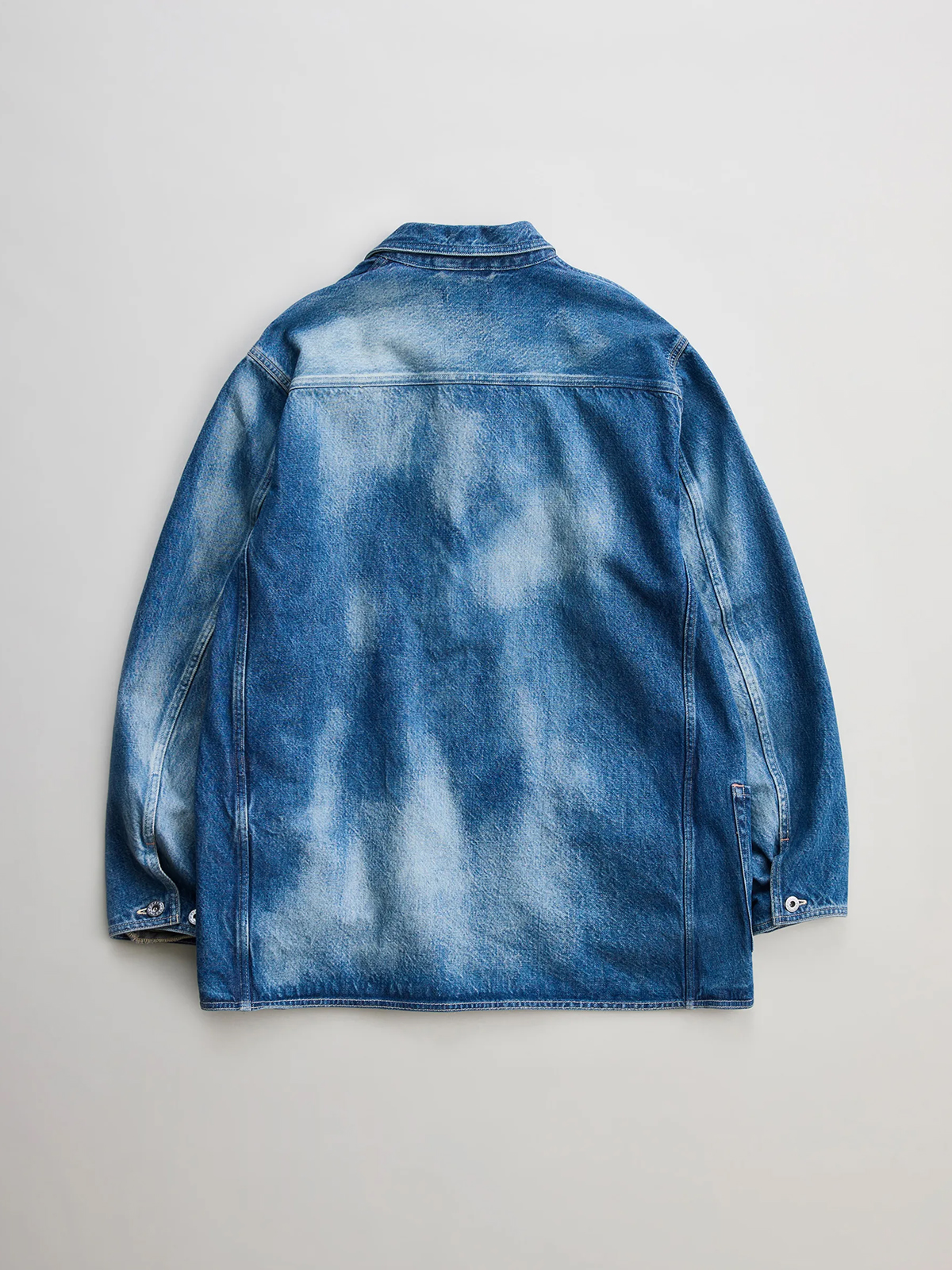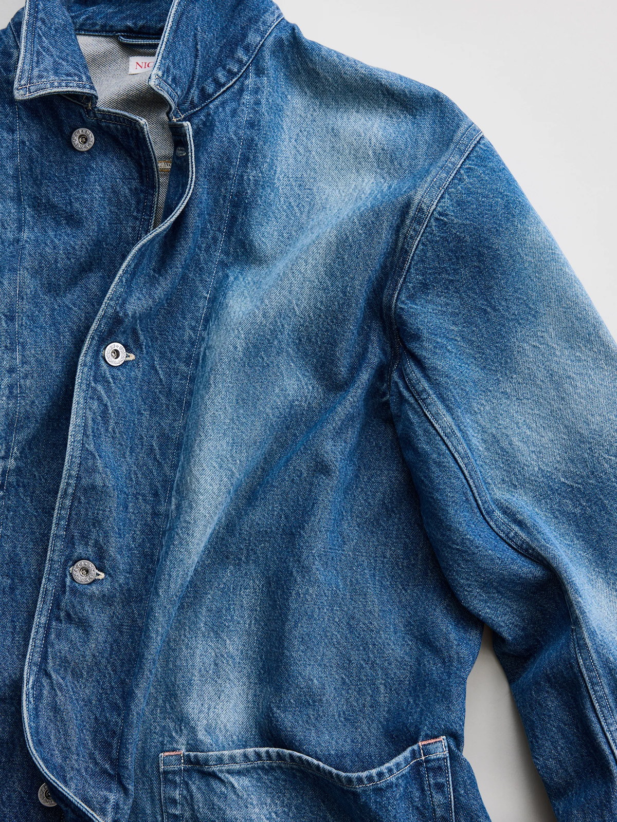 로프 다잉 방식으로 순수 인디고로 염색한 심백(芯白) 원사를 사용했으며, 자연스러운 슬럽감이 살아 있는 실로 직조해 은은한 기모감과 거친 질감을 동시에 표현했습니다.