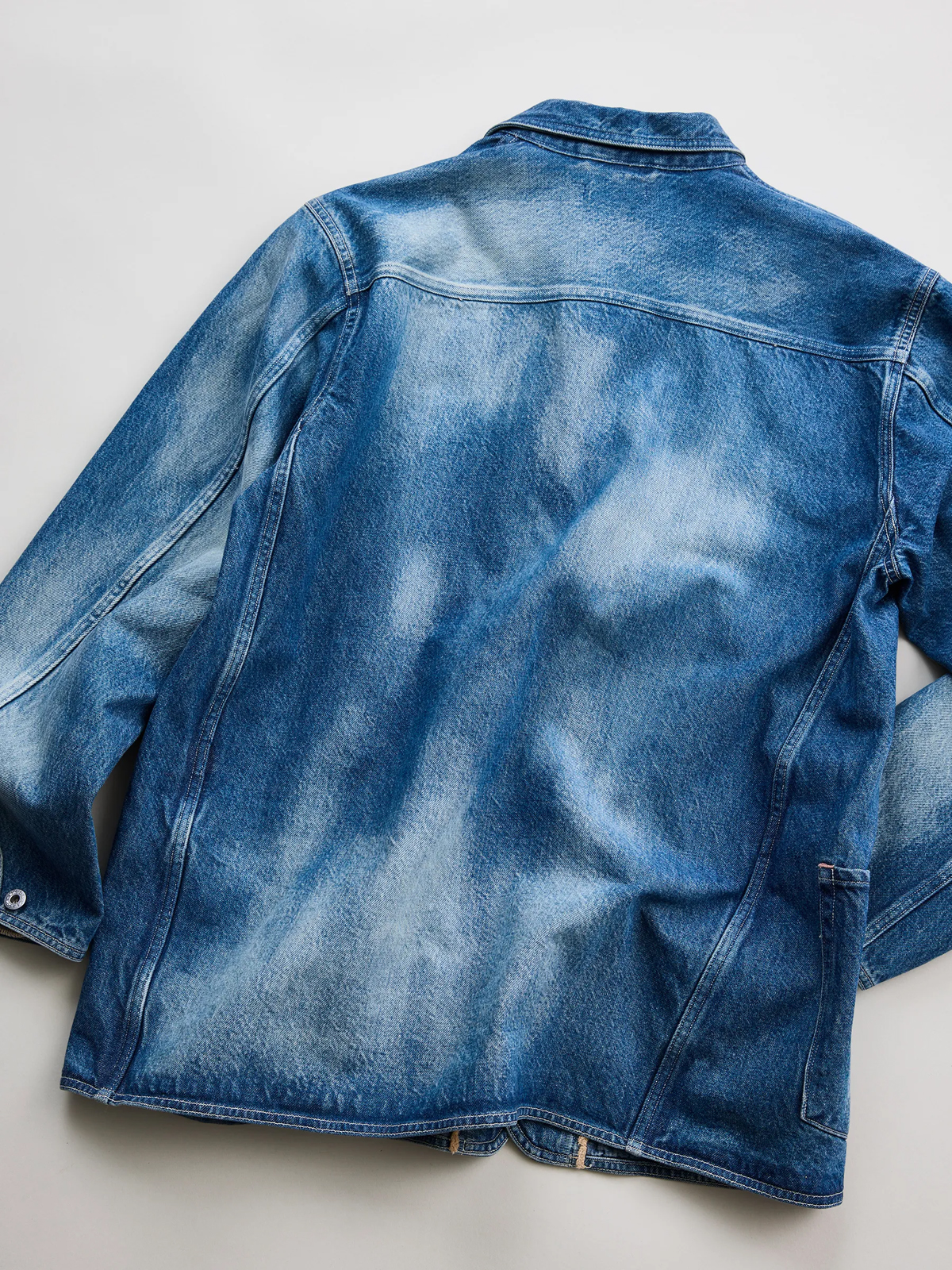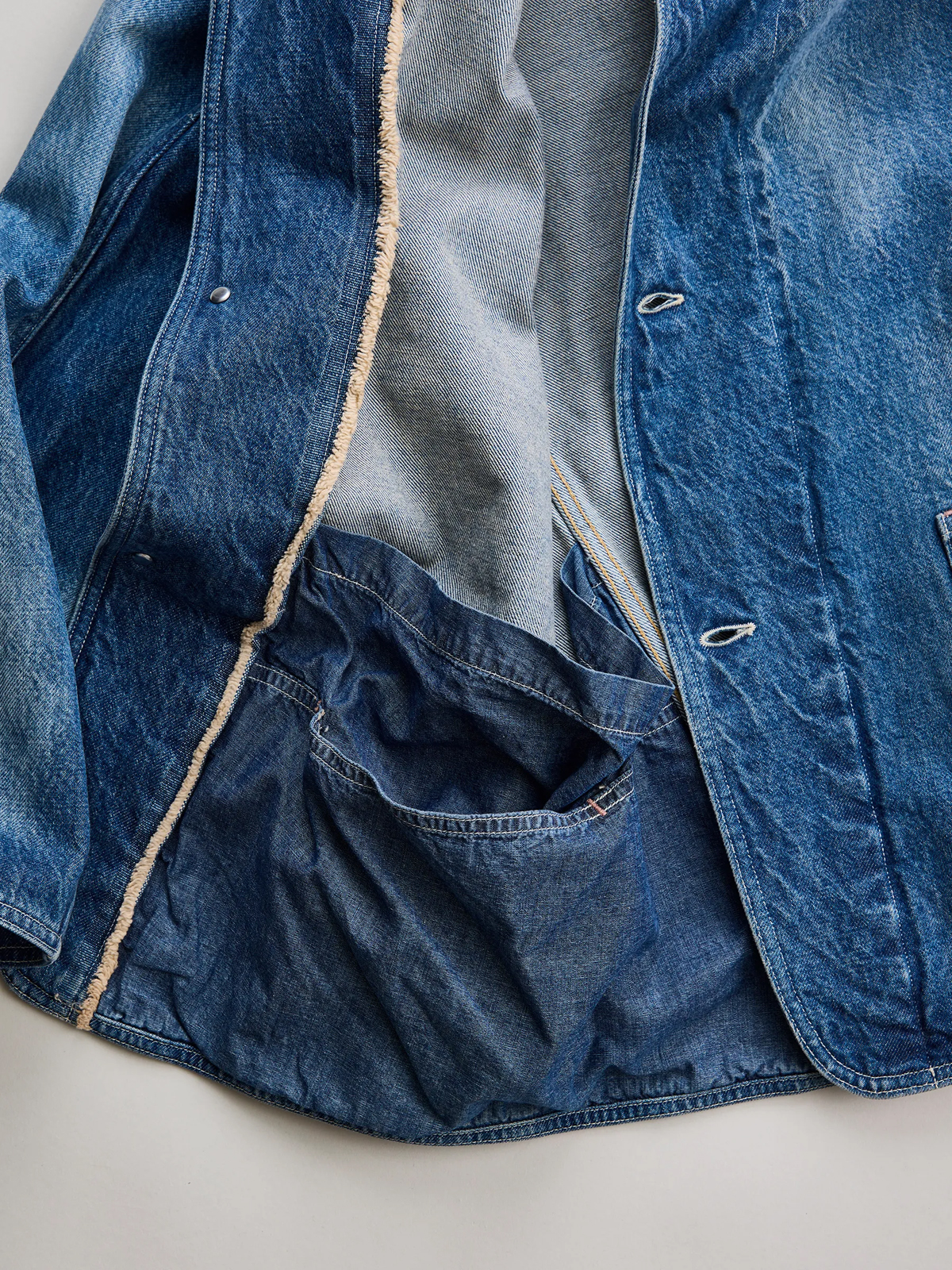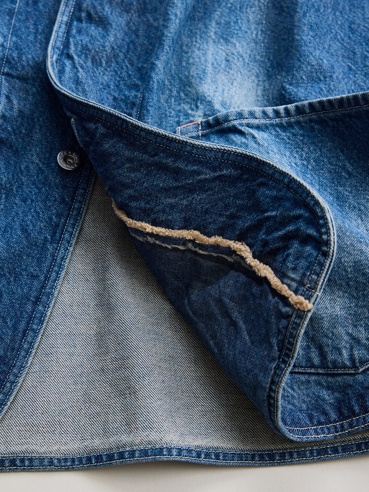 13oz 우향 트윌로 직조한 논워시 데님 원단으로 제작한 커버올입니다.