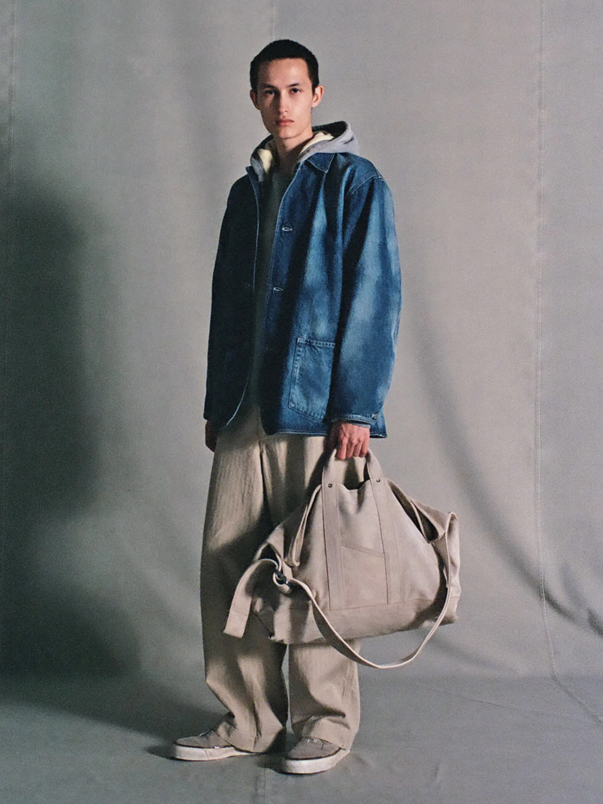 1940년대 밀리터리 커버올을 레퍼런스로 삼아, 일본 기모노에서 느껴지는 직선적인 미감을 현대적으로 융합했습니다.
