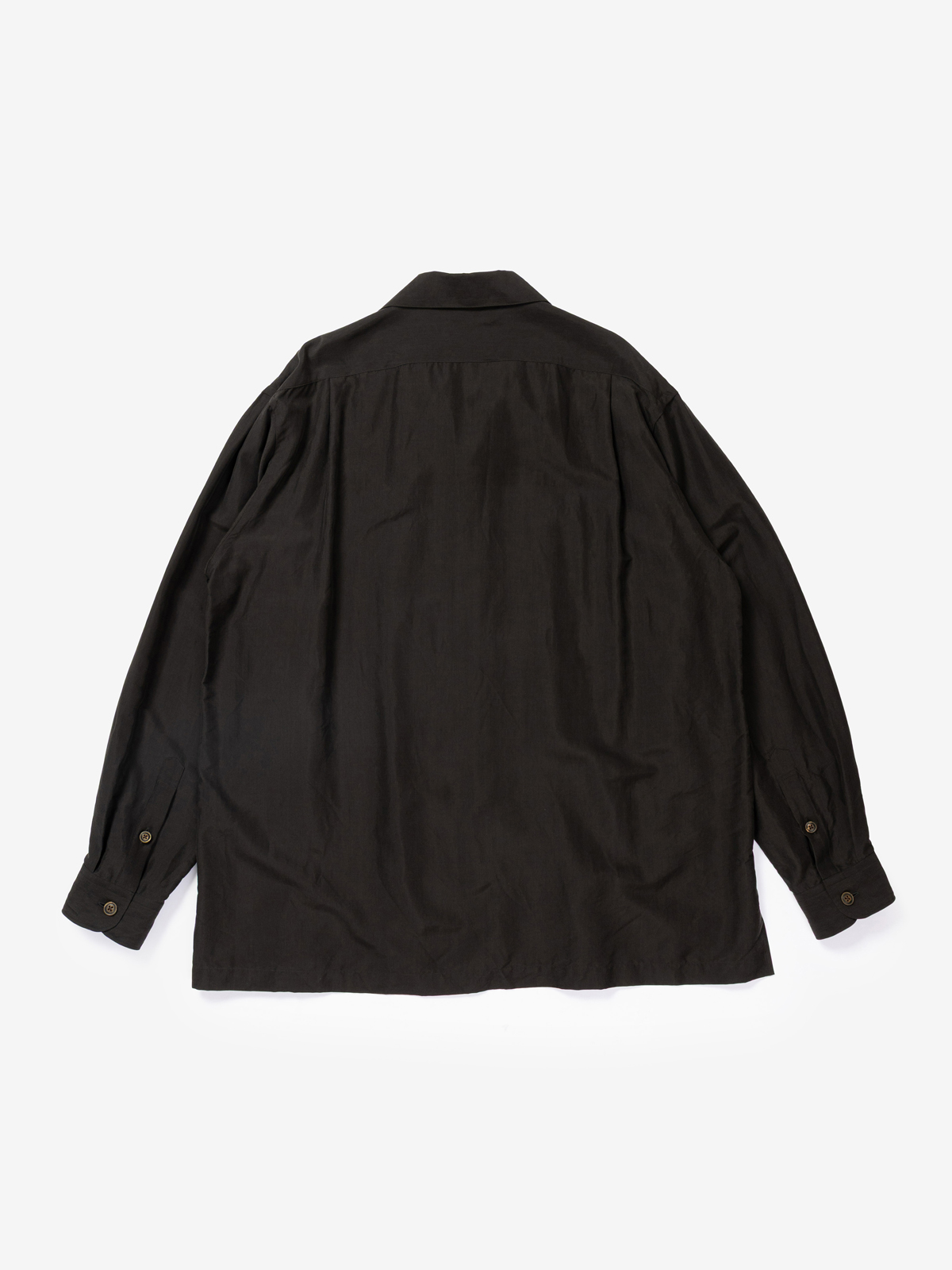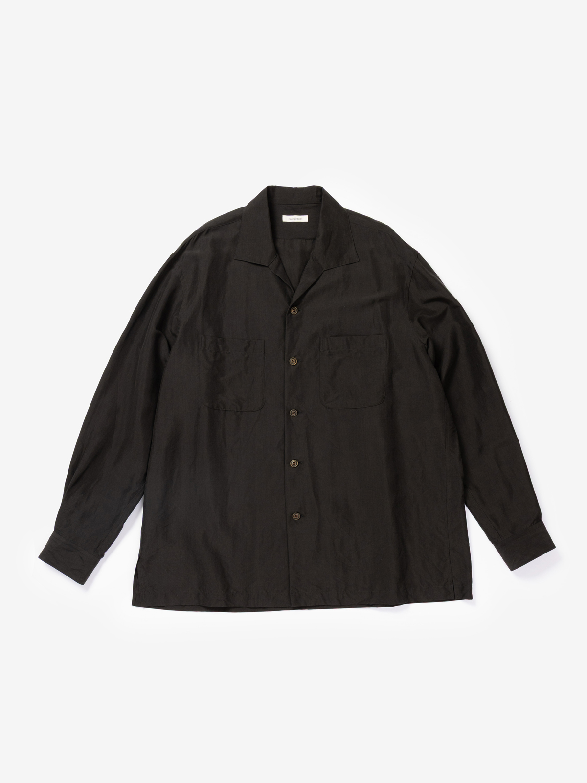 calmlence [캄렌스] - SILK FIBRIL CLOTH CLASSIC OPEN COLLAR LS SHIRT - Black