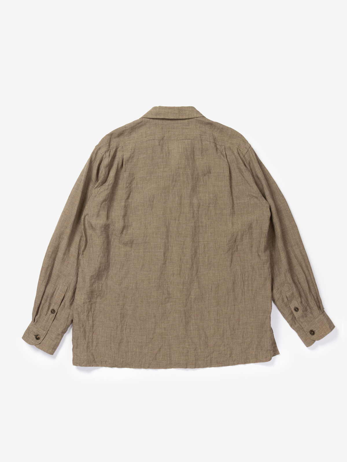 형태는 소매와 몸판에 적당한 여유를 둔 박스 실루엣을 바탕으로 클래식한 오픈 칼라를 채택했고, 옆선 슬릿과 앞뒤 기장의 미묘한 차이를 통해 재킷 같은 구조감과 셔츠 특유의 편안한 ‘빠짐’을 동시에 살렸습니다.