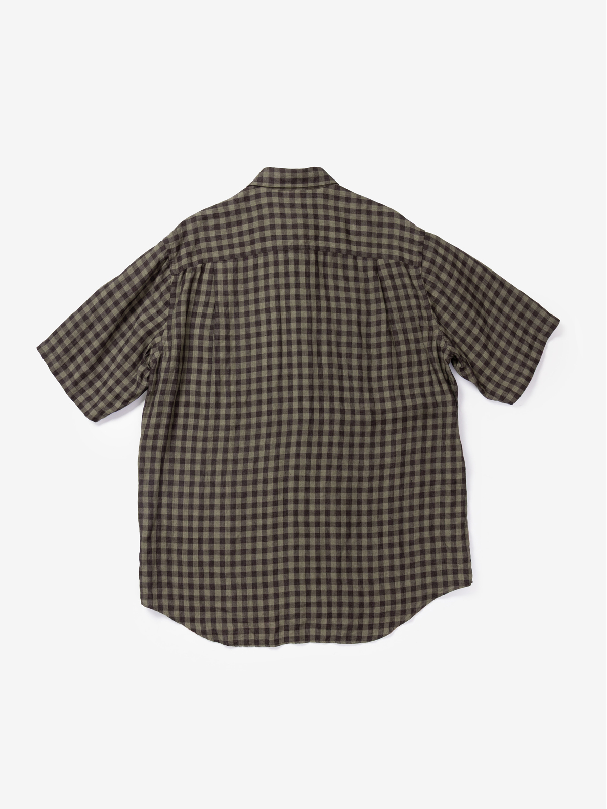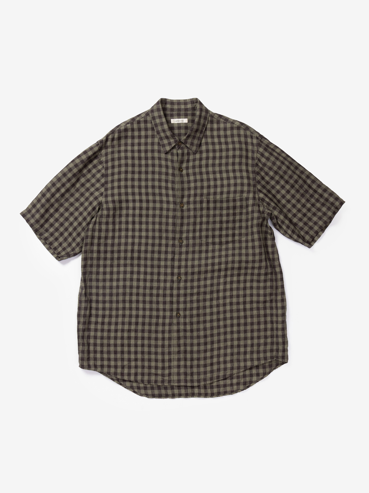calmlence [캄렌스] - GINGHAM CHECK CLOTH REGULAR COLLAR SS SHIRT - Gray/Brown