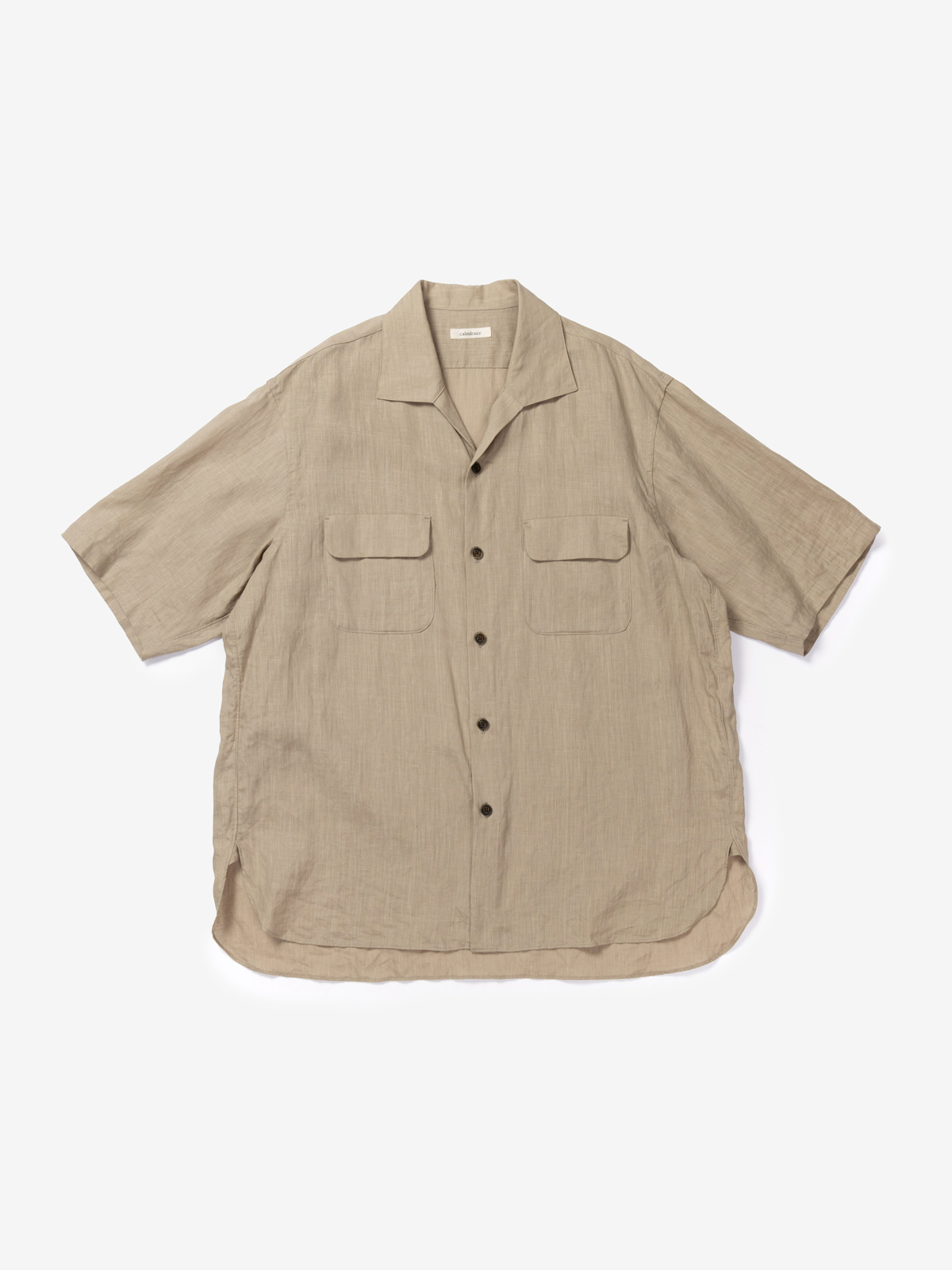 calmlence [캄렌스] - LINEN CLOTH CLASSIC OPEN COLLAR SS SHIRT - Light Beige