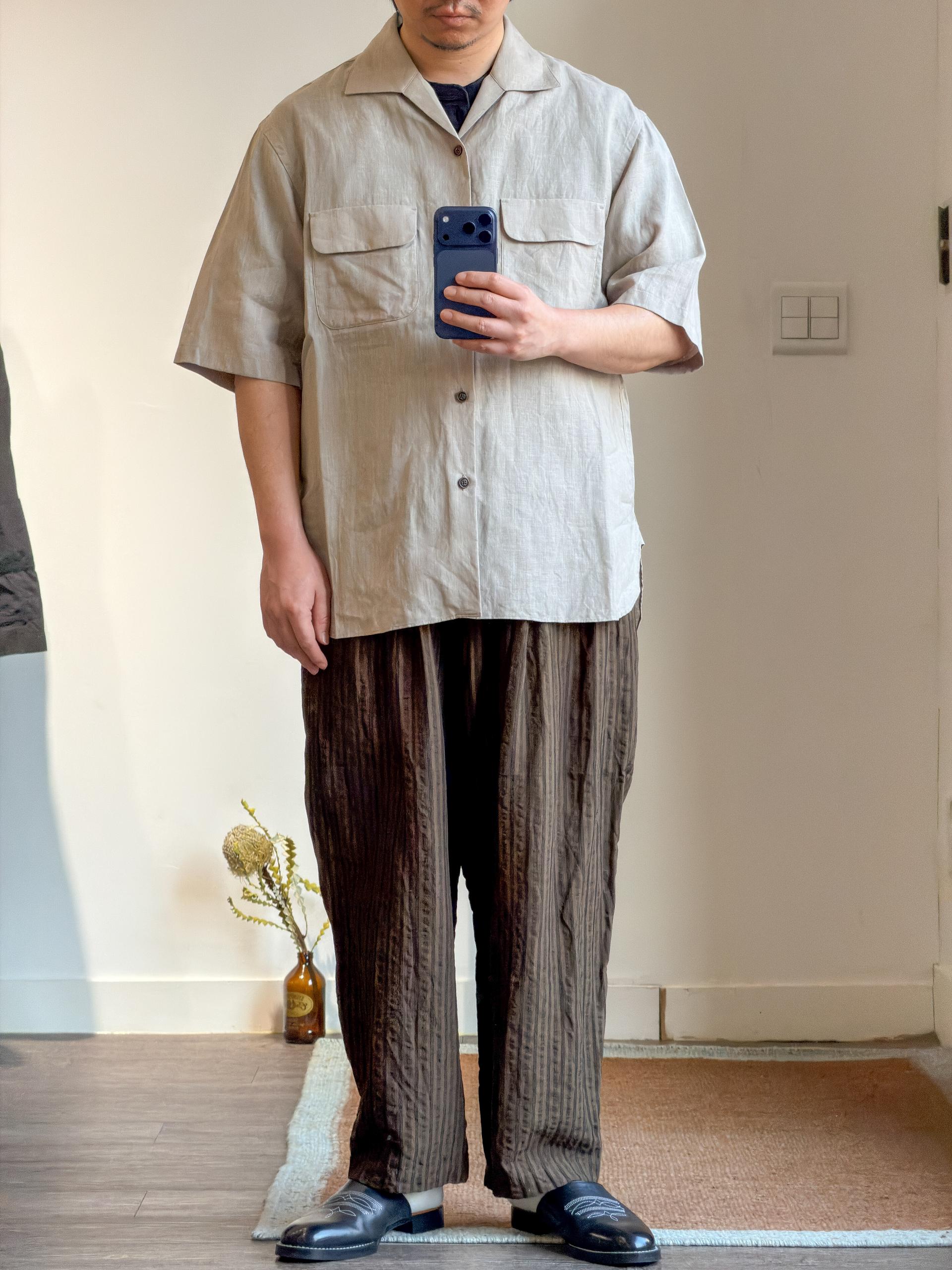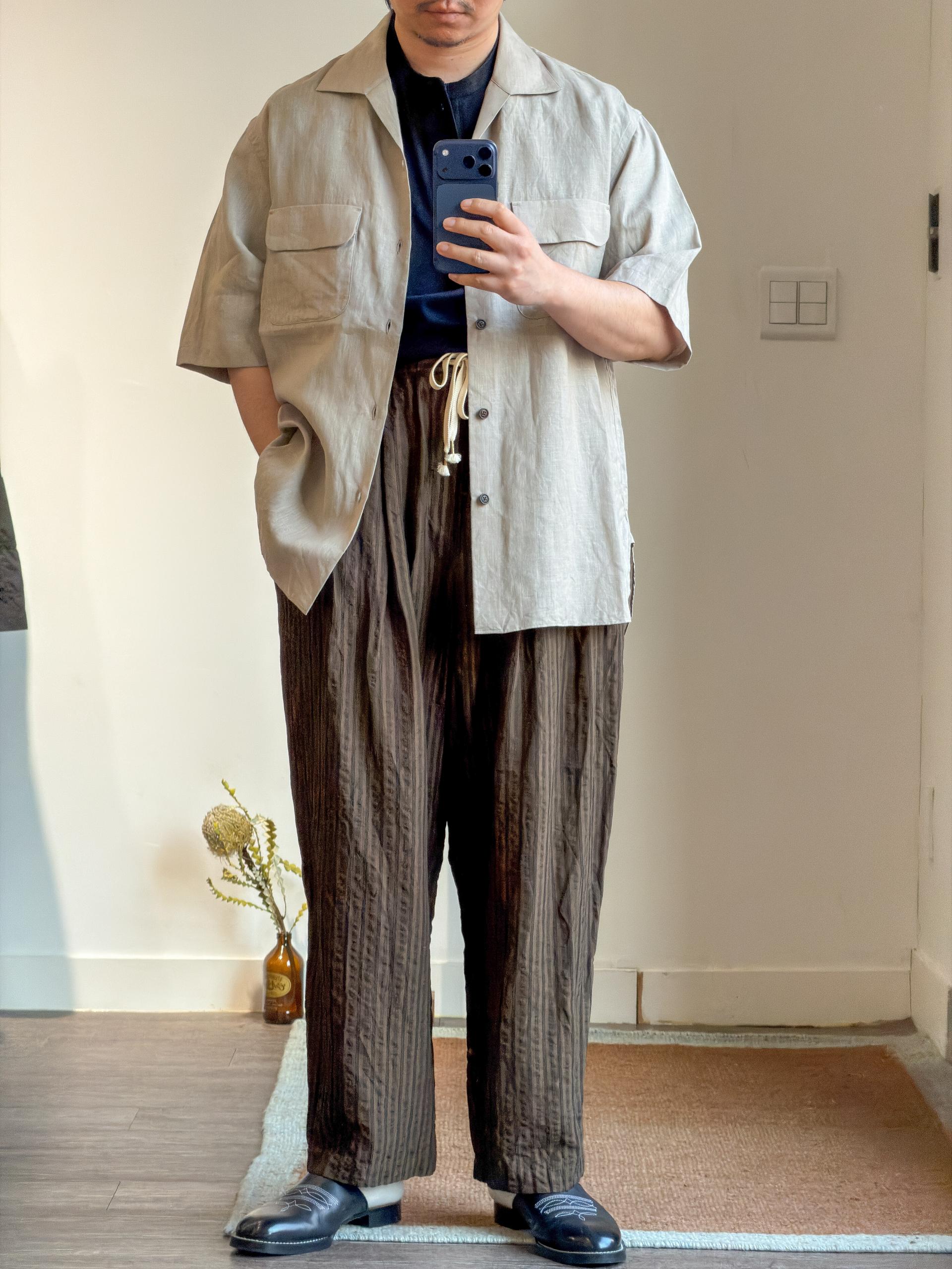 직조는 일본 3대 직물 산지로 꼽히는 시즈오카현 엔슈에서 진행되고, 염색과 바이오 가공은 린넨 염색에 강점을 가진 오미 지역(시가현)에서 마무리되며, 최종적으로 제품 상태에서 워싱과 천일 건조를 더해 자연스러운 결감과 소박한 느낌을 완성합니다.