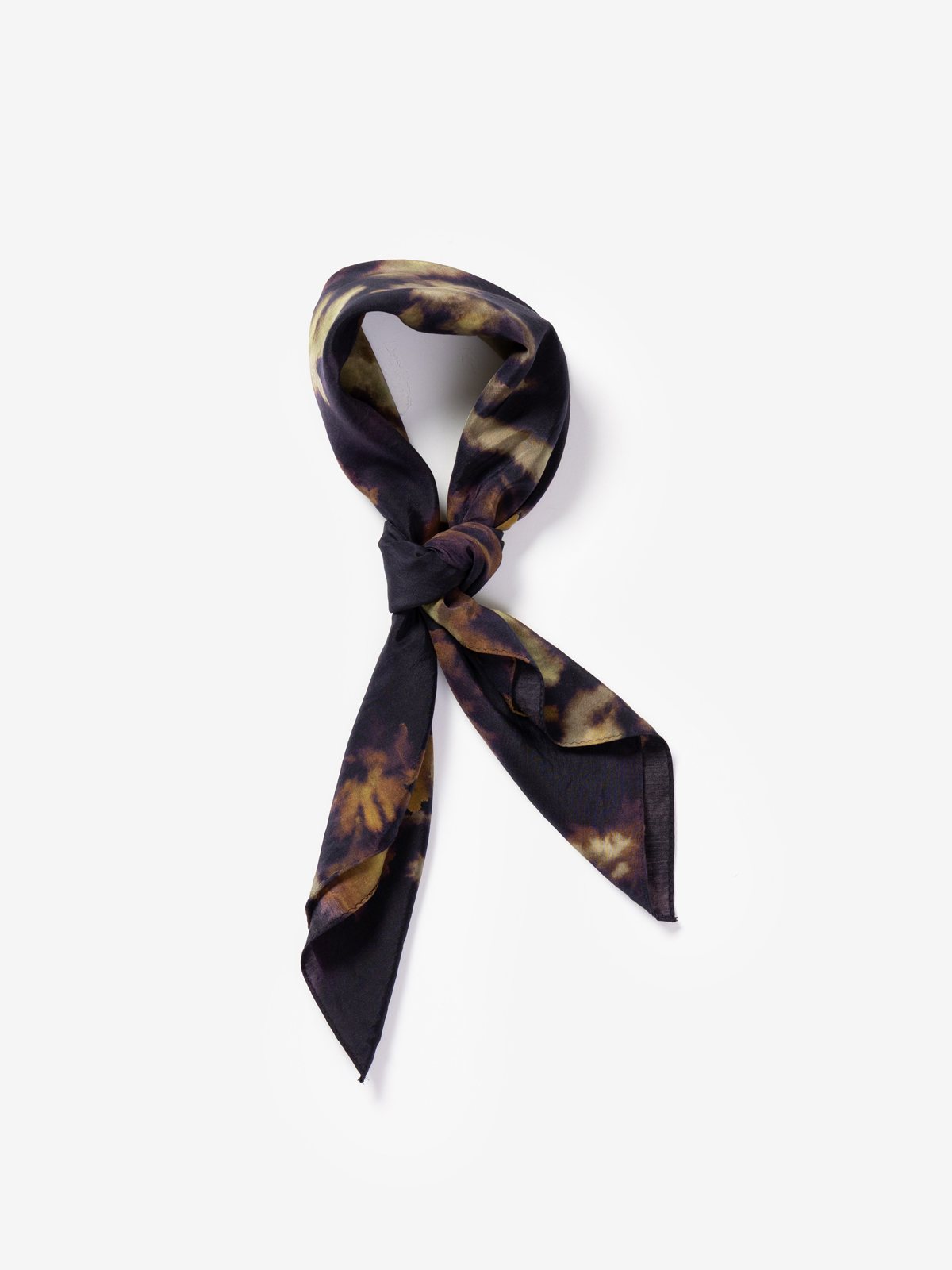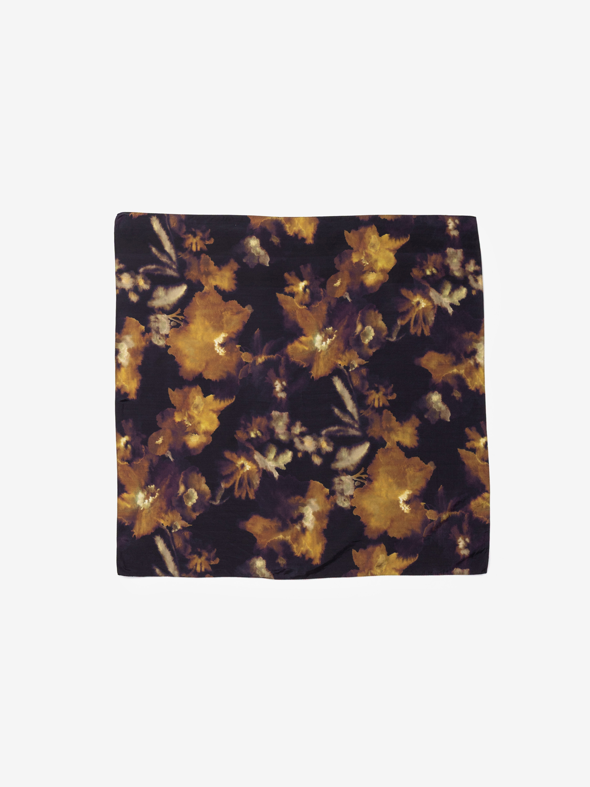 실크 31%와 큐프라 69%를 조합한 브랜드 오리지널 평직 원단으로 완성한 67×67 사이즈의 플라워 프린트 스카프입니다.