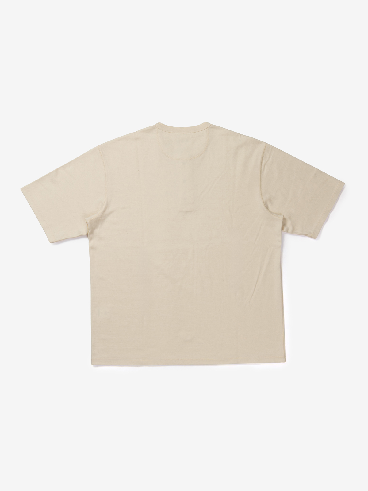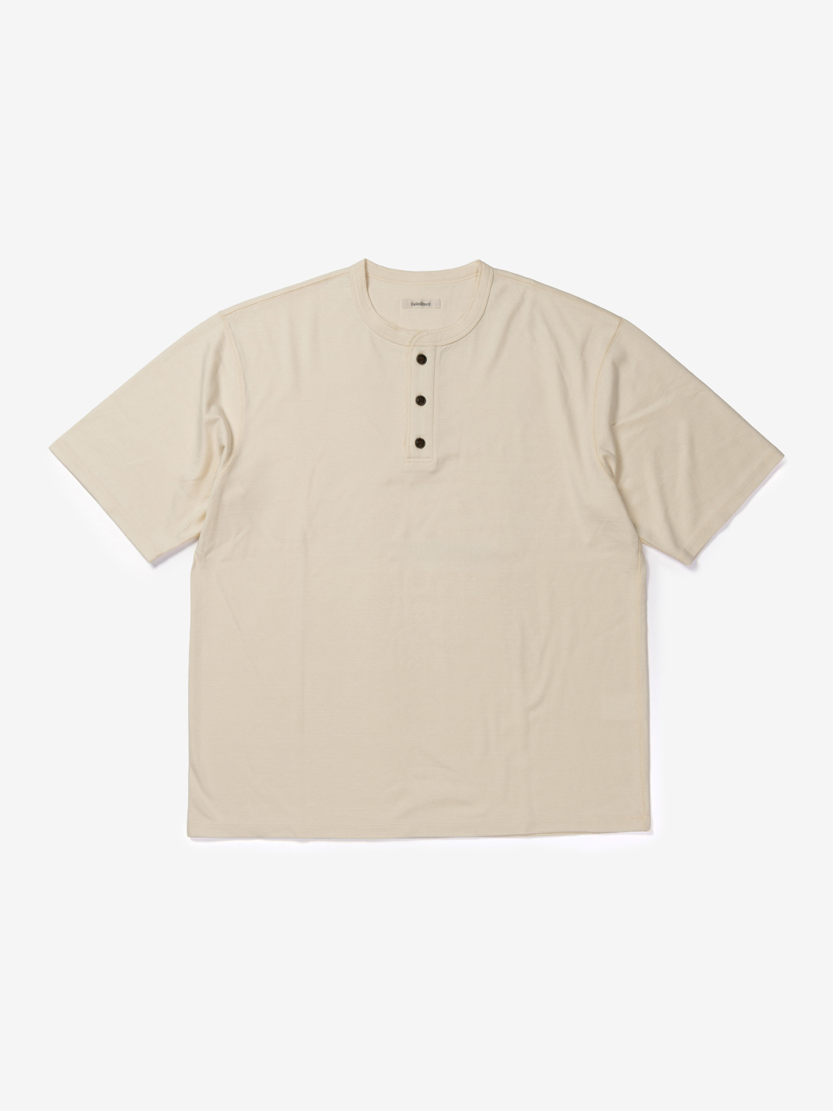 calmlence [캄렌스] - SILK/SUVIN REVER JERSEY HENLEY NECK SS T-SHIRT - Off White