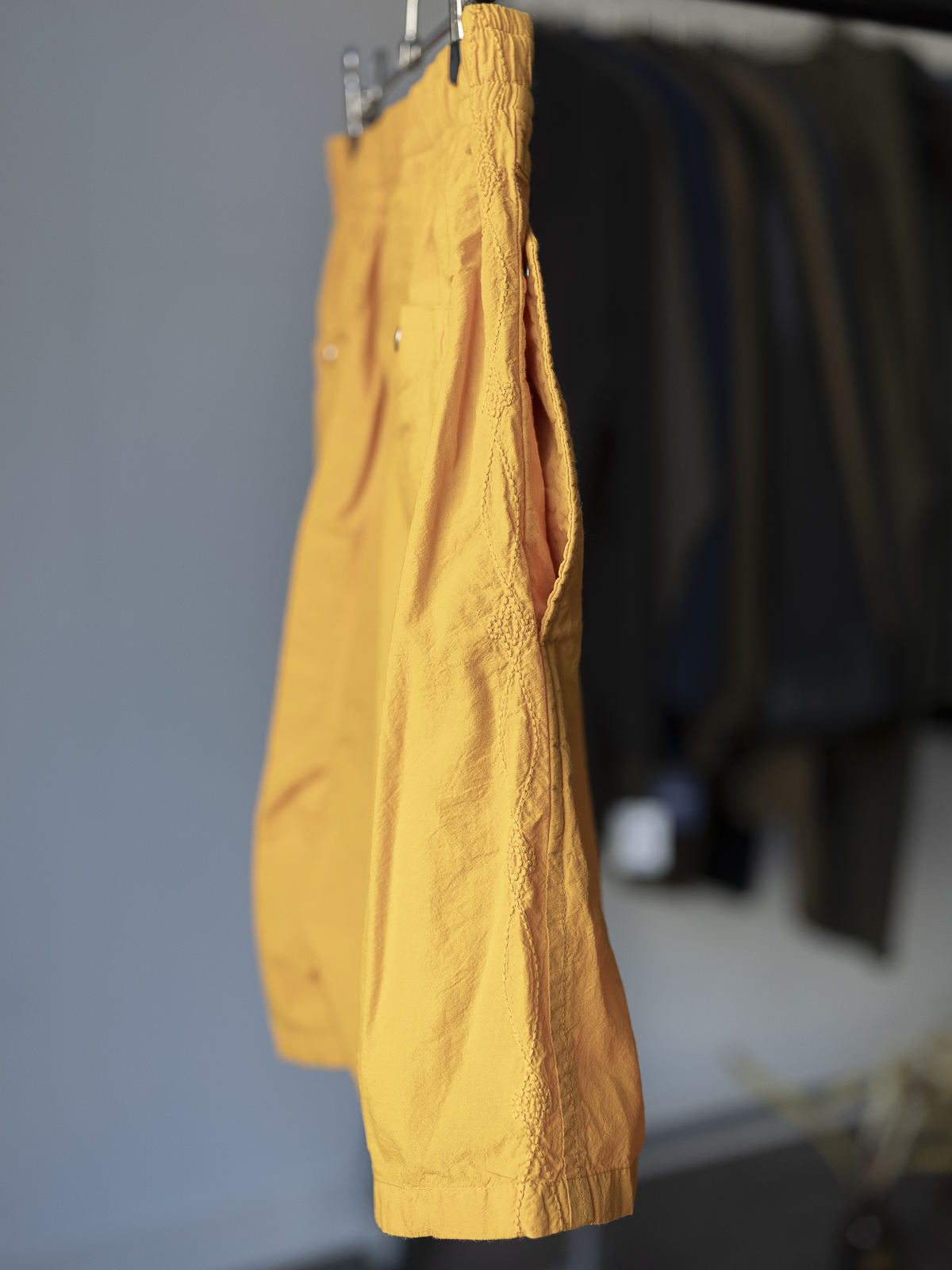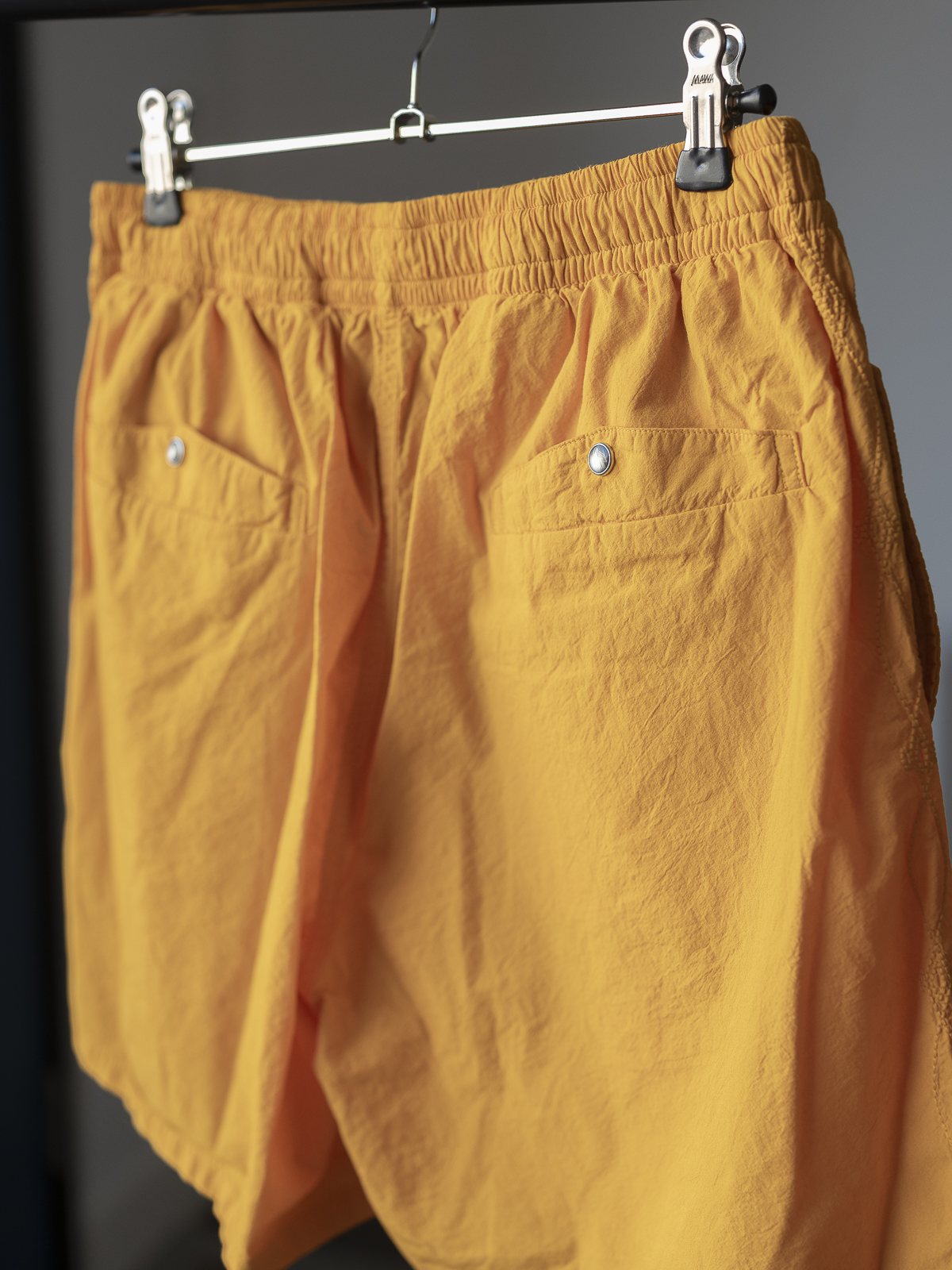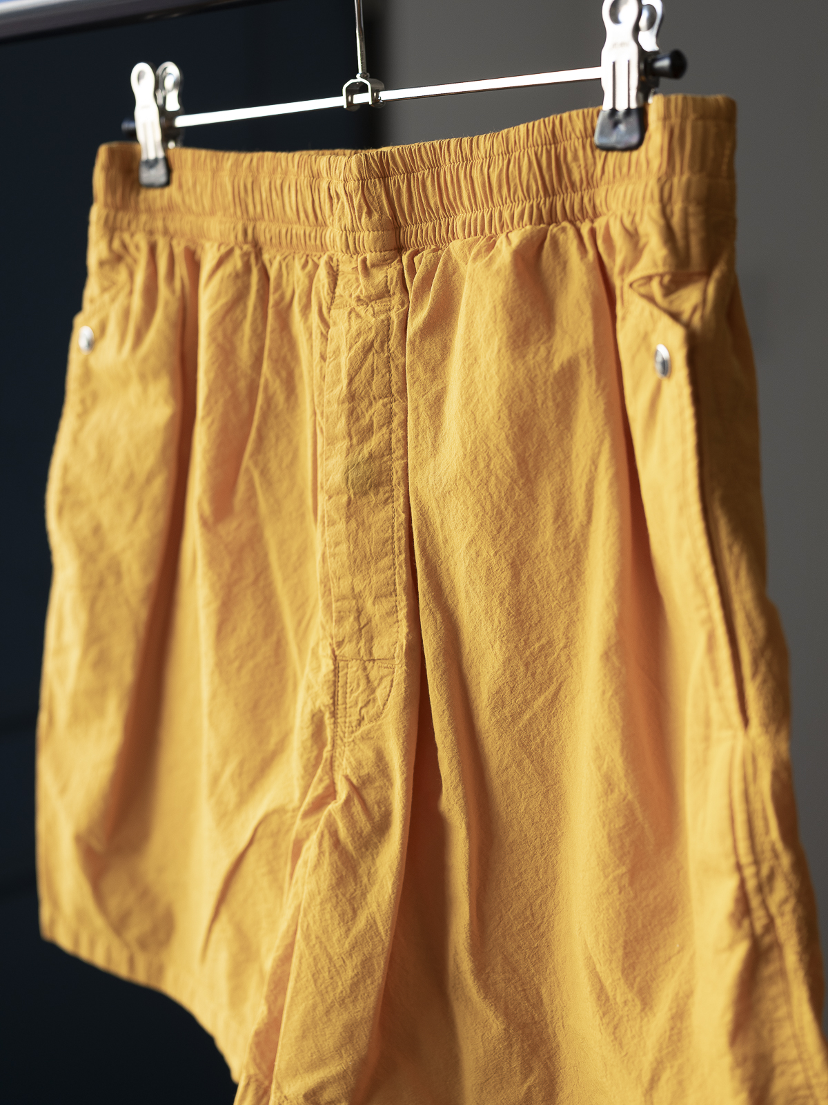 여기에 가먼트 다잉을 추가로 진행함으로써, 고밀도 원단 특유의 적당한 탄력감을 유지하면서도 가볍고 여유로운 분위기를 동시에 갖춘 쇼츠로 완성했습니다.