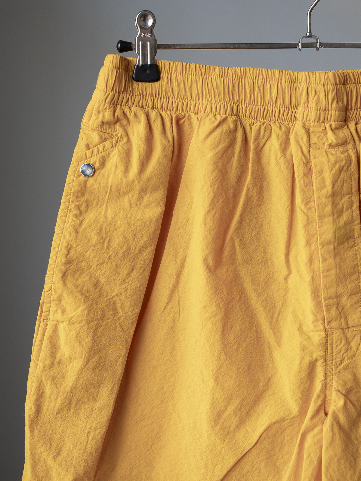 허리는 밴드와 드로우 코드를 적용한 이지 웨이스트 사양이며, 측면에는 스냅 버튼이 부착된 포켓을 더해 기능성과 경쾌한 착용감을 동시에 고려했습니다.