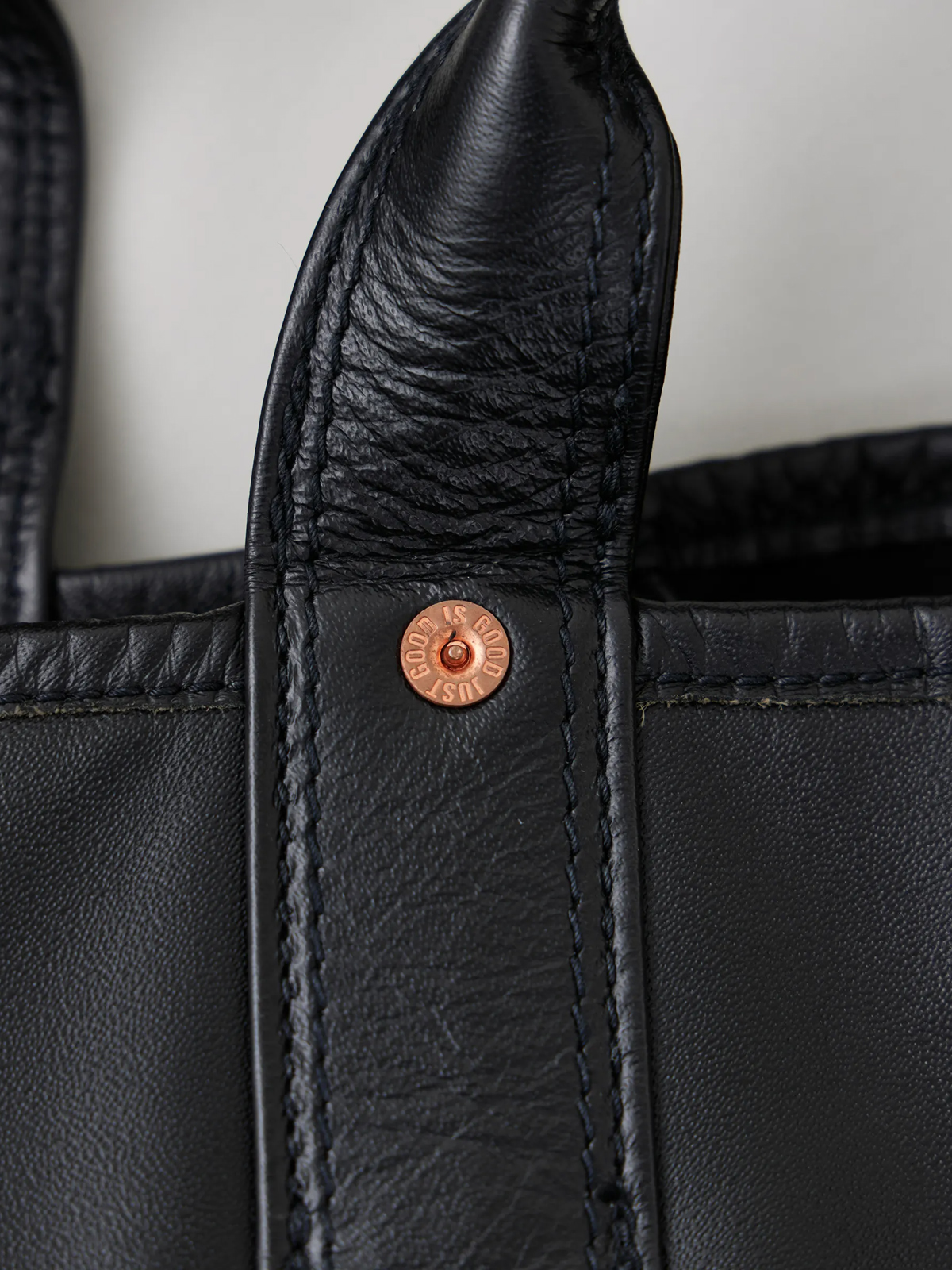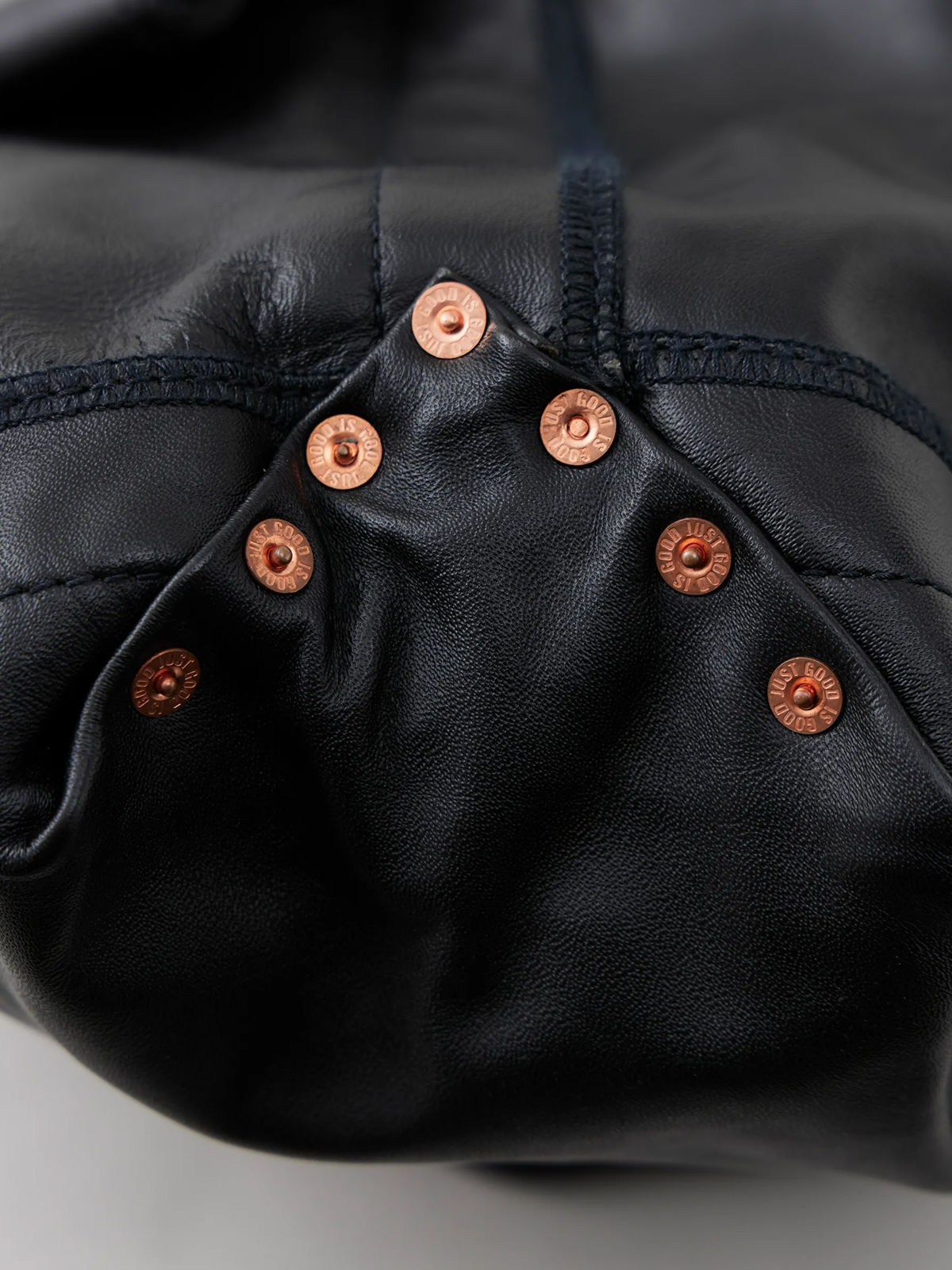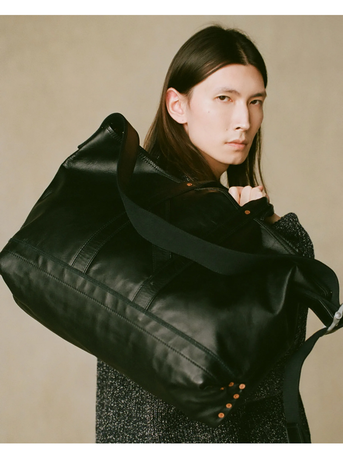 투박하면서도 우아한 광택의 고품질 말가죽을 사용하여 제작하였으며, 가방 하단 양쪽의 리벳(Rivet) 디테일 등 당시의 분위기를 충실히 재현하면서도 각 디테일은 현대적인 감각으로 재해석되어 빈티지와 모던함이 공존하는 완성도 높은 디자인으로 완성되었습니다.