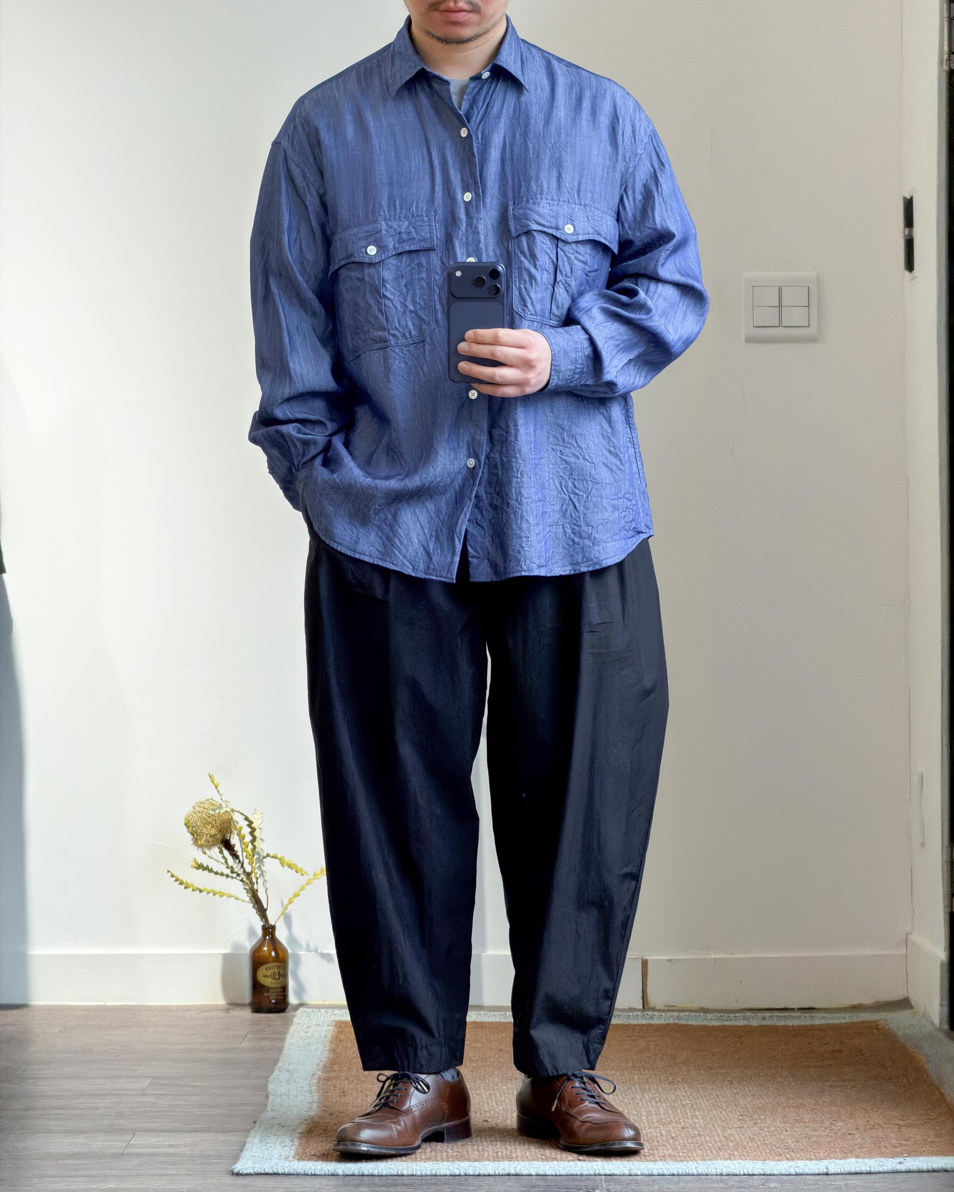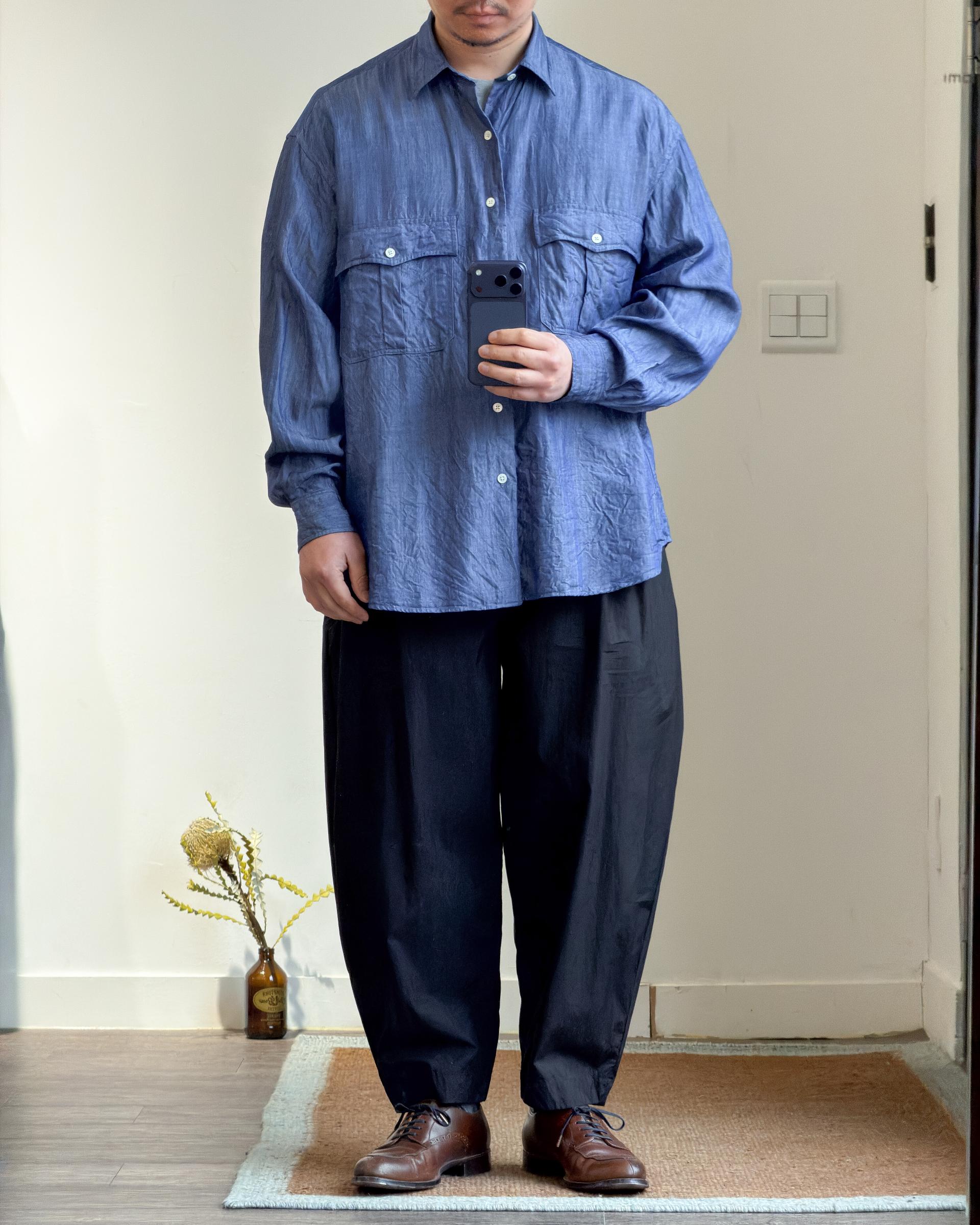 깊은 밑위 길이와 넉넉한 허벅지 둘레는 편안한 착용감을 제공하며, 딱 떨어지는 총장과 넓지 않은 밑단 덕분에 경쾌한 실루엣으로 착용하실 수 있습니다.