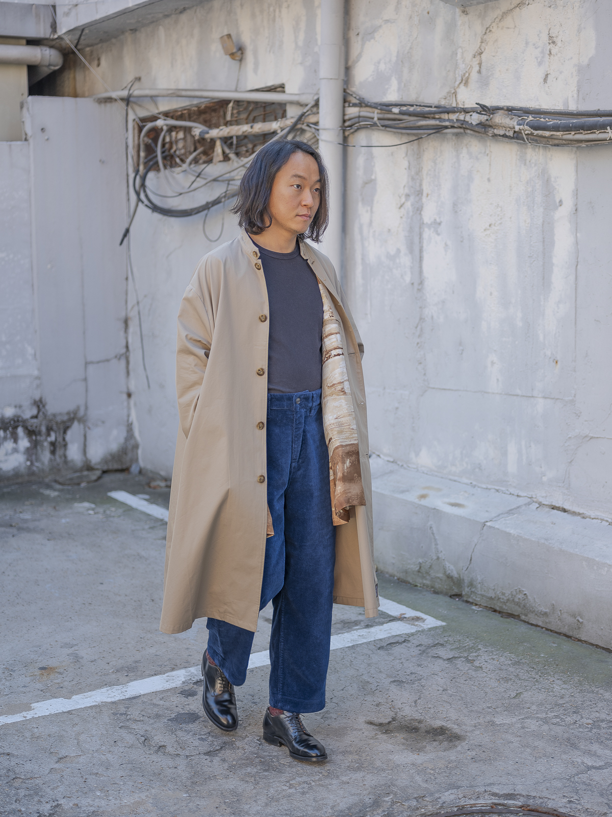 스탠드 칼라 형태의 실크 개버딘 코트로서 소량의 수량만 한정적으로 생산된 리미티드 아이템입니다.