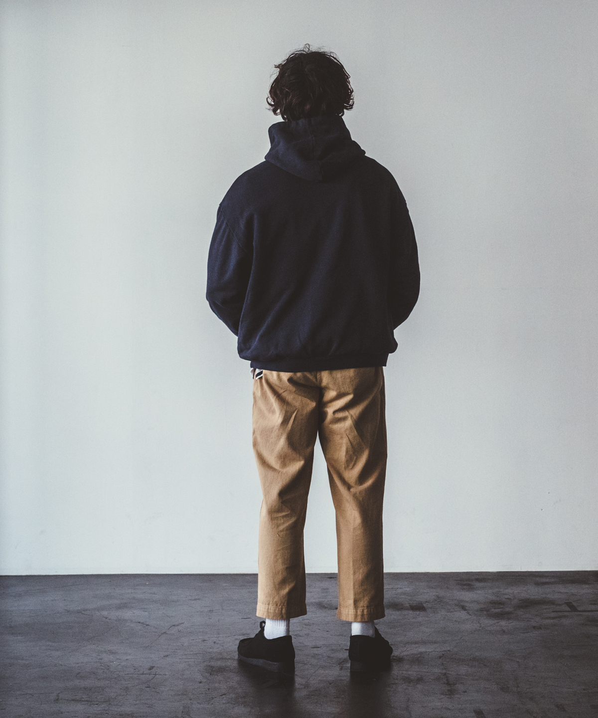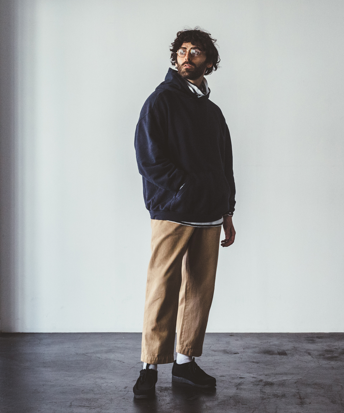 앞실에는 27수의 업사이클리노 원사, 중간실과 뒷실에는 각각 30수와 8수의 오가닉 코튼 원사를 사용하여 일본 와카야마(和歌山)현에서 편직하였습니다.