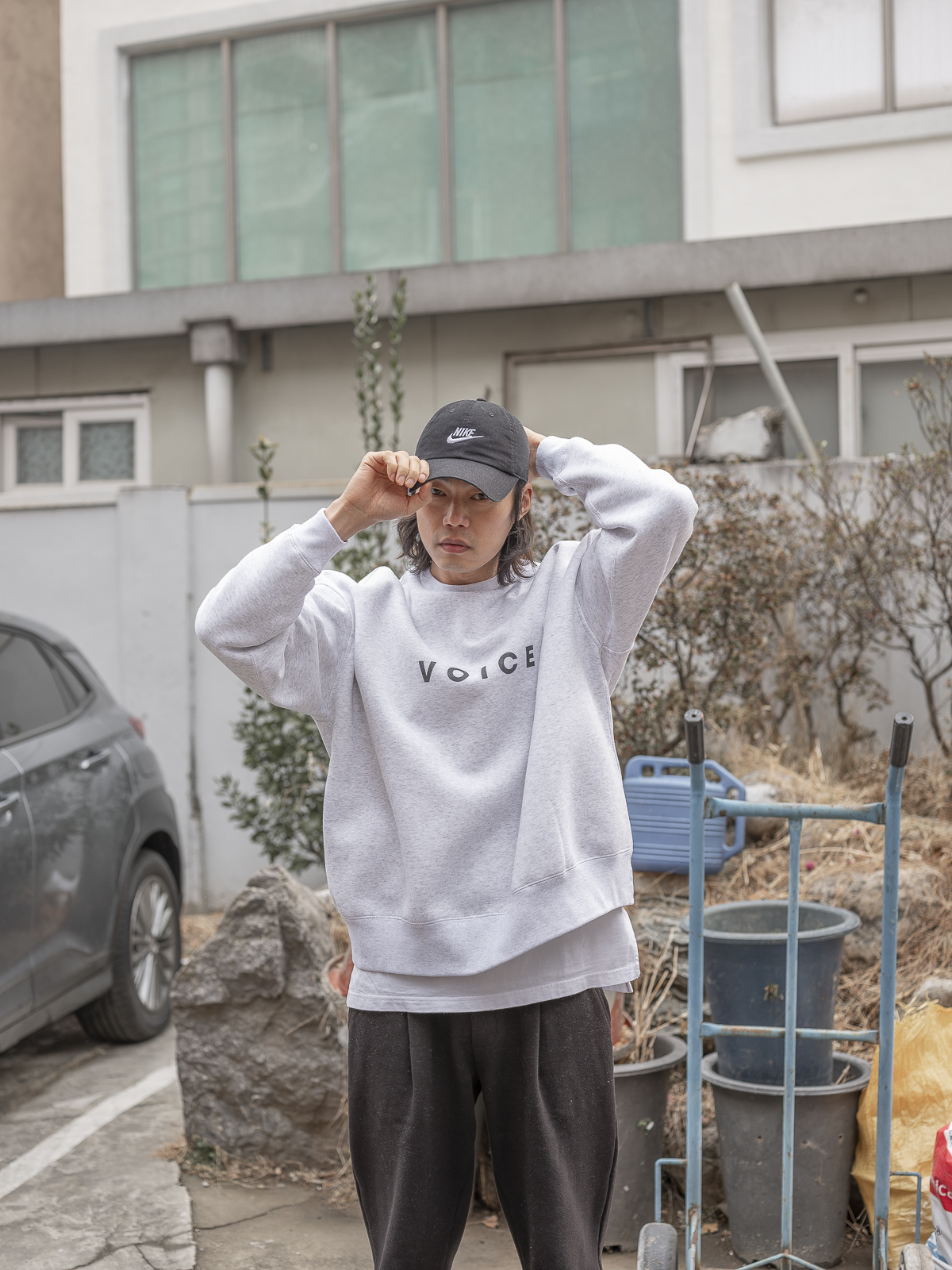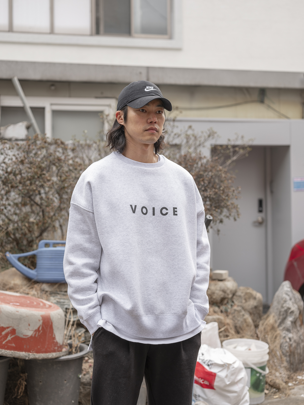 가슴 부분에 프린팅된 직관적이면서도 심플한 디자인의 타이포그래피인 "VOICE"는 SILENT POETS의 음악에서 영감을 받은 단어입니다.