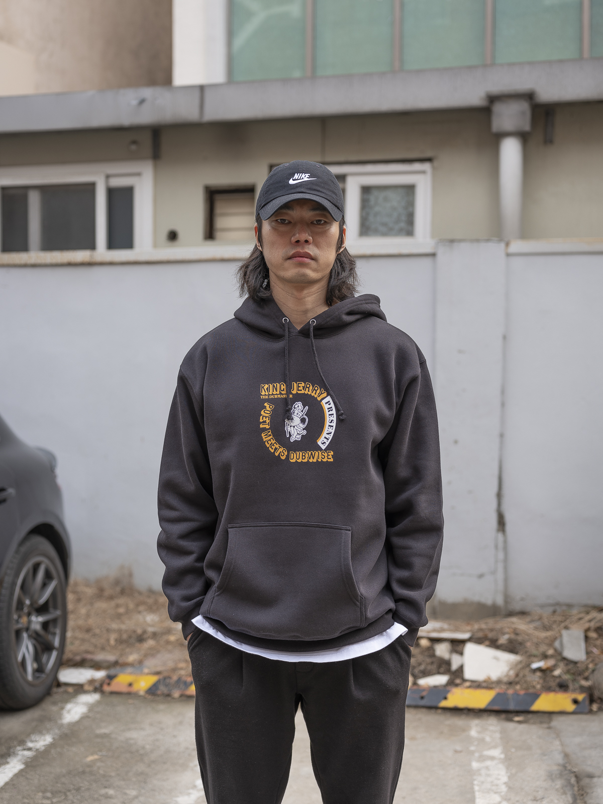 가슴 부분에는 왕관(Crown)을 자주 착용했던 킹 터비의 모습을 오마주한 새로운 캐릭터인 "KING JERRY"가 프린팅되어 있습니다. 그리고 그 주변 단어의 구도와 컬러감은 1975년에 발매된 킹 터비의 전설적인 앨범인 「Presents The Roots Of Dub」 바이닐(LP) 표지에서 영감을 받았습니다.
