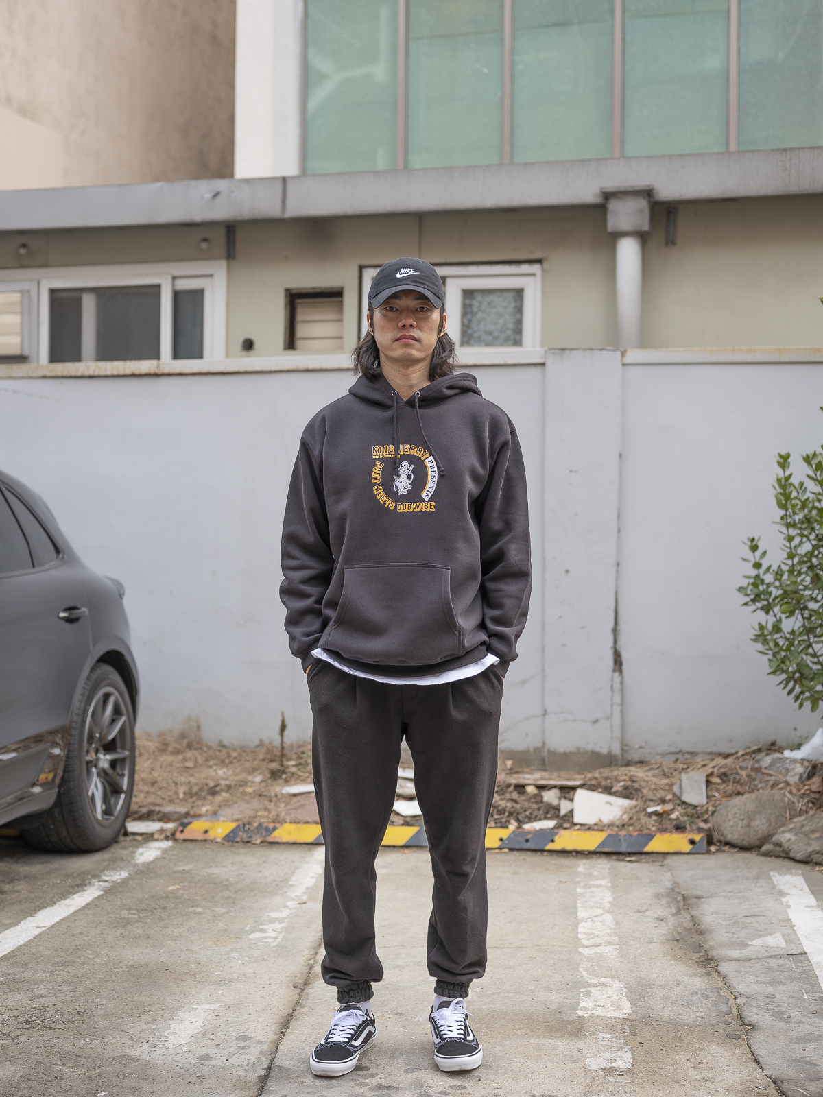레귤러핏의 풀오버 후디로, 안감은 보드라운 기모 소재로 되어 있어 쾌적한 착용감을 제공합니다.