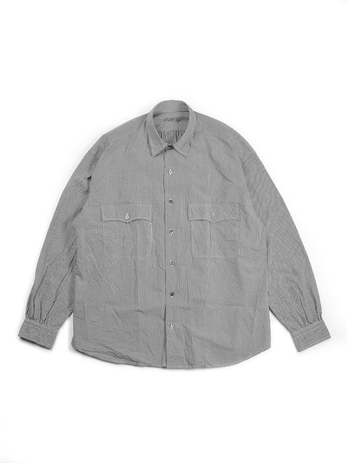 등과 소매 부분의 게더(Gather)는 롤업 셔츠 특유의 바스락 거리는 소재와 어우러져 심미적인 아름다움을 극대화시키는 역할을 합니다.