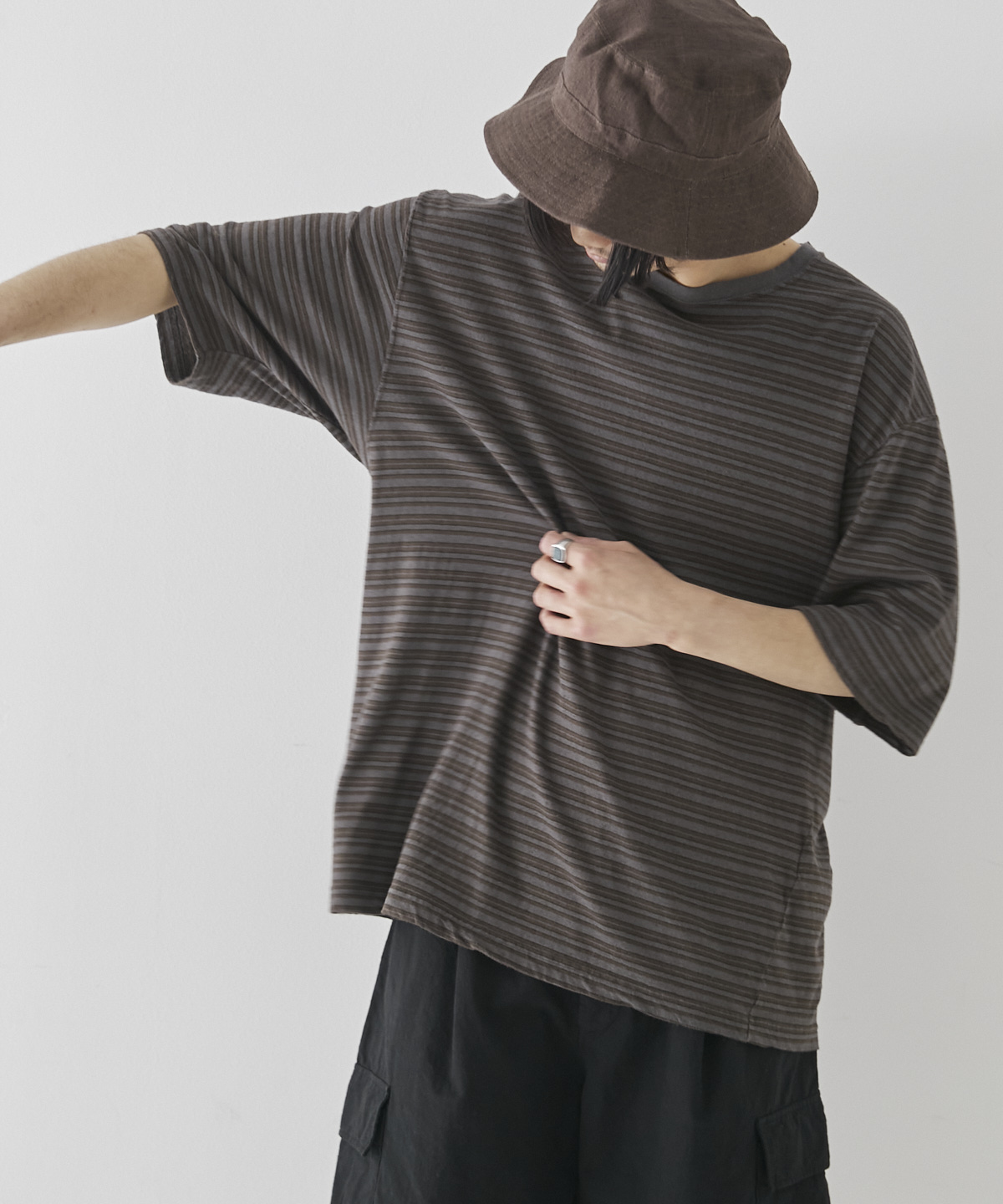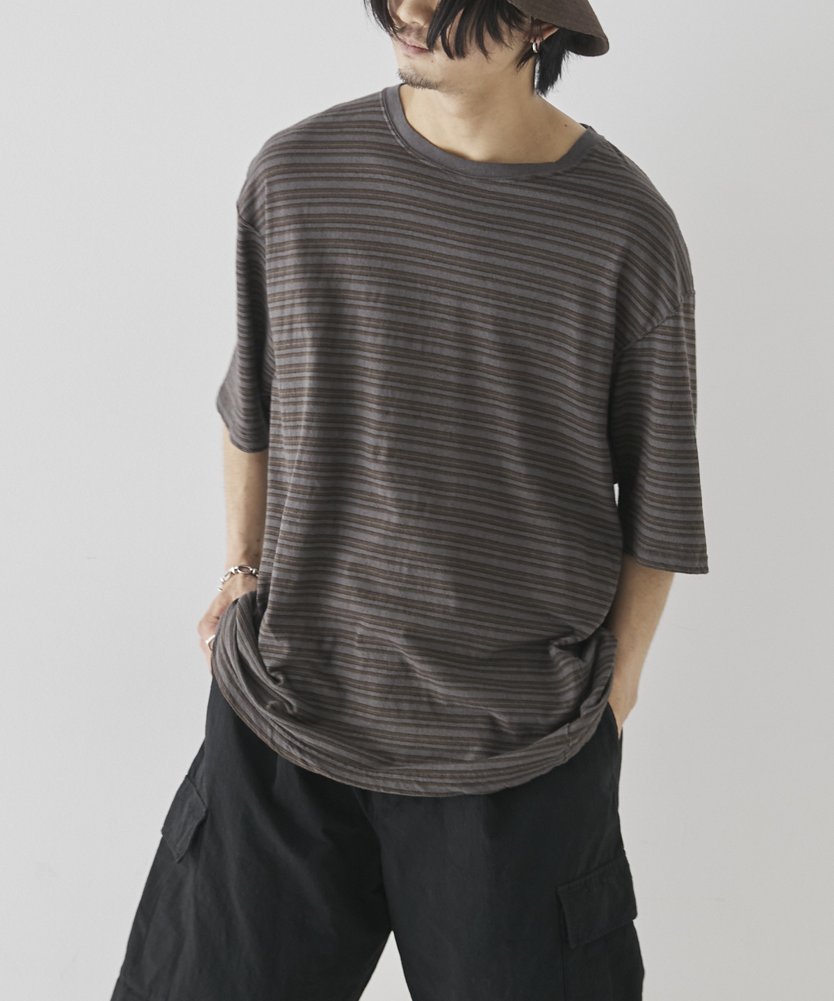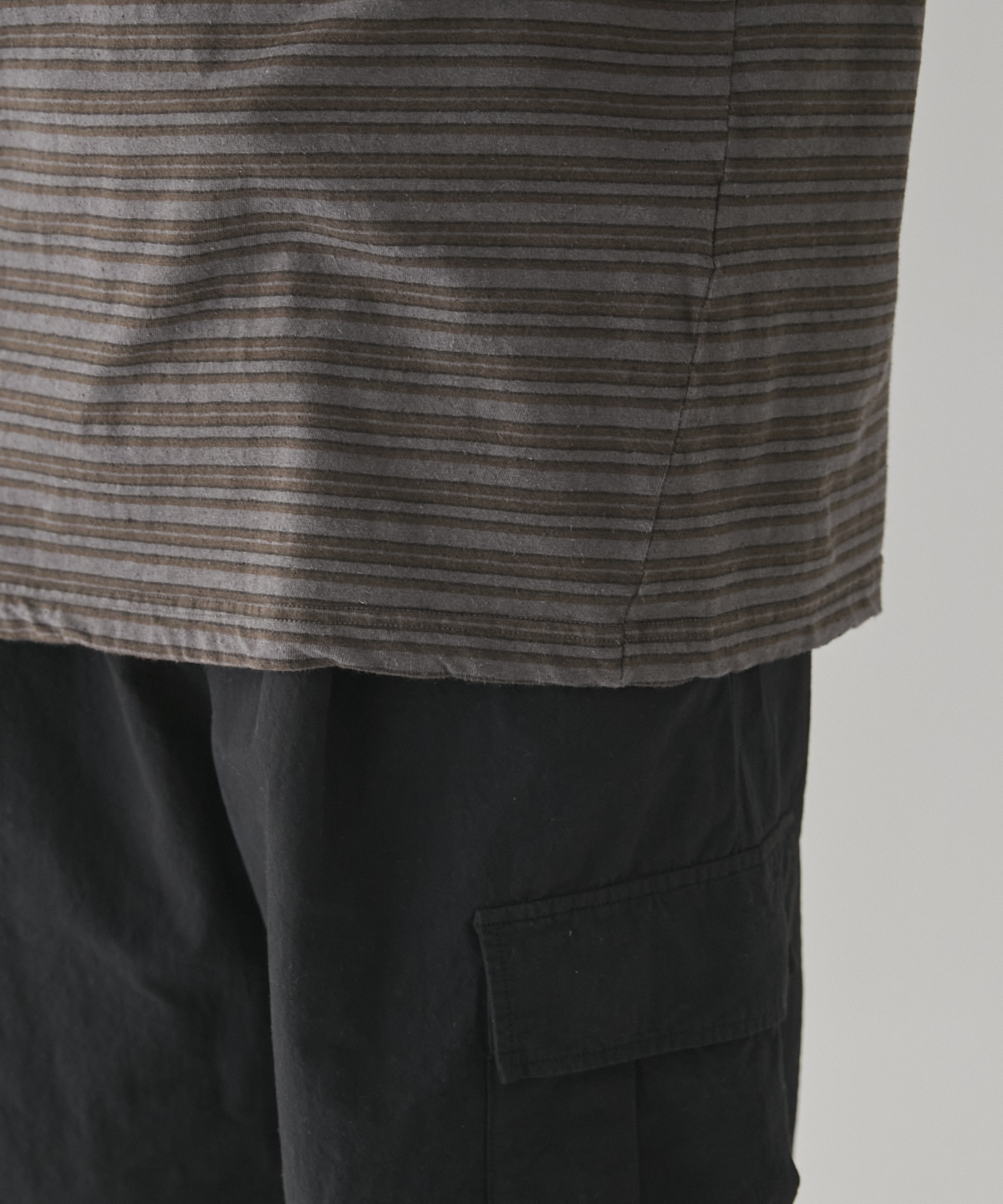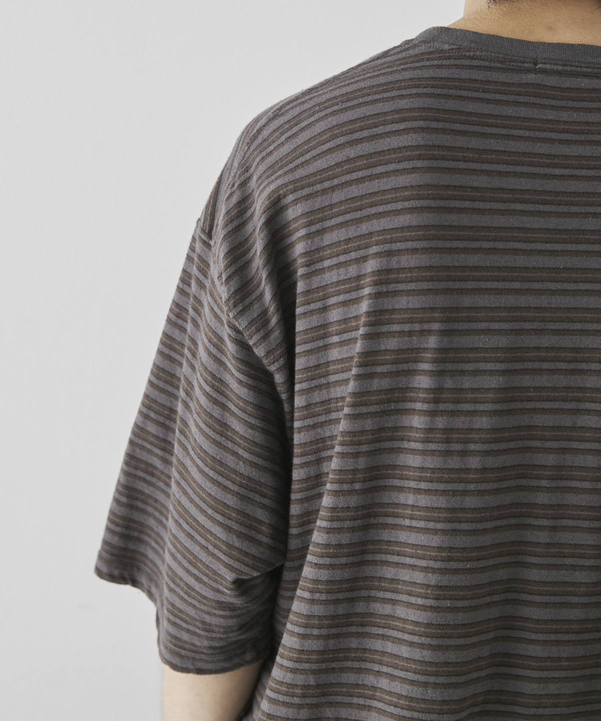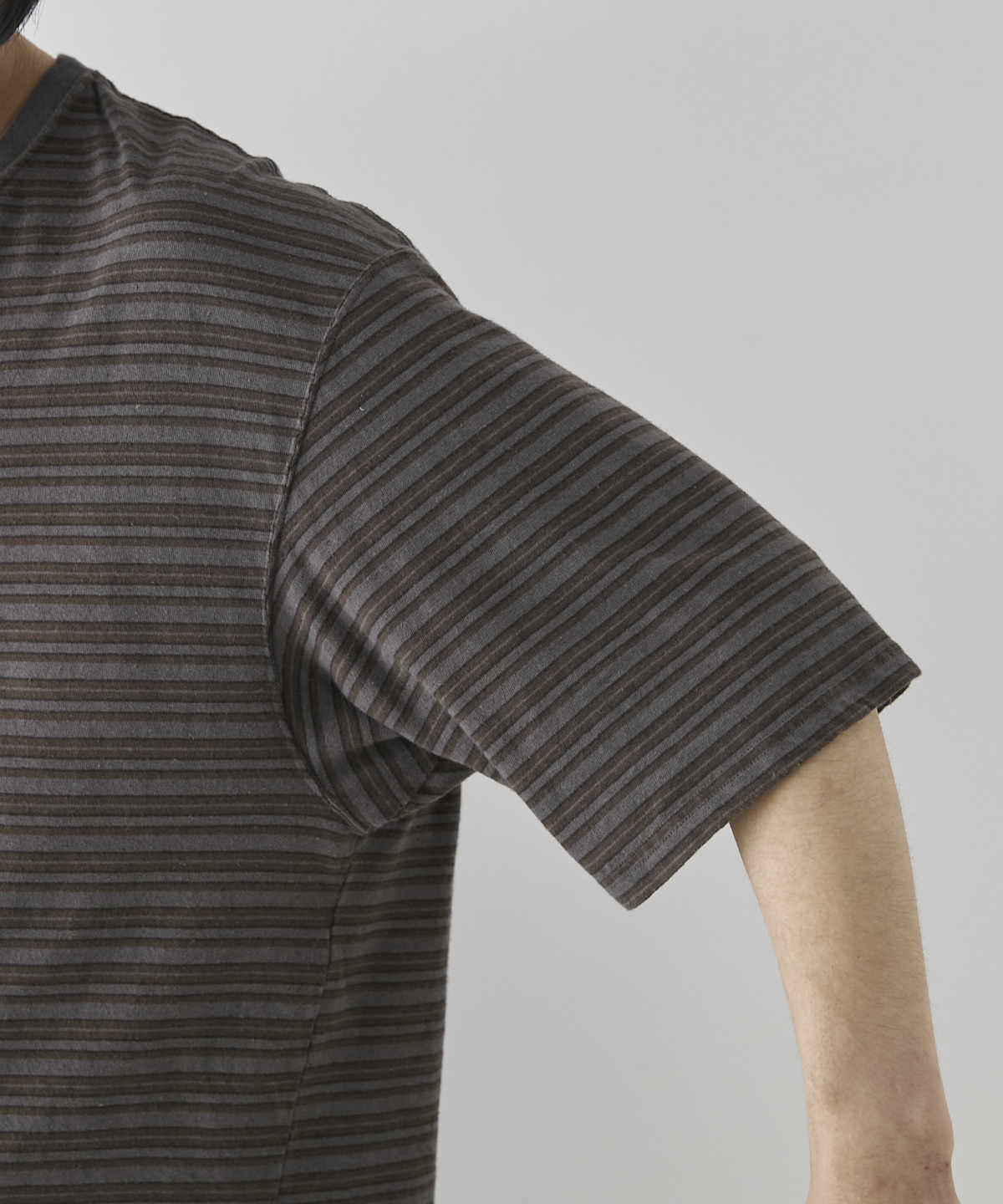 벨기에산 린넨을 사용한 코튼 린넨 혼방 20수 단사로 만든 보더 크루넥 티셔츠입니다.