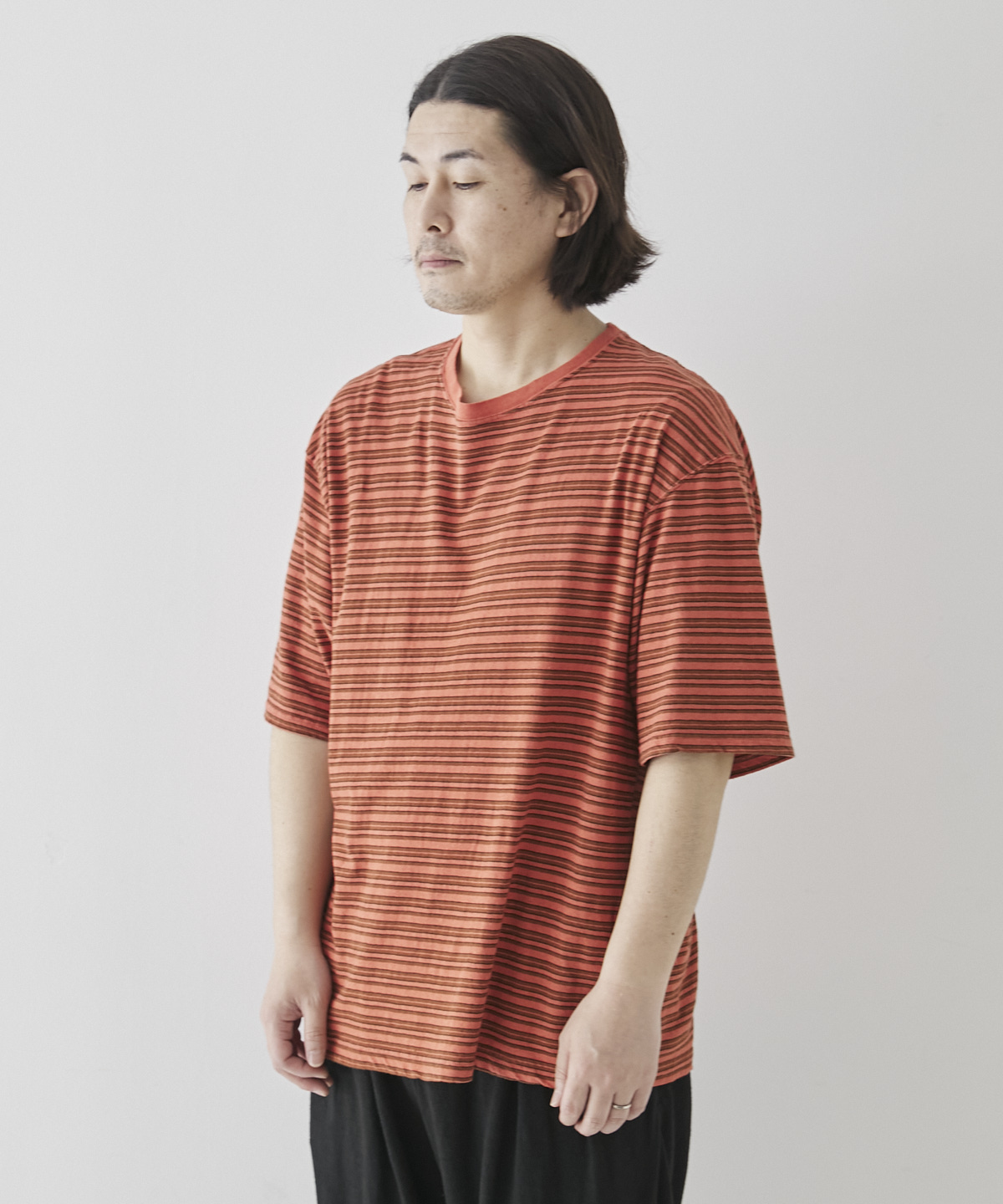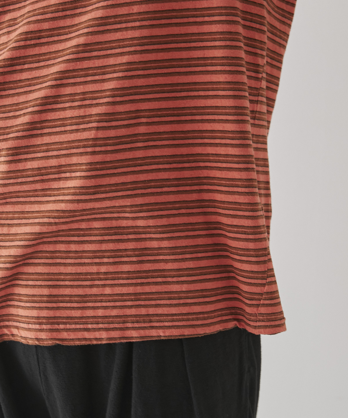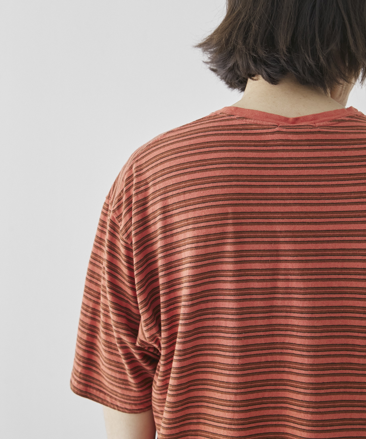 벨기에산 린넨을 사용한 코튼 린넨 혼방 20수 단사로 만든 보더 크루넥 티셔츠입니다.