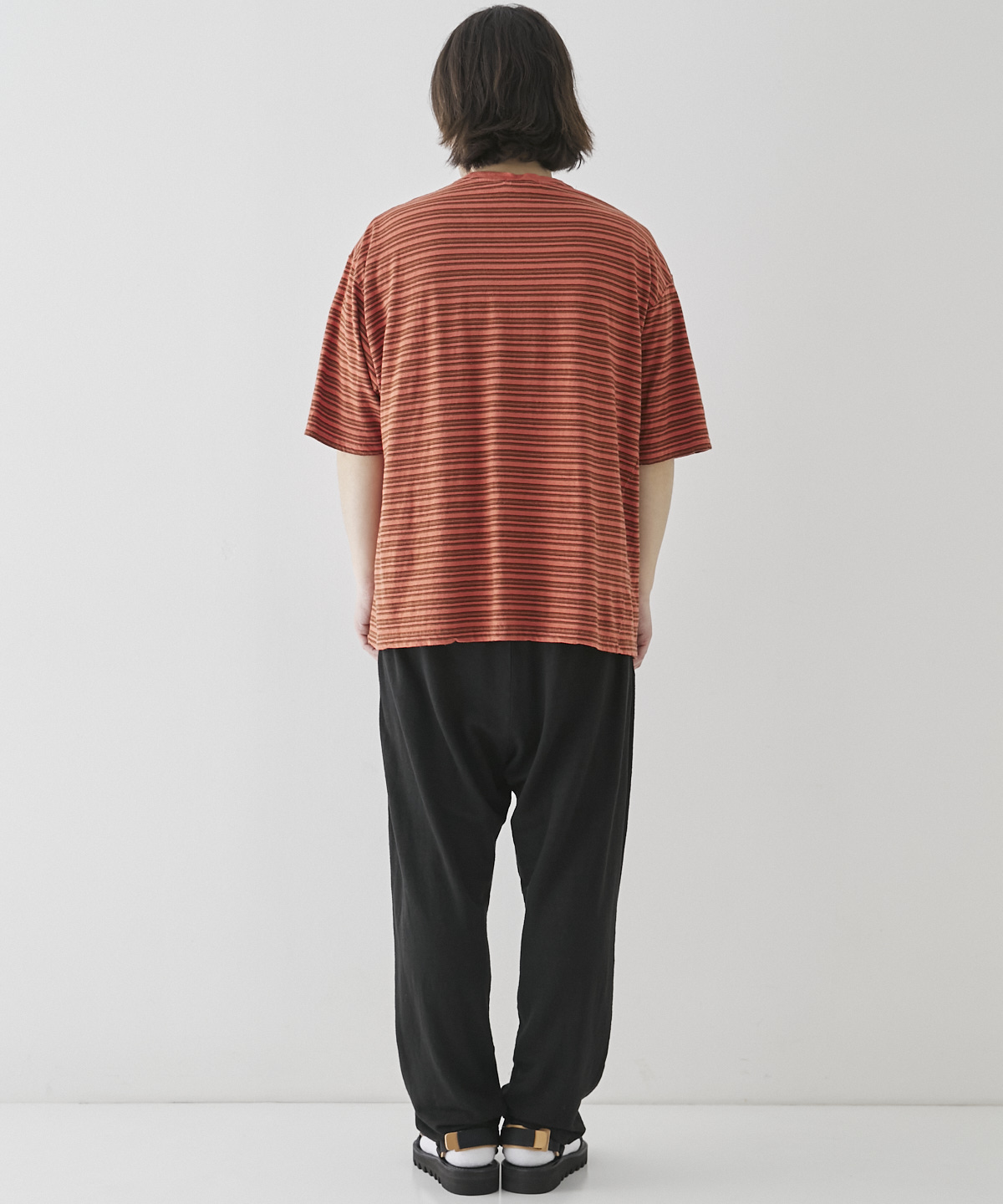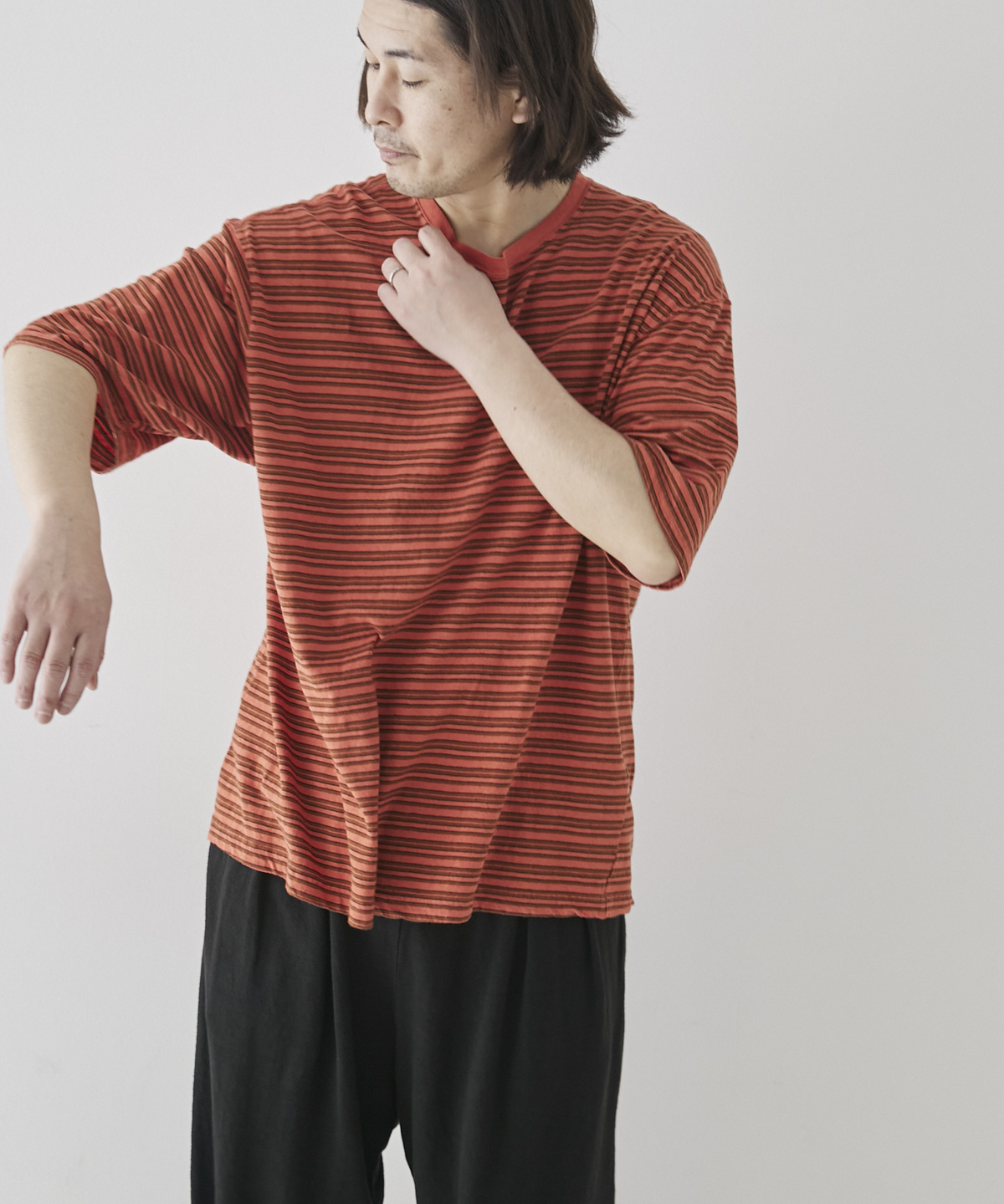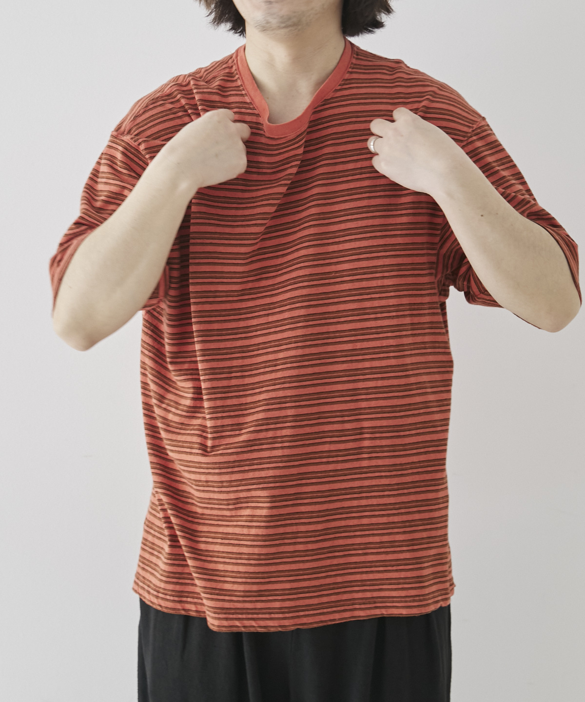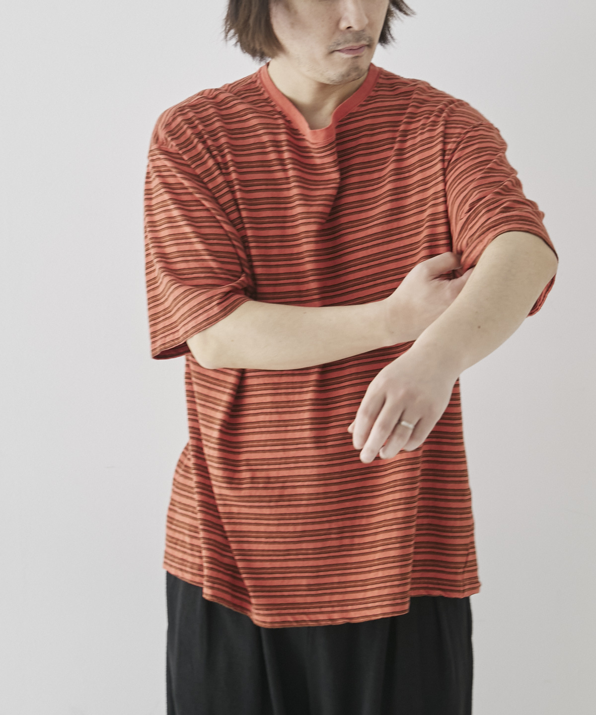 벨기에산 린넨을 사용한 코튼 린넨 혼방 20수 단사로 만든 보더 크루넥 티셔츠입니다.