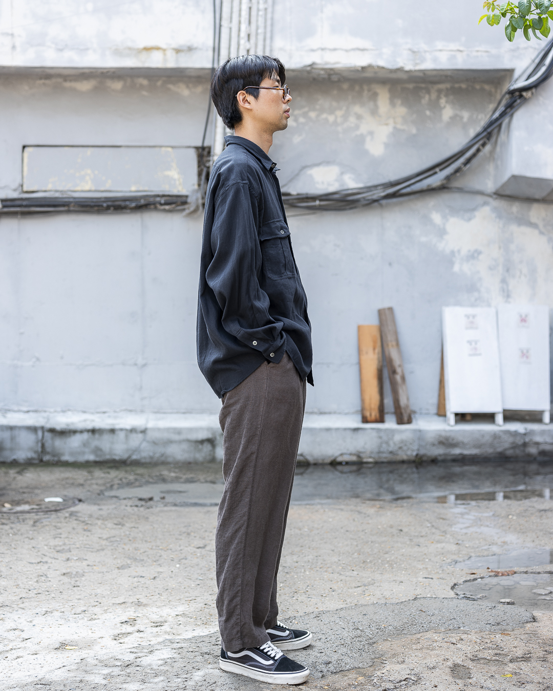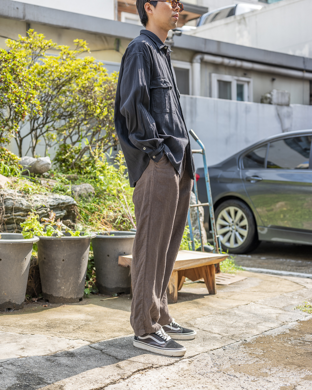 롤업 깅엄 체크 셔츠와는 달리 등판 부분의 게더(Gather) 디테일이 생략되어 빈티지 거즈 원단이 주는 거칠면서도 부드러운 독특한 매력을 즐기실 수 있습니다.