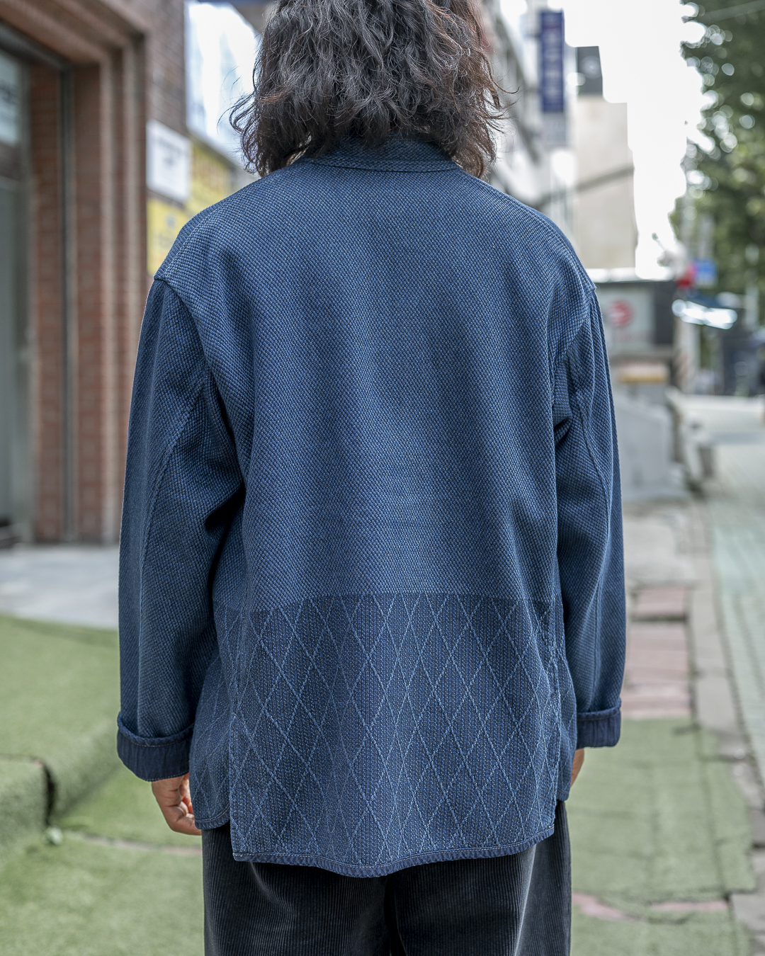 5개의 차이니스 버튼(Chinese Button)과 낮은 높이의 밴드 칼라는 중국의 전통 복식에서 영감을 받은 디테일로 독특한 매력과 함께 켄도기(剣道着) 원단이 주는 탄탄한 카리스마가 느껴지는 자켓입니다.