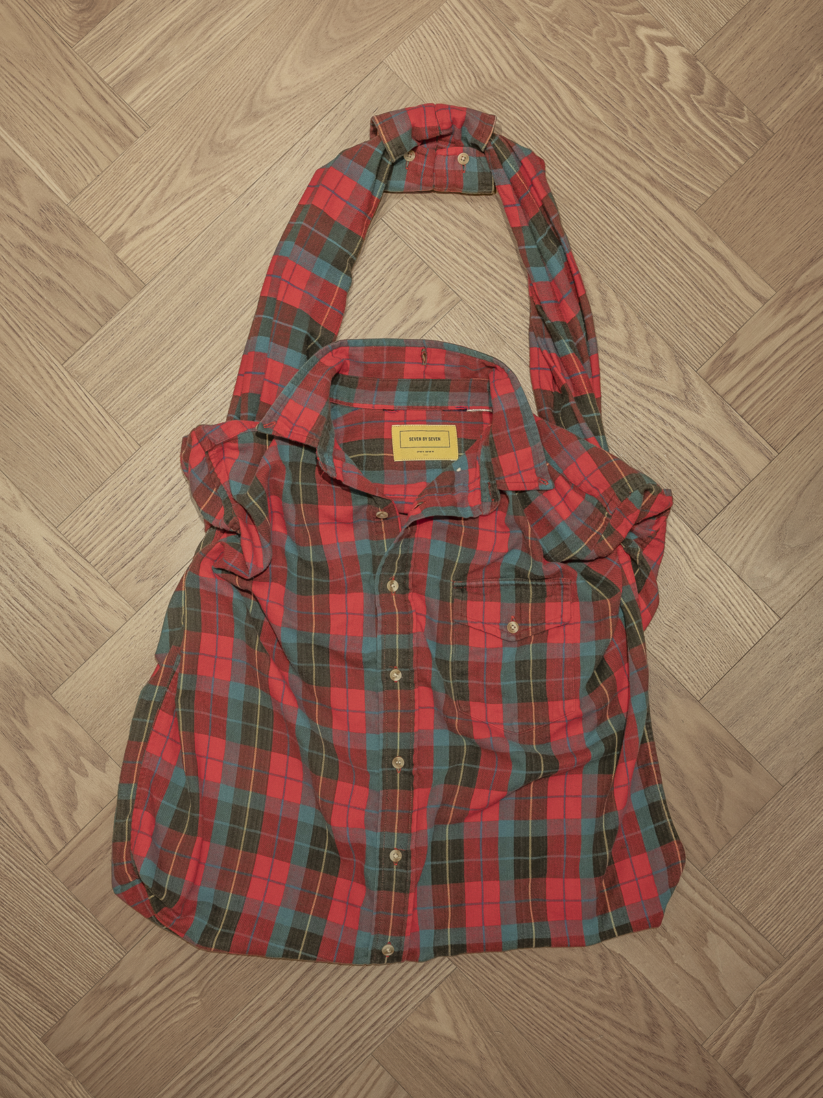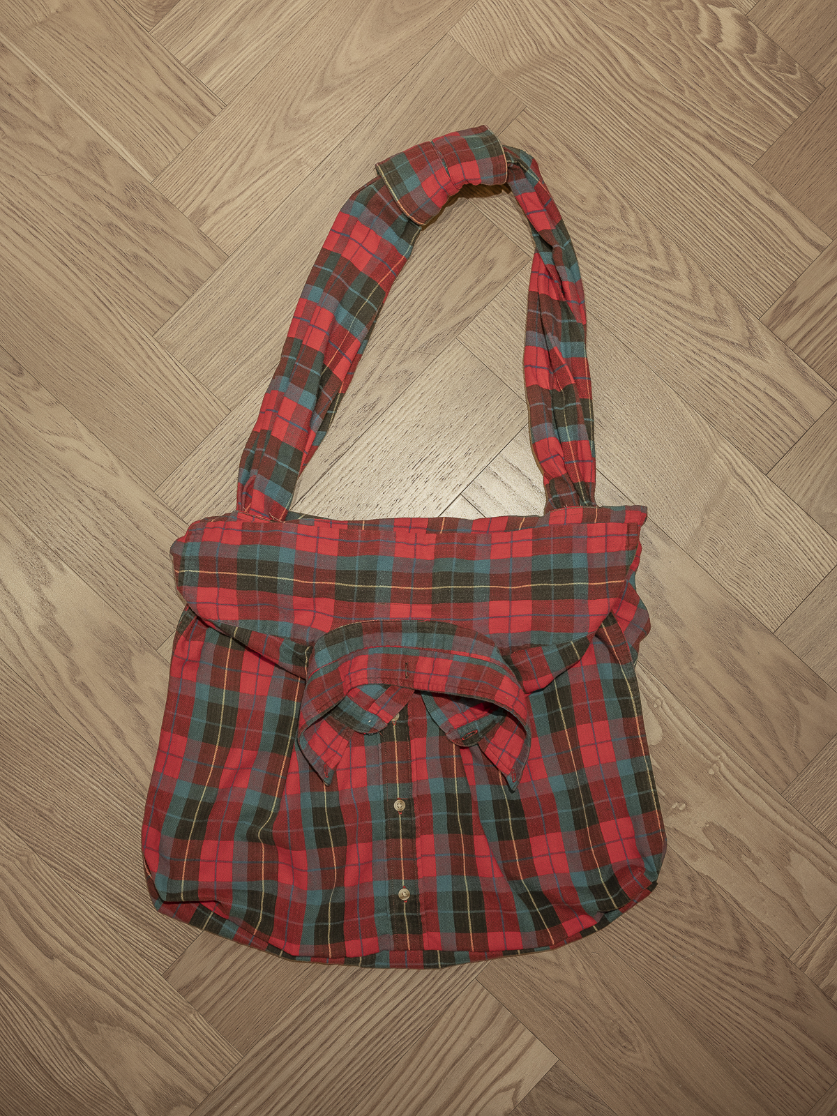 빈티지 플란넬 셔츠를 재작업하여 만든 가방입니다. 원형이 셔츠였음을 느낄 수 있도록 의도하여 디자인 되었습니다.