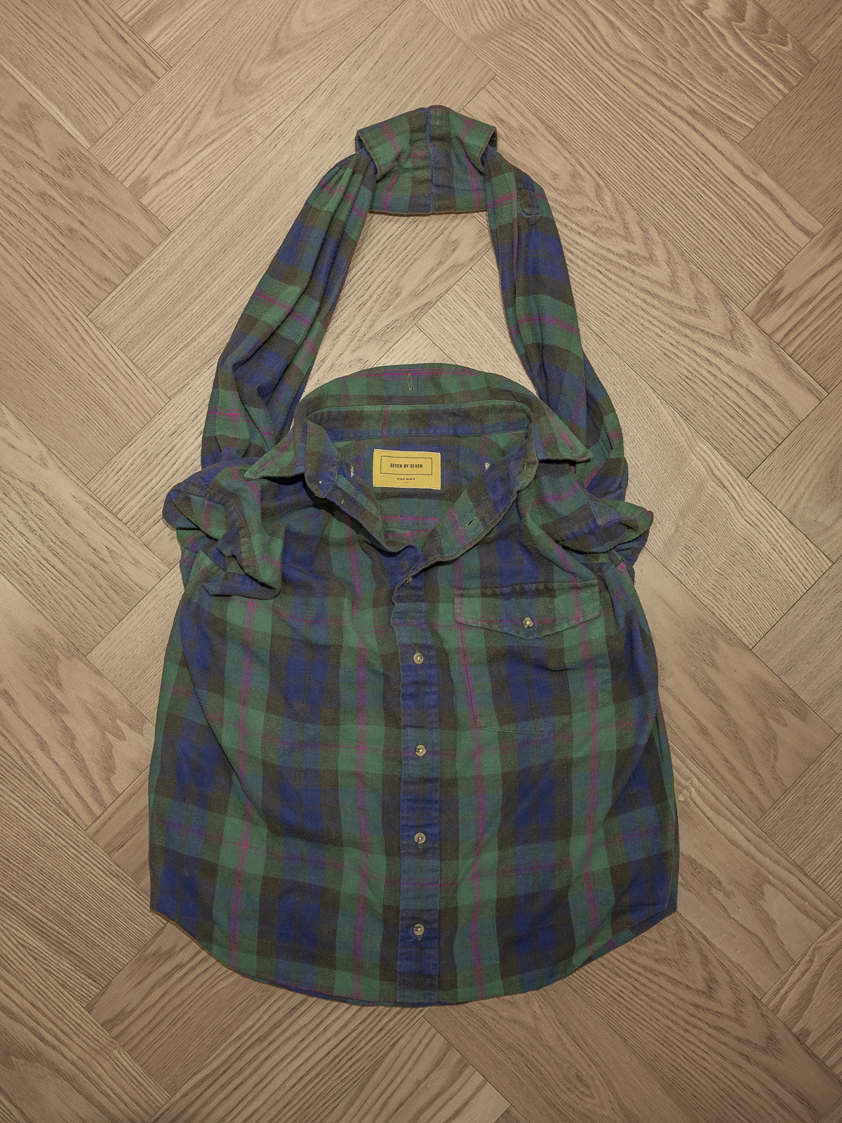 빈티지 플란넬 셔츠를 재작업하여 만든 가방입니다. 원형이 셔츠였음을 느낄 수 있도록 의도하여 디자인 되었습니다.