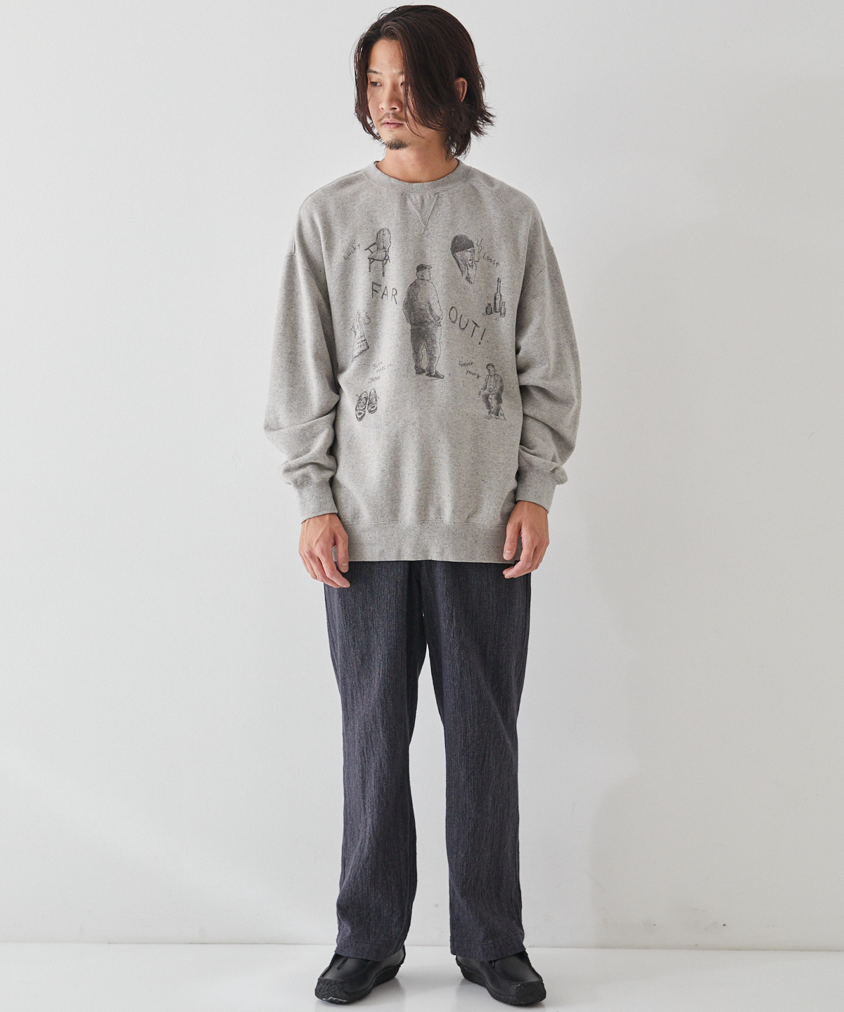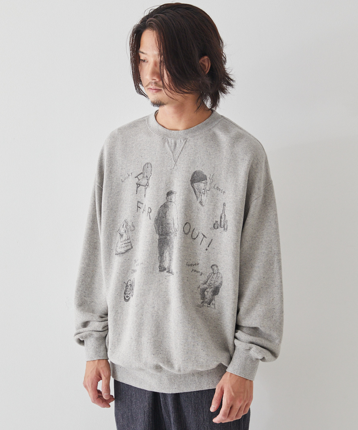 Upcyclelino(업사이클리노) 원단 특유의 불규칙하면서도 빈티지한 탑 그레이 색상이 멋스러운 스웻 셔츠입니다.