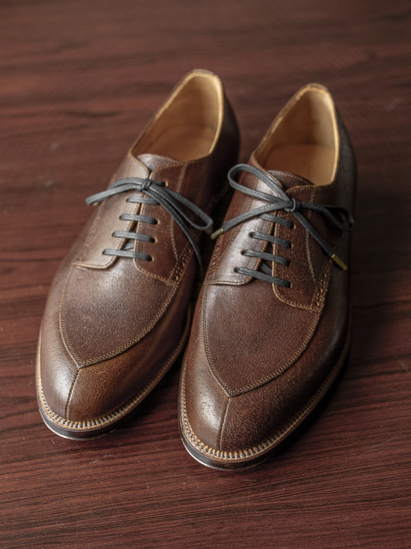 캐시미어가 높은 비율로 혼방된 울 캐시미어 도네갈(Donegal) 원단은 브라운을 베이스로 여러 색상의 실로 짜여졌습니다. 그래서 블랙이나 옐로우 등의 다양한 컬러가 넵(Nep)의 형태로 군데 군데 드러나기 때문에 독특하고 오묘한 색감을 즐기실 수 있습니다.