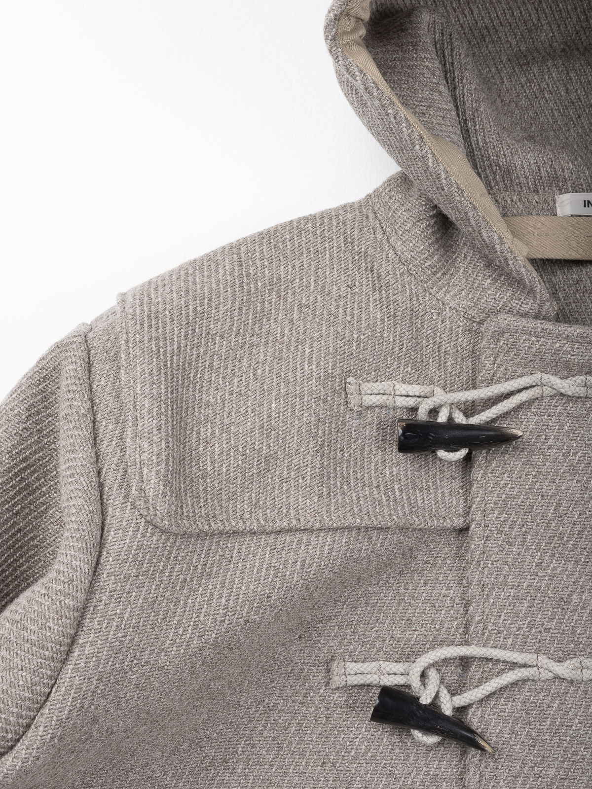 비슈(尾州)에 위치한 창업 100년 이상의 역사를 가진 유서 깊은 모직 업체와 협업하여 본 제품을 위해 특별히 제작한 울 캐시미어 트리코틴(Tricotine) 원단으로 제작하였습니다. 일반 코트용 원단에 비해 몇 배의 실을 사용하여 빈티지하면서도 탄탄하고 묵직한 두께감이 느껴집니다.