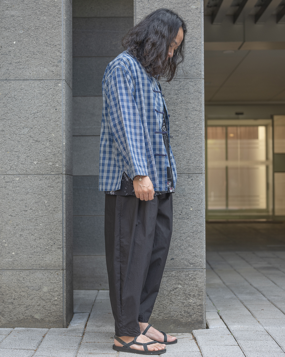 스탠드 칼라와 중국 고유의 매듭 단추인 차이니스 버튼(Chinese Button)은 독특하면서도 팔라카(Palaka) 원단과 자연스럽게 어울립니다.