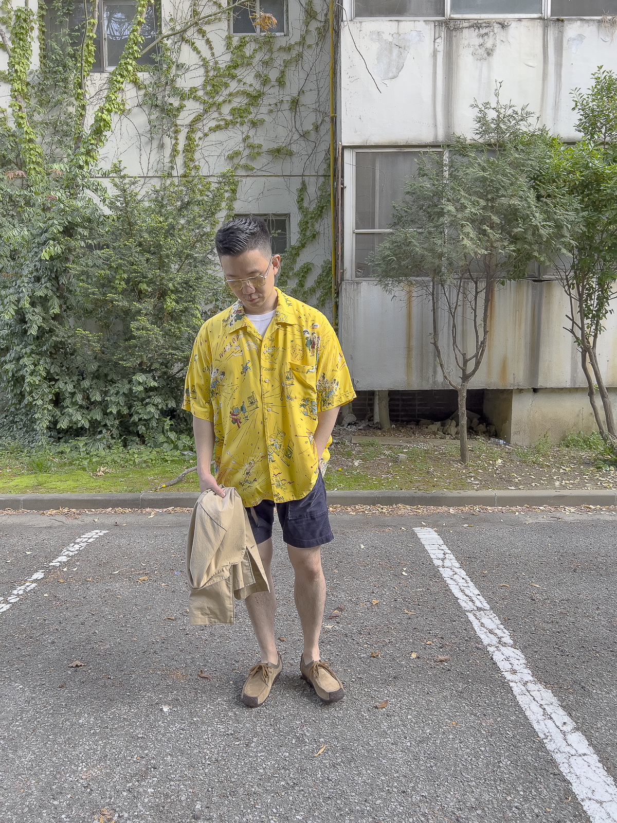 도쿄에서 활동하는 일러스트레이터이자 포터 클래식의 아트워크를 담당하고 있는 MIMOE의 일러스트가 들어간 알로하 셔츠입니다.