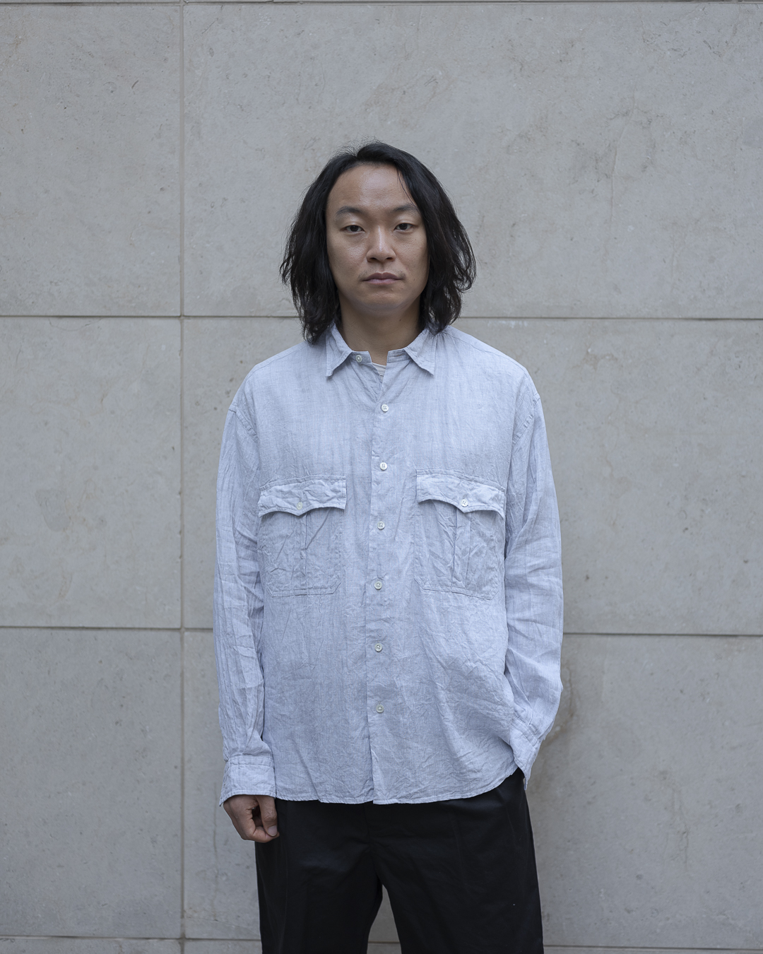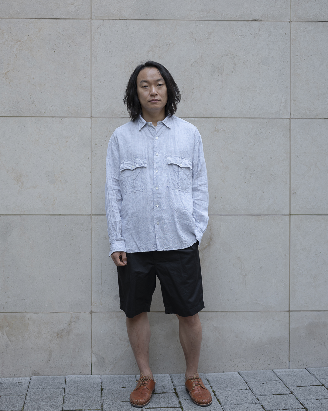 린넨 특유의 주름과 탄력감 있는 원단의 매력이 잘 드러난 셔츠입니다. 롤업 깅엄 체크 셔츠와는 달리 등판 부분의 게더(Gather) 디테일이 생략되어 원단 자체가 주는 질감의 매력을 은은하게 즐기실 수 있습니다.