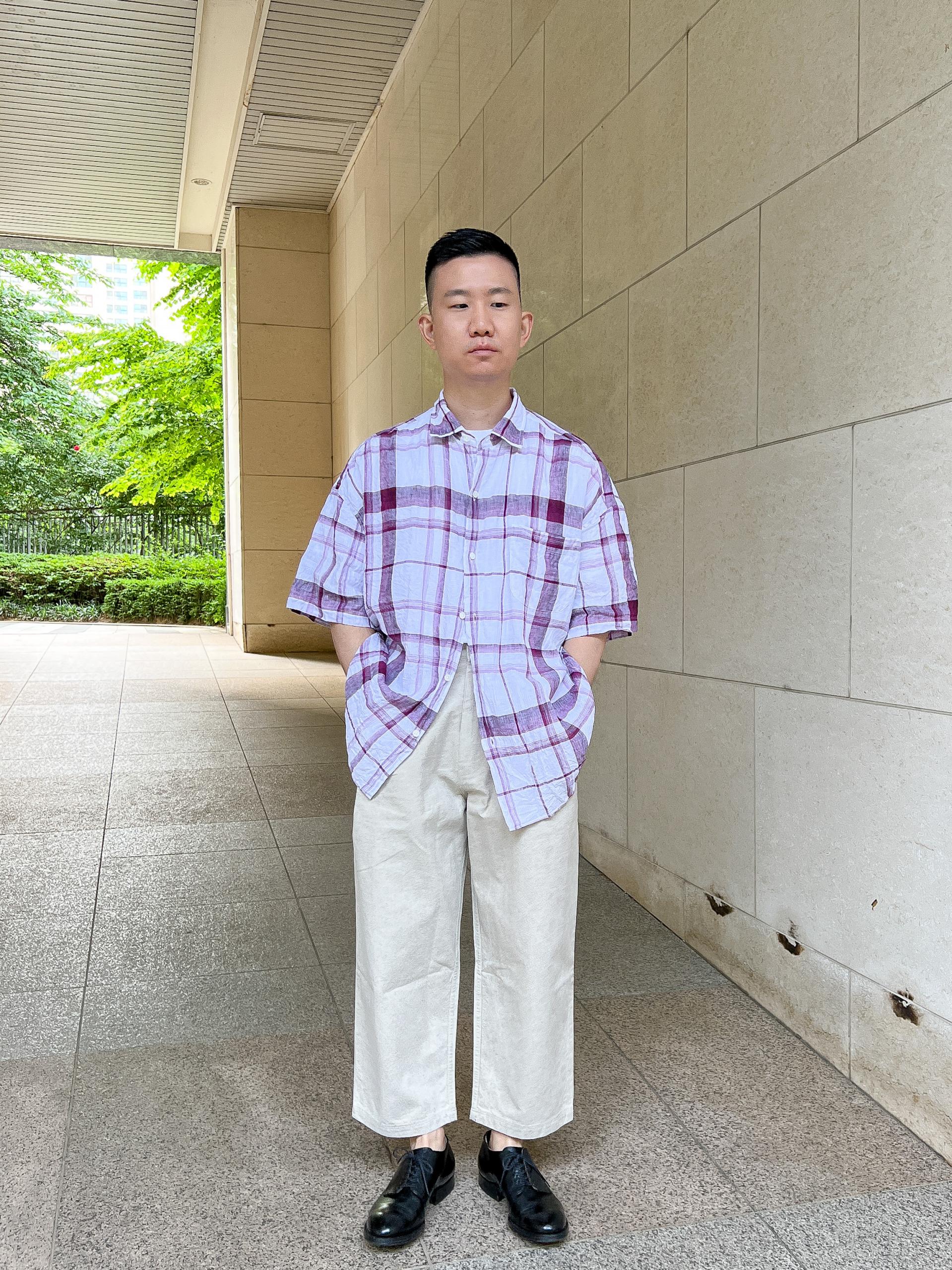 체크 패턴은 셔츠의 상하좌우가 모두 동일하게 이어지며, 가슴 왼편에 위치한 포켓에서도 체크가 어긋나지 않도록 제작되었습니다.