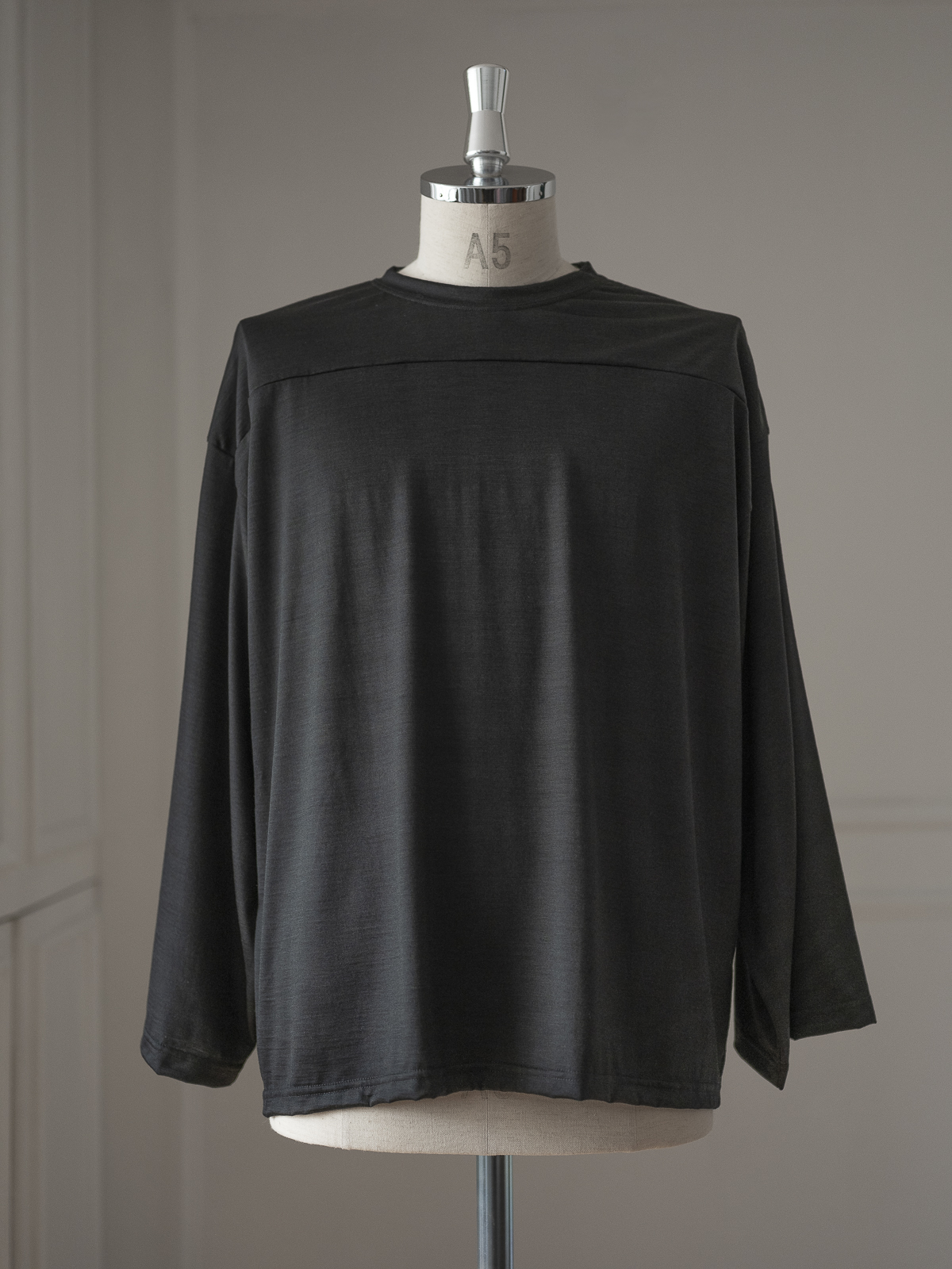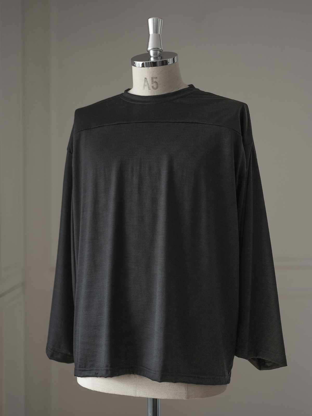 INTÉRIM [인테림] - Hyper Big Extra Fine Merino Wool Football L/S Tee - Black